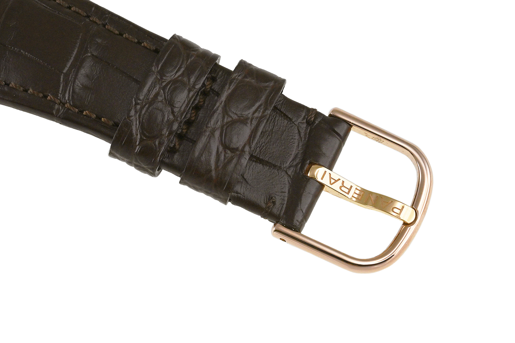 コメント クッションケースにワイヤーラグが特徴の人気モデル「ラジオミール」。イタリアのセンスとエレガンスが融合した洗練されたケース径40mmサイズの「ラジオミール クアランタ」自動巻モデルです。エレガントなポリッシュゴールドテック™製、3日間のパワーリザーブをもつパネライムーブメントCal.P.900を搭載しています。少々の軽い擦れはありますが目立つ様なキズはありません。国内正規店にて購入品です。