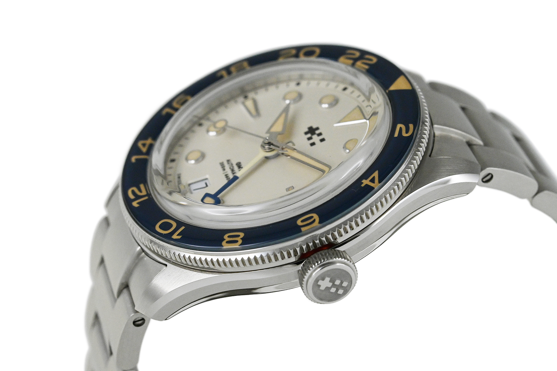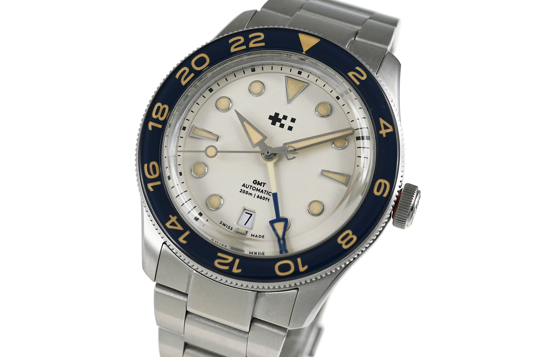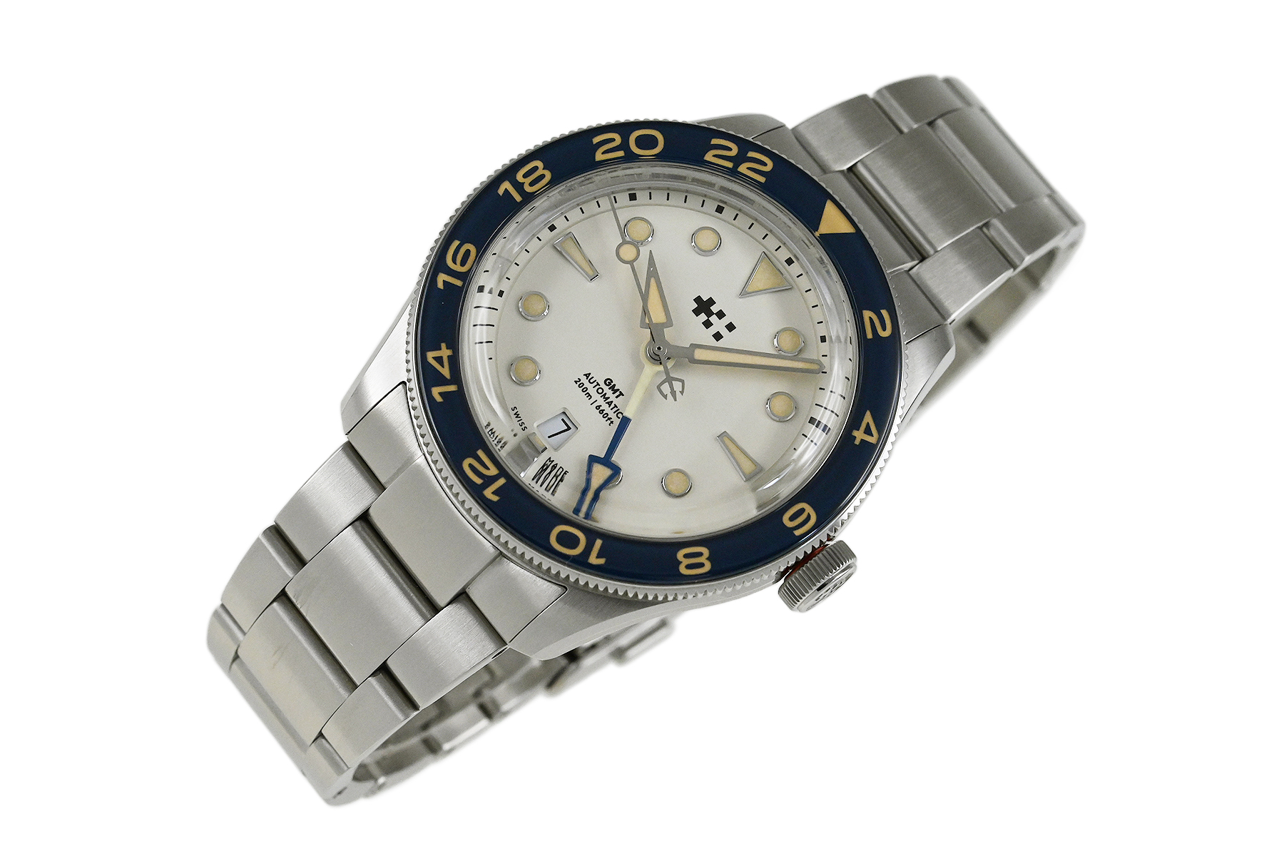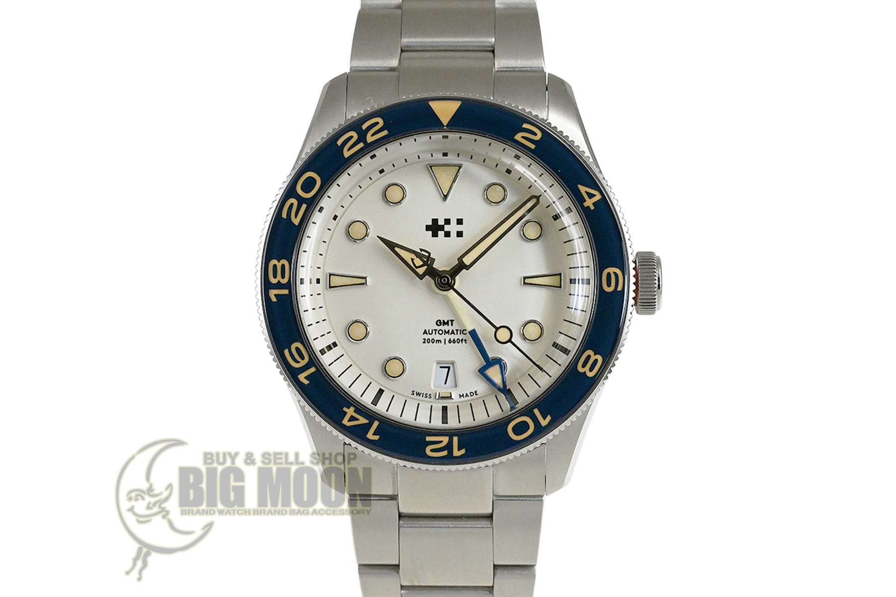 | コメント | 2004年に設立されたクリストファー・ウォード。イギリスのデザイナーとスイスの時計製造技術を融合させたブランドです。ホワイトサンドカラーにマリンブルーのベゼルを組み合わせたオシャレなモデルで、GMT機能を搭載しています。少々の軽い擦りキズはありますが目立つ様なキズはありません。 |