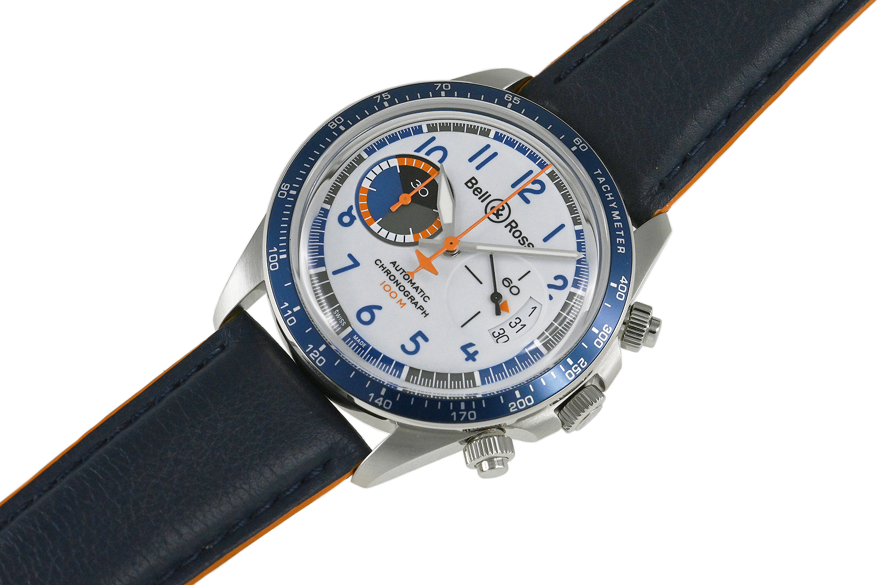 | コメント | ヴィンテージテイストでスタイリッシュなデザインが魅力の2カウンタークロノグラフ BR V2-94コレクション。ベル&ロスのデザイナー ブルーノ・ベラミッシュがデザインした夢の飛行機「BR-BIRD」からインスピレーションを得た限定モデルです。爽やかなホワイトにブルー、オレンジカラーがアクセントとなっています。少々の軽い擦れはありますが目立つ様なキズはありません。国内正規店にて購入品、2025年9月に機械点検をしています。 |