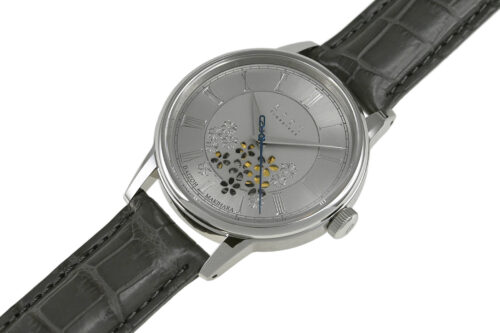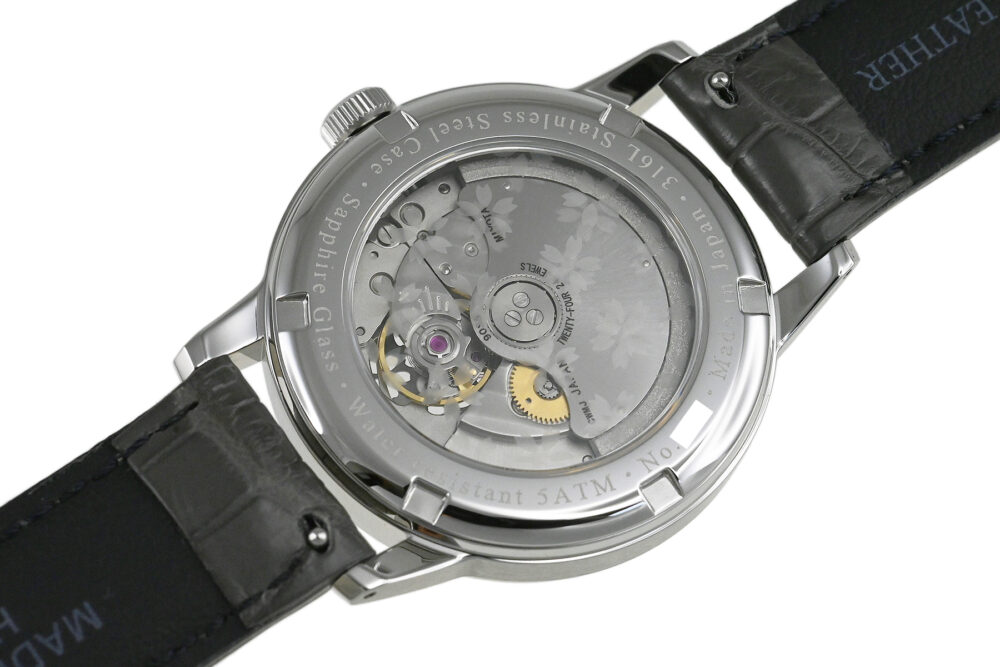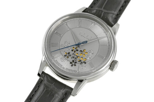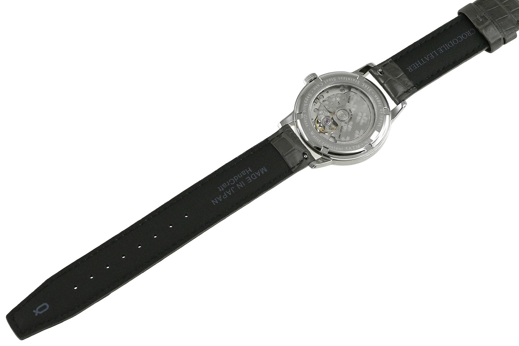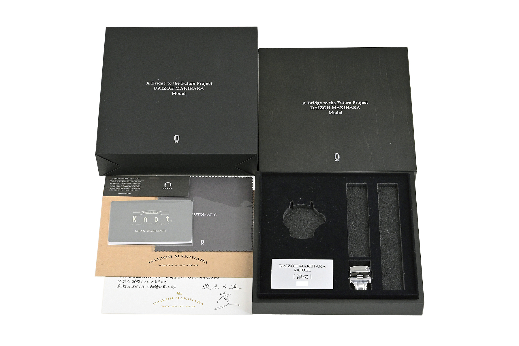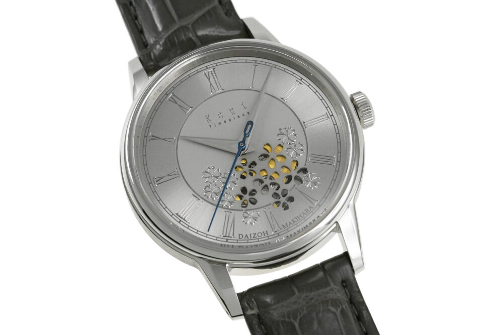 コメント | 日本の独立時計師、牧原大造氏とMade in Japanの腕時計ブランド・Knotとのコラボレーションモデルです。桜モチーフ彫金を施したダイアルが特徴的、シースルーバックにも桜モチーフのデザインが施されています。少々の擦りキズはありますが目立つ様な深いキズはありません。 |