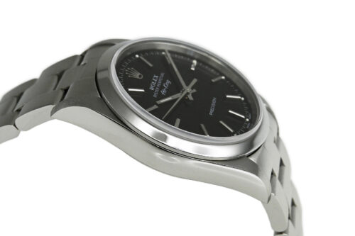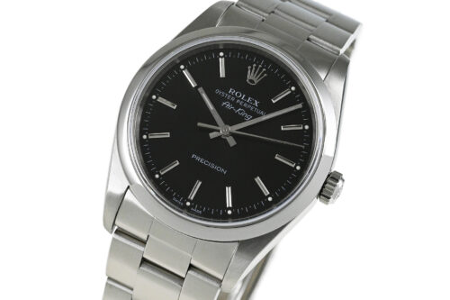 | コメント | ポリッシュベゼルのシンプルな3針モデル「エアキング Ref.14000M」。2001年~2007年まで製造されたモデルです。ベゼルエッジ部分の46分53分位置に小さなあてキズがあります。その他使用に伴う若干の軽い小キズ・擦りキズはありますが目立つ様な深いキズはありません。国内正規店にて購入品です。 |