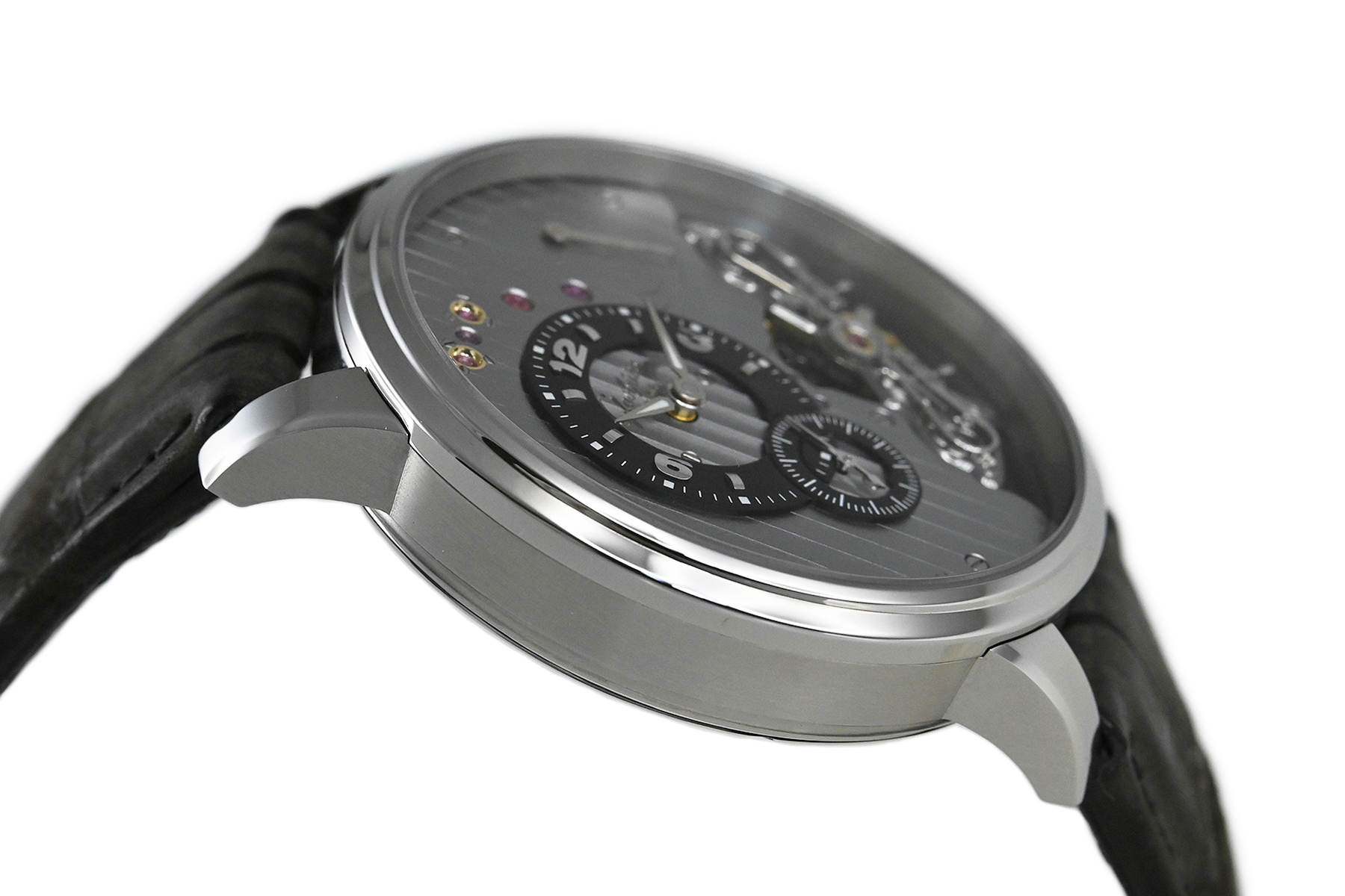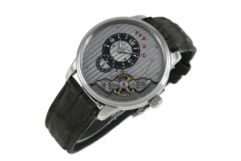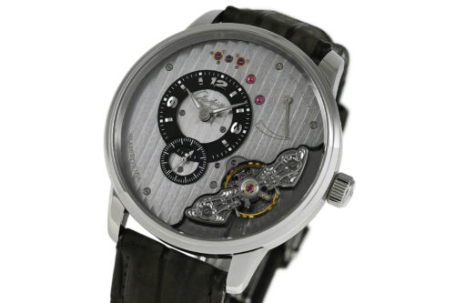 コメント | ムーブメントから自社一貫生産しているドイツのマニュファクチュールブランド「グラスヒュッテ・オリジナル」。オフセンターに配された時刻表示、時計内部の美しい機構をダイヤル側で堪能できる大胆なデザインが特徴的な「パノインバース」手巻モデルです。グレーを基調とした独創的なデザインが魅力です。僅かな軽い擦れはありますが目立つ様なキズはありません。国内正規店にて購入品です。 |