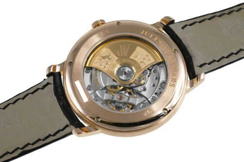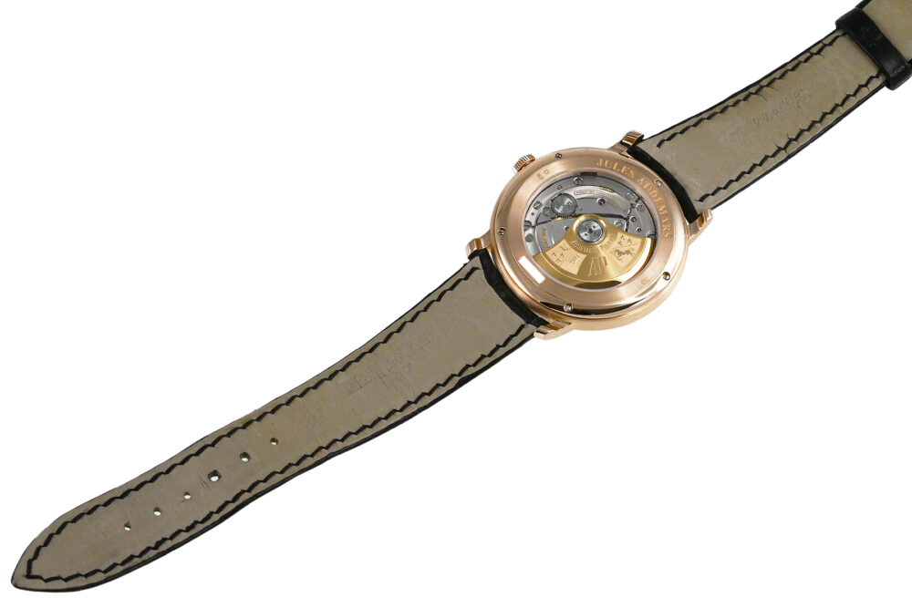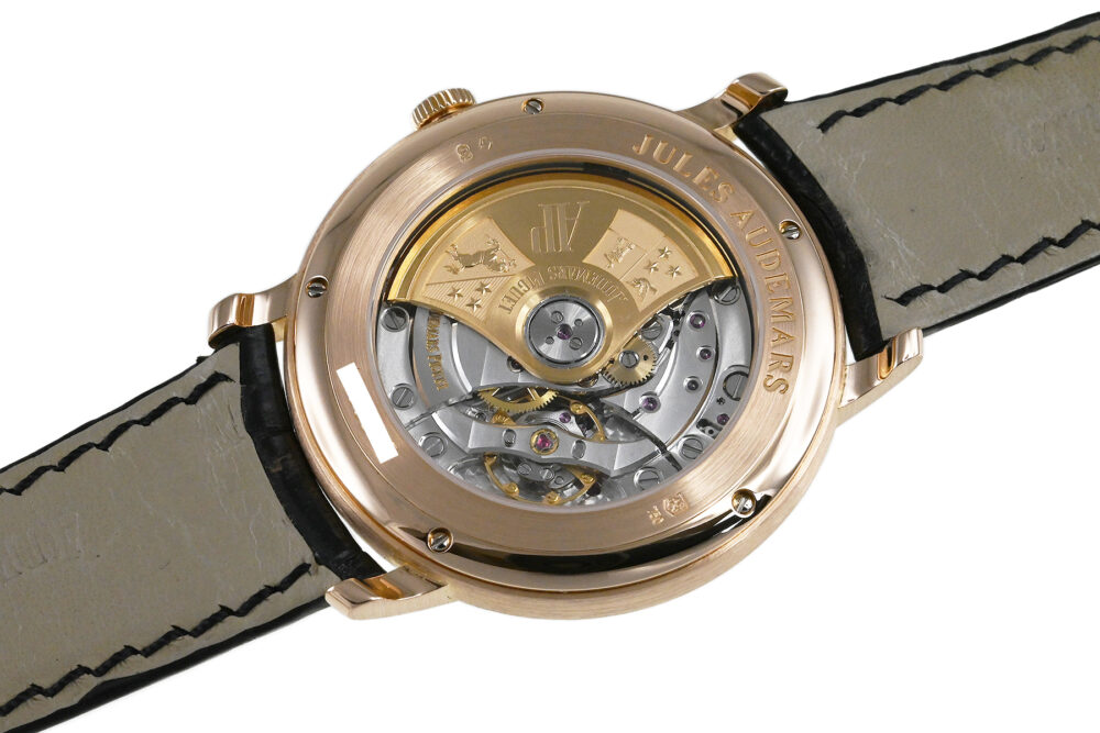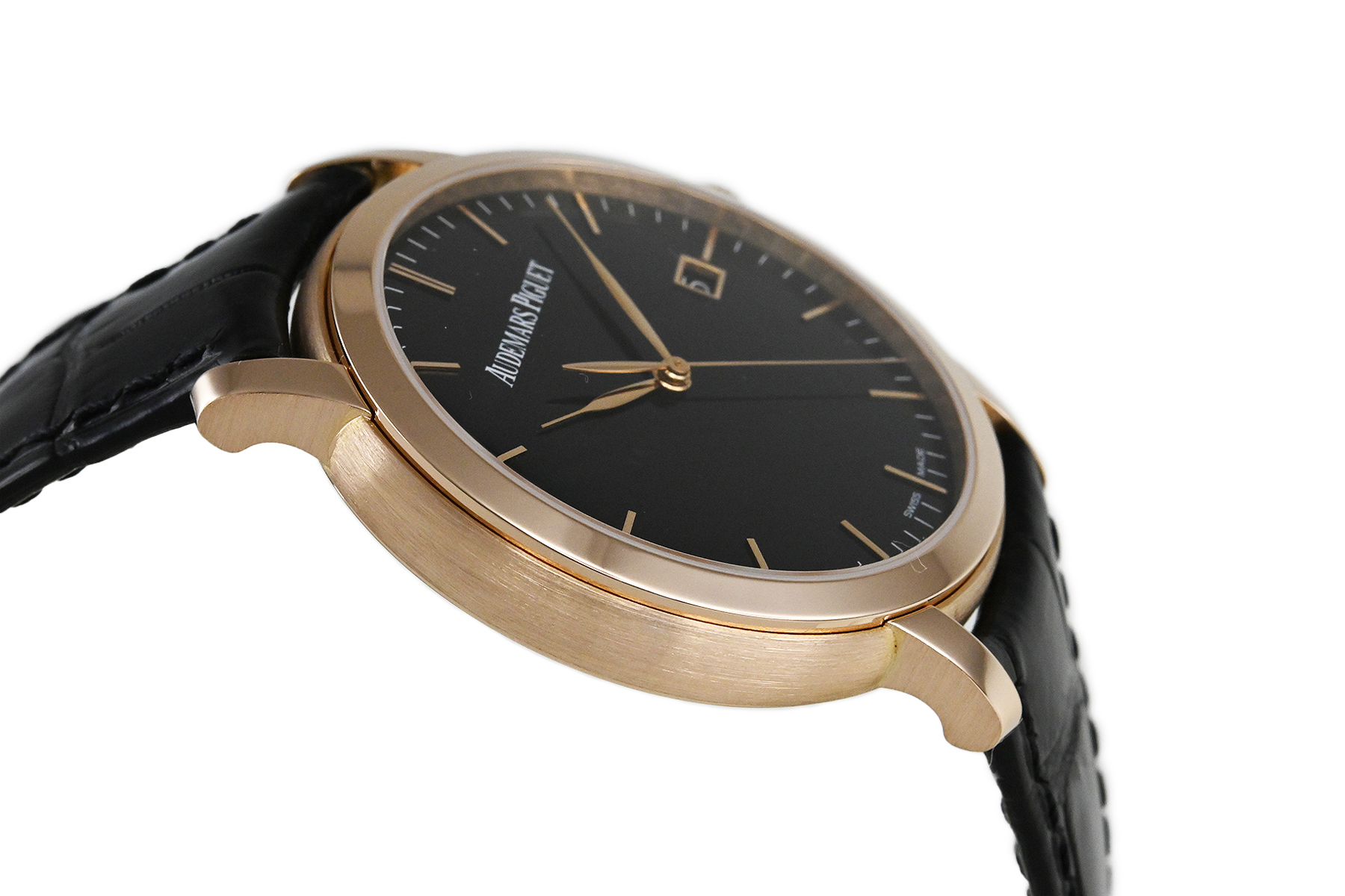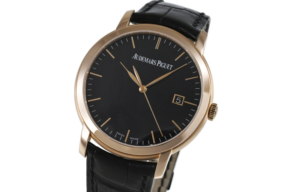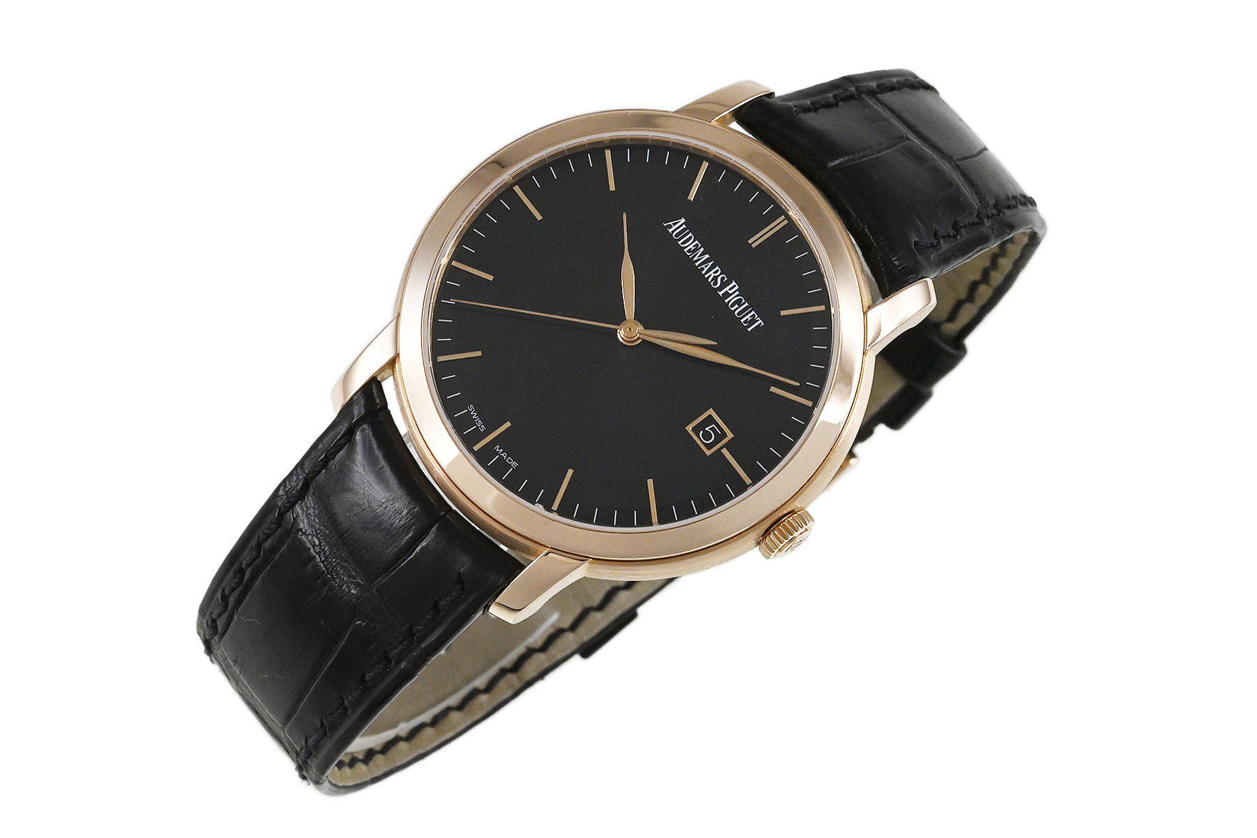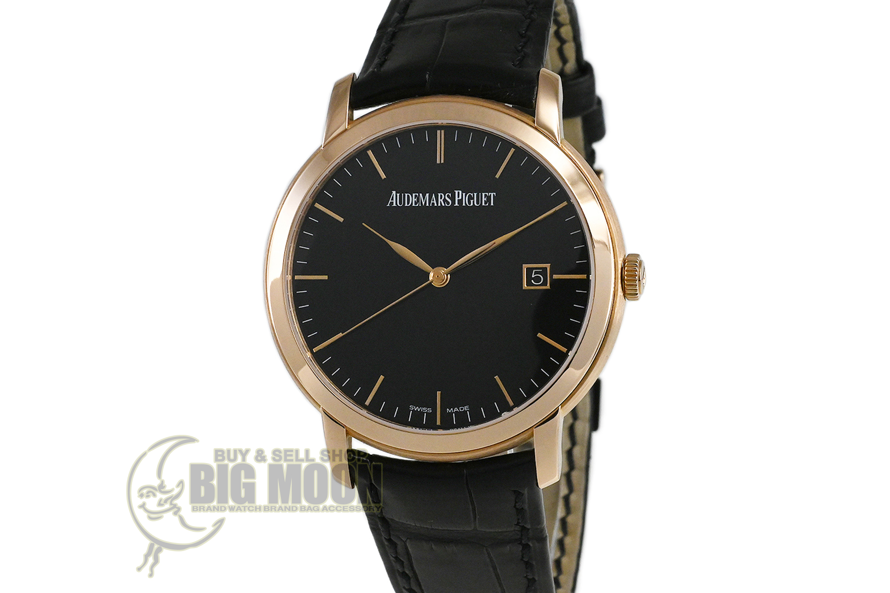 | コメント | 1875年創業、世界三大高級時計ブランドのひとつ「オーデマ ピゲ」。創業者の1人であるジュール・オーデマの名を冠したコレクションです。K18ピンクゴールド製のシンプルなラウンドケースにキレイなブラックダイアルが上品なモデルです。裏蓋シースルーバックとなっています。少々の細かな軽い擦れはありますが目立つ様なキズはありません。ガラスエッジ部分(5時位置)にキズがあります。国内正規店にて購入品です。 |