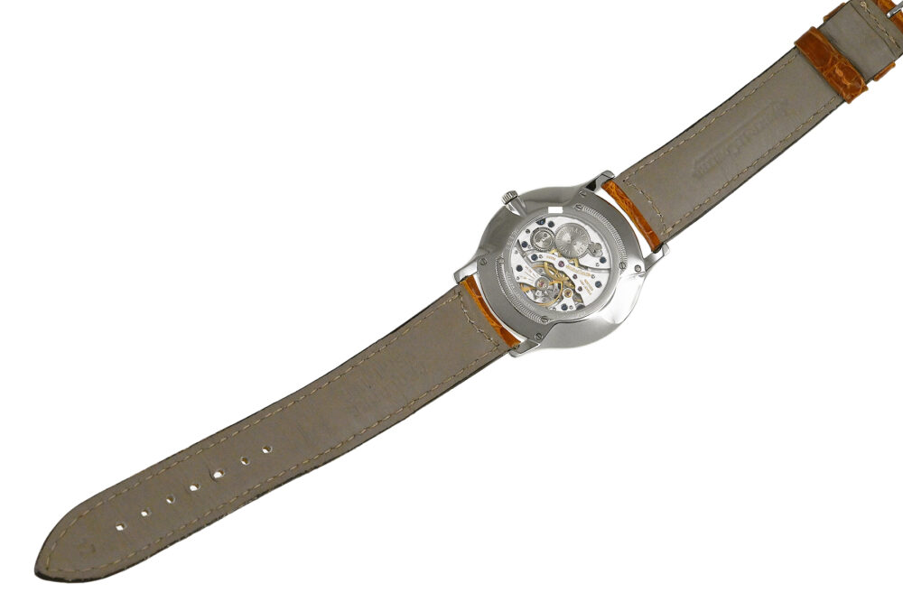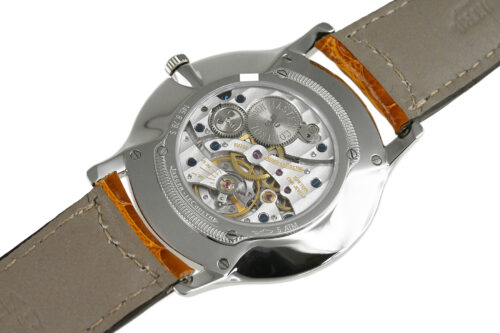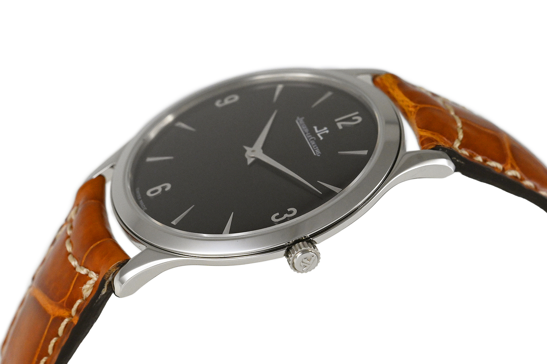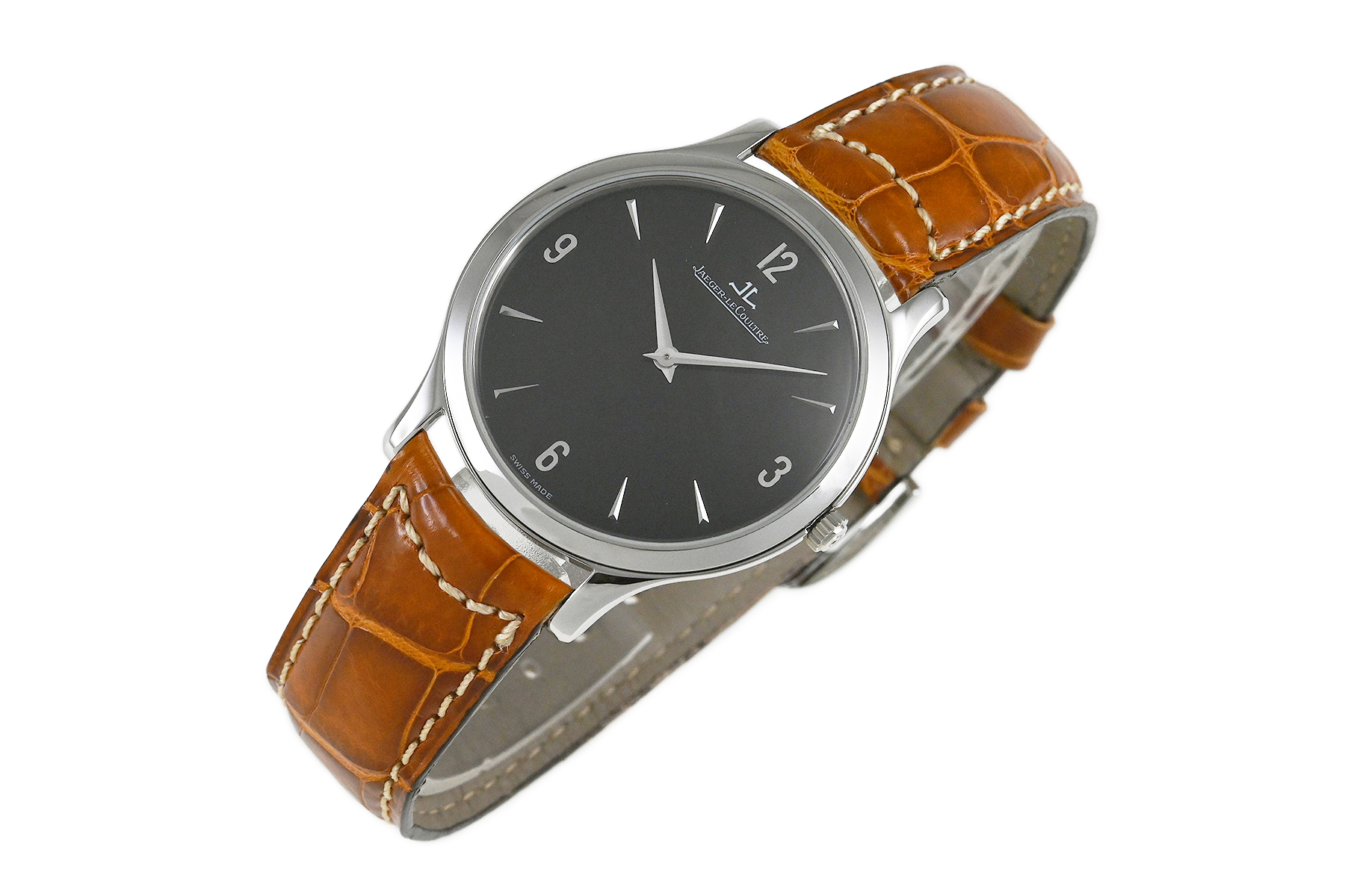 | コメント | マニュファクチュール (自社一貫生産) ブランド「ジャガールクルト」。ケース径34mmの超薄型でシンプルな「マスター・ウルトラスリム」手巻モデルです。洗練されたエレガントなデザインが魅力的です。裏蓋シースルーバックとなっています。僅かな軽い擦りキズはありますが目立つ様なキズはありません。国内正規店にて購入品です。2025年11月に当店契約の修理サービスにてオーバーホールをしています。 |