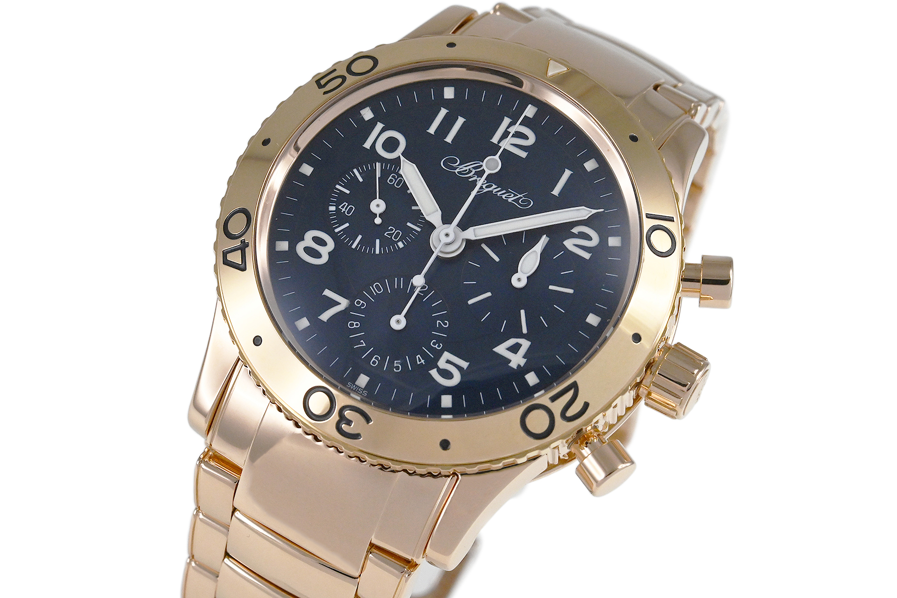 | コメント | 1775年、天才時計師アブラアン-ルイ・ブレゲがフランス・パリで創業した歴史ある高級時計ブランド「ブレゲ」。フレンチ・ミリタリーの傑作、「タイプ XX 3800 アエロナバル」は名門ブレゲらしいエレガントさと高級感漂うオシャレなパイロット・ウォッチです。フライバック機能付クロノグラフを搭載、この型は生産終了となっています。K18ローズゴールドのケース・ブレスレットに人気のブルーダイアルを備えています。ベゼルなど若干の軽い小キズ、擦りキズはありますが目立つ様な深いキズはありません。2026年2月に正規修理サービスにてコンプリートメンテナンスサービスをしています。 |