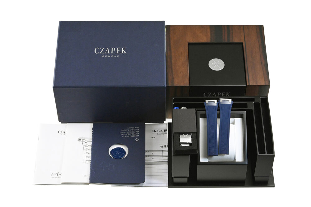 | 付属品 | 箱・保証書(2024.5国内正規)・小冊子・ラバー(ブルー:未使用)・Dバックル・専用工具・正規修理明細書コピー |