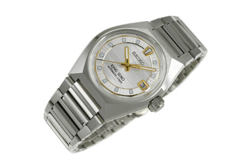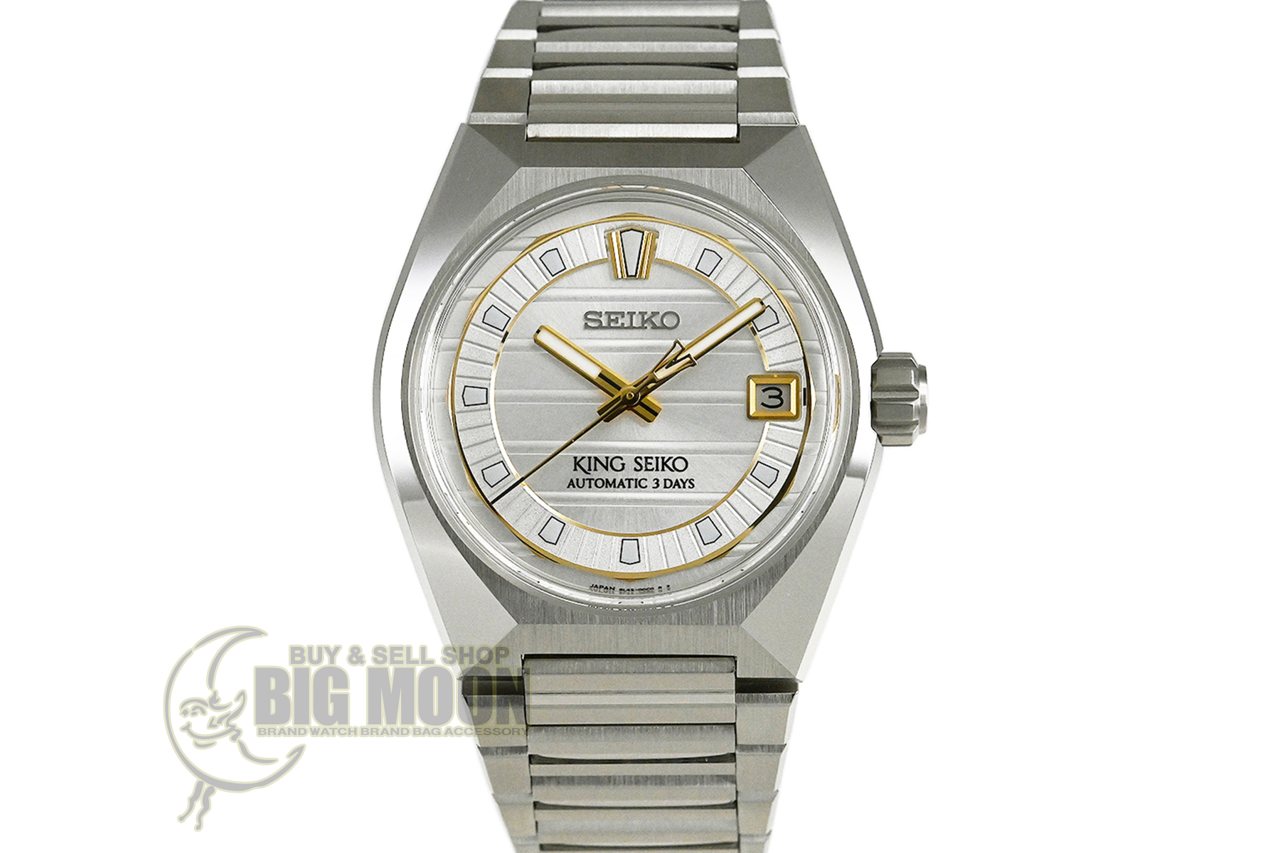 コメント | 2025年3月に新たなスポーティデザインシリーズとして発表されたキングセイコー「VANAC (バナック)」。斬新な多面形ケースや鮮やかなカラーリングなど70年代に発売されていたモデルの特徴を継承し現代的デザインとして誕生しました。独特な雰囲気、存在感を放つデザインが特徴で、東京の日の出をイメージしたシルバーダイアルが魅力的です。約72時間のパワーリザーブを持つキャリバー8L45を搭載。キズらしいキズはなくキレイなコンディションです。 |
