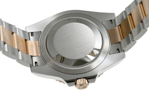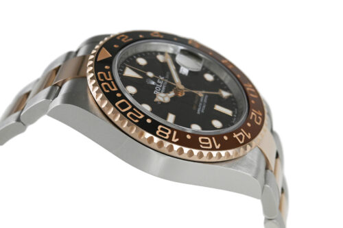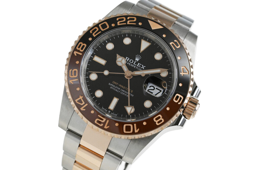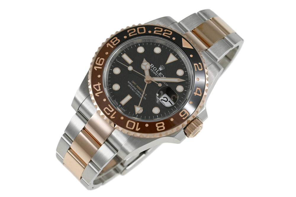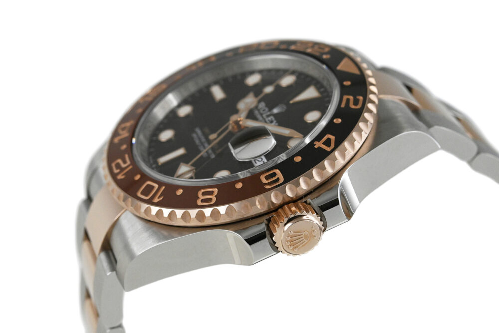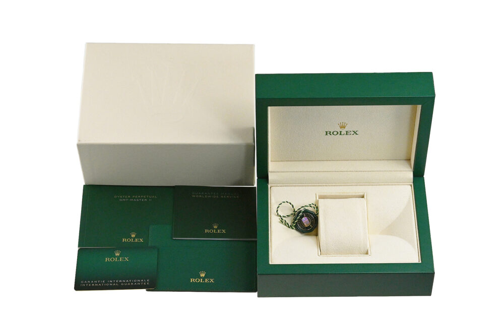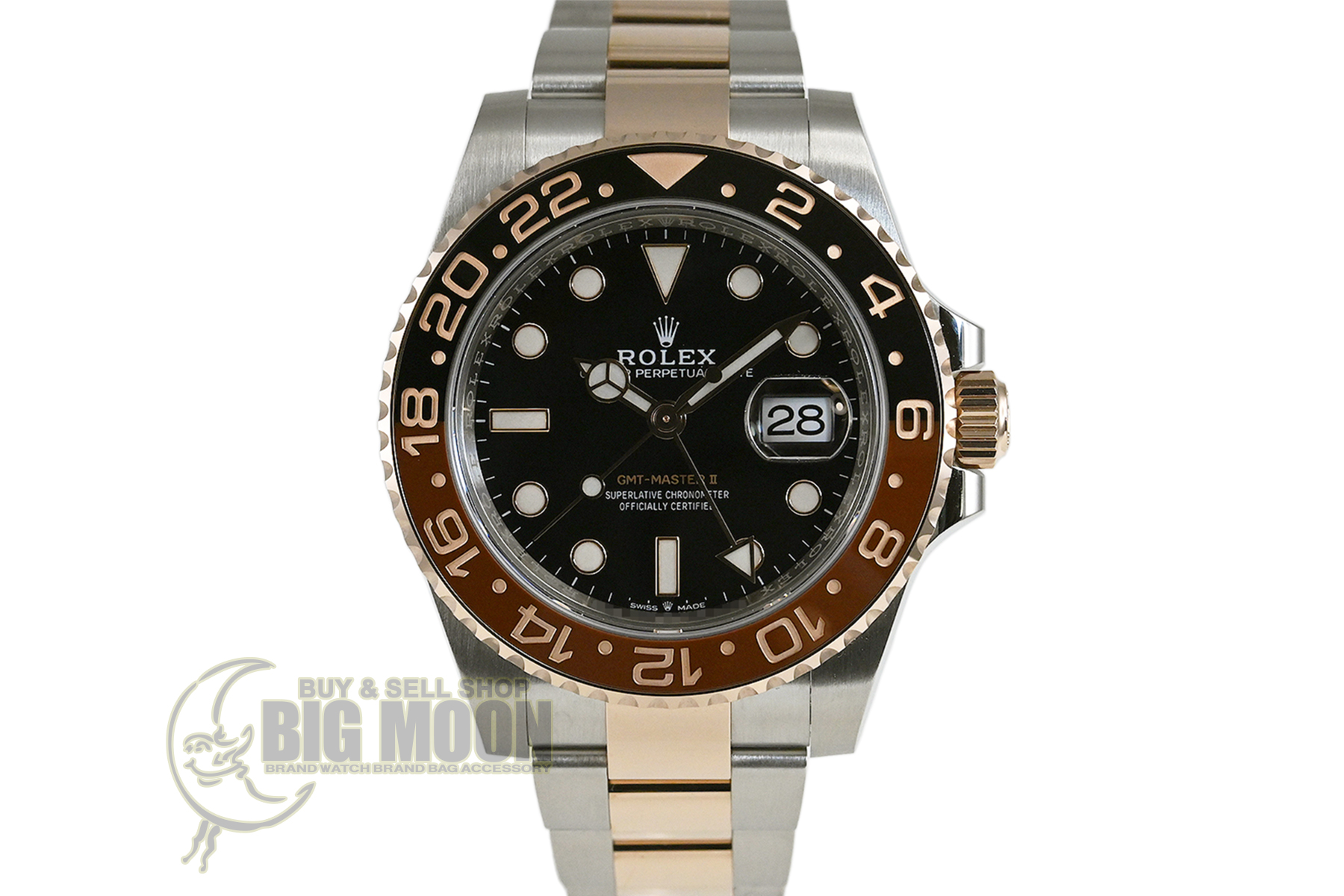 コメント | 1955年に誕生した「GMTマスター」。進化したGMTマスターIIは回転ベゼルにより3箇所の時刻を知る事が出来ます。2018年に登場したK18エバーローズゴールドとステンレスの華やかなコンビモデル「Ref.126711CHNR」、耐久性に優れたブラウン/ブラックカラーのセラクロムベゼルが印象的です。約70時間のパワーリザーブを備えたロレックスキャリバー 3285を搭載しています。少々の軽い擦りキズはありますが目立つ様な深いキズはありません。 |