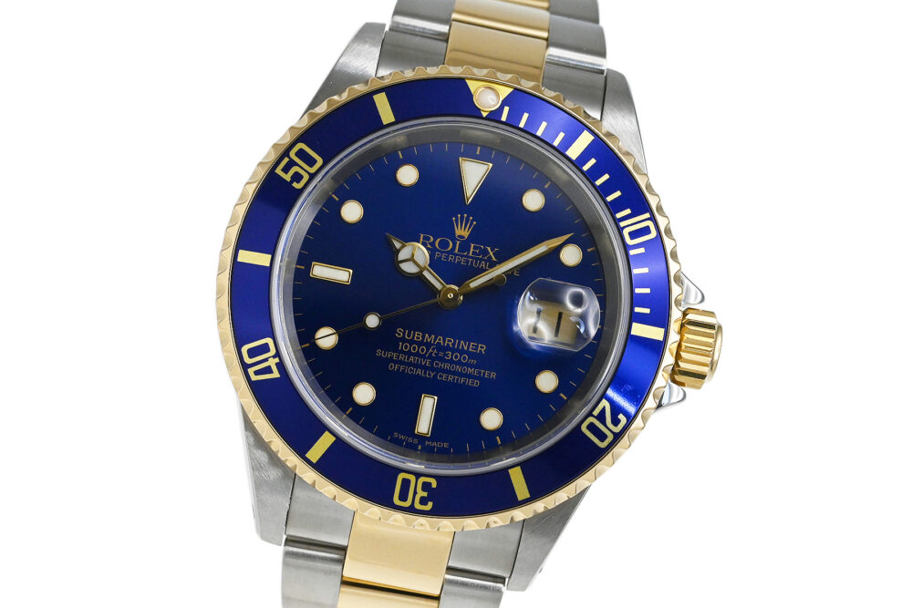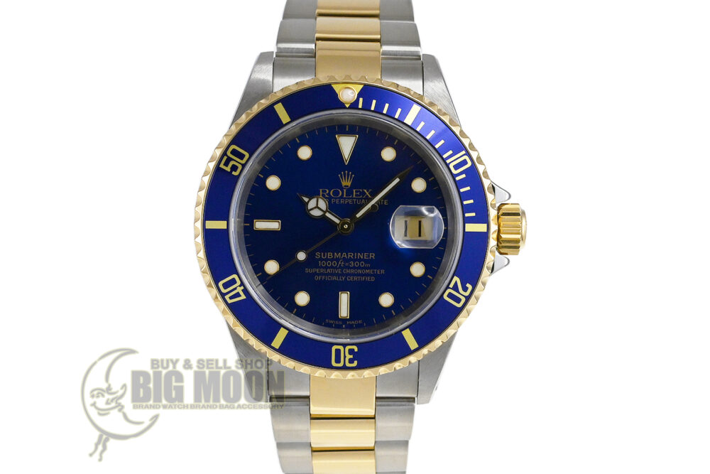 | コメント | 1953年の発売以来、不動の人気を誇る人気ダイバーズウォッチ「サブマリーナー」。色鮮やかなブルーにK18イエローゴールドが華やかな人気コンビモデル「青サブ Ref.16613」、1989年〜2009年頃まで生産されたモデルです。使用に伴う多少の小キズ・擦りキズがあります。目立つ様な大きなキズはありません。2019年5月に正規修理サービスにてオーバーホール、2025年11月に当店契約の修理サービスにてオーバーホールをしています。 |