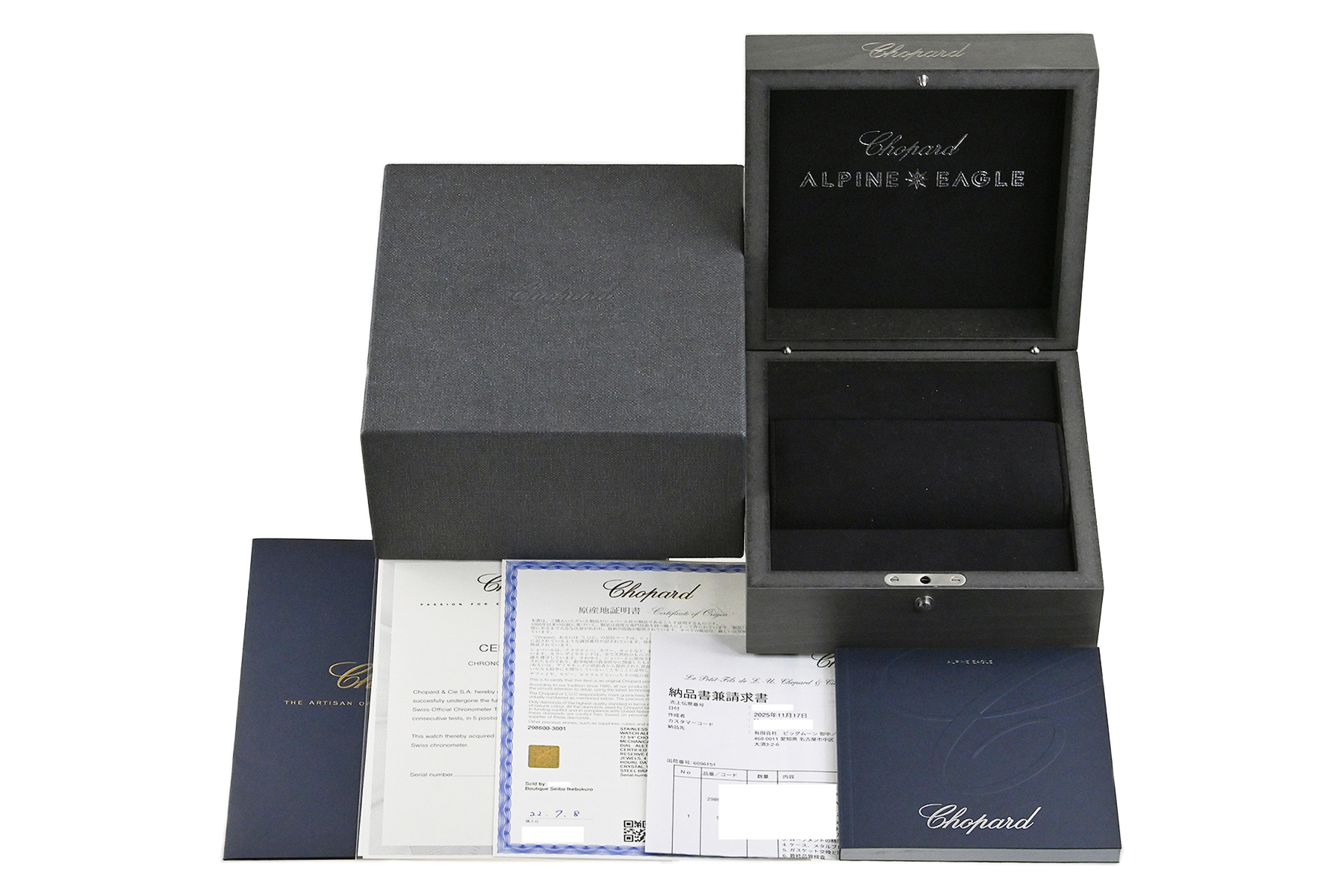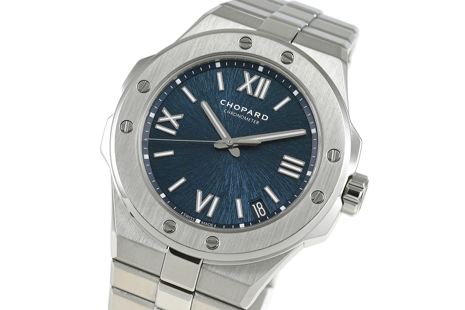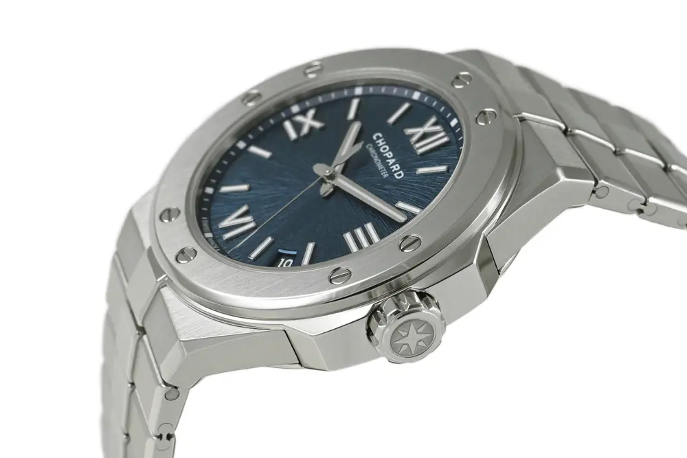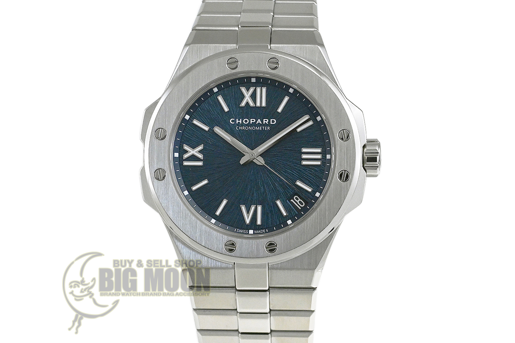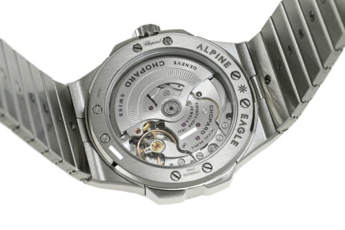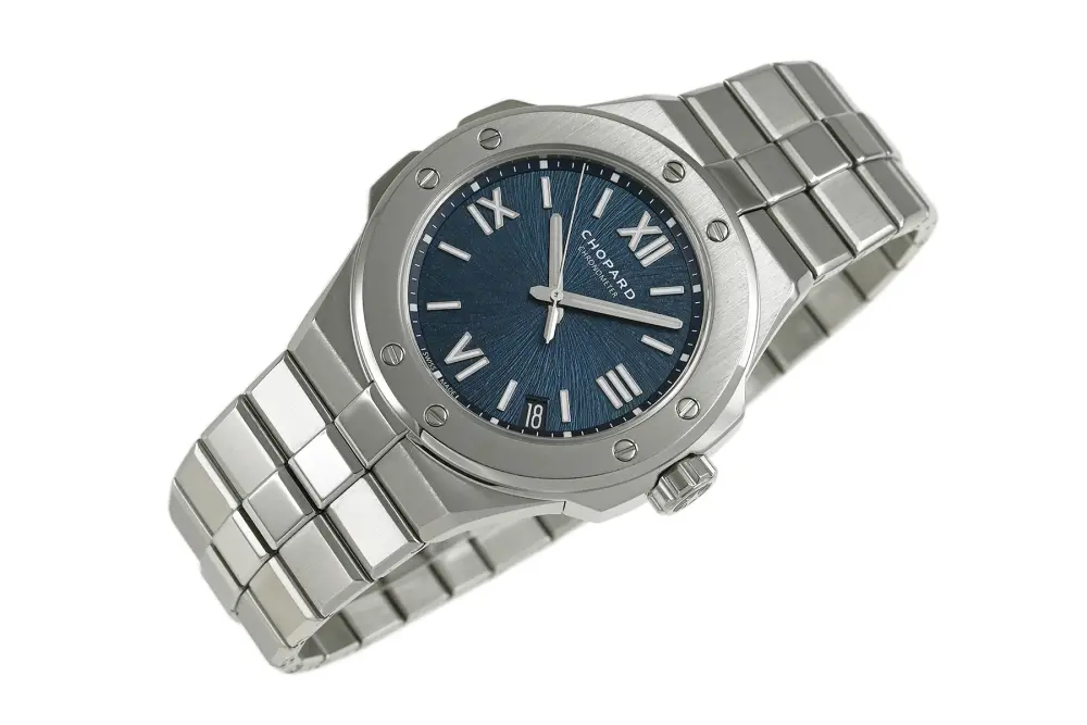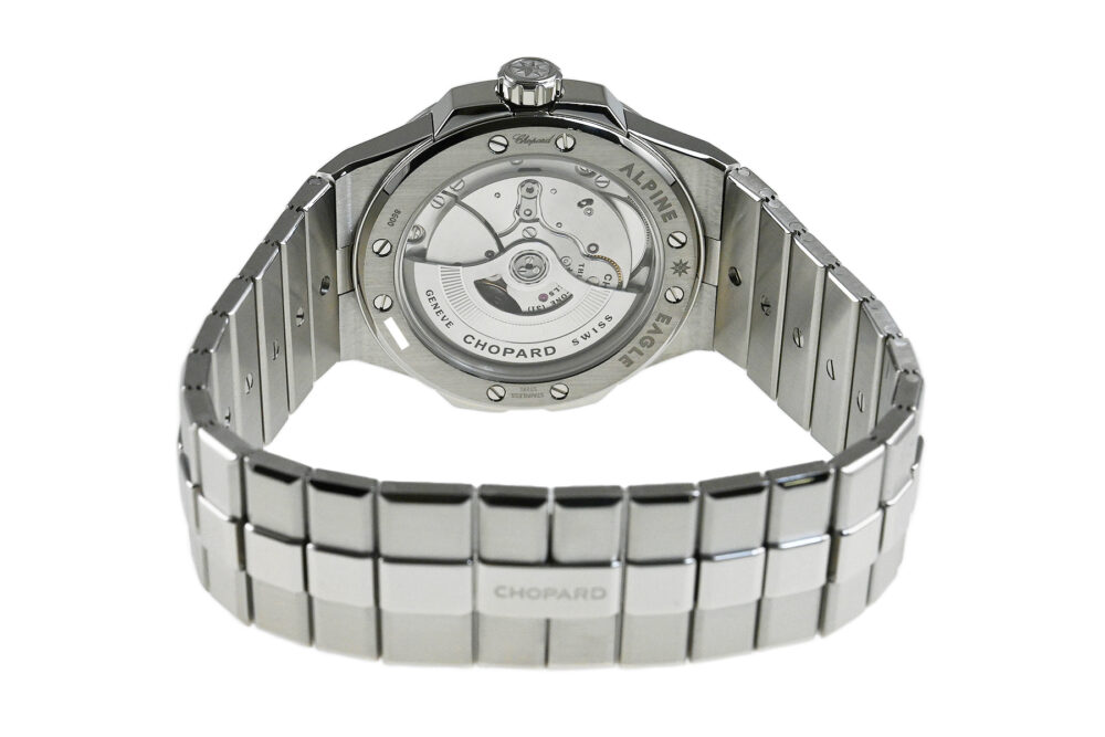 | コメント | 自社一貫生産する高級時計メーカー(マニュファクチュール)ショパール。アルプスと威厳あるワシの力強さにインスピレーションを得たコレクション「アルパイン イーグル」自動巻モデルです。ワシの虹彩をイメージさせるデザインが施されたブルーダイアルが印象的、スポーティーでオシャレなモデルです。COSC認定クロノメーター キャリバー01.01-Cを搭載。ベゼルやブレス裏側など使用に伴う若干の小キズ・擦りキズはありますが目立つ様な深いキズはありません。国内正規店にて購入品、2025年11月に正規修理サービスにてメンテナンスサービスをしています。 |