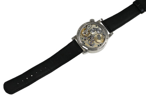 | コメント | 2009年に発表された「ツァイトヴェルク」、K18ホワイトゴールドモデルです。初めて瞬転式数字ディスクによって時分をデジタル表示する機械式腕時計で、デジタル式ジャンピングアワー表示を搭載した独特なダイアルデザインが特徴的です。36時間のパワーリザーブを備えたキャリバーL043.1を搭載、シースルー・バックからは美しいムーブメントを堪能できます。少々の軽い小キズ・擦りキズはありますが目立つ様な深いキズはありません。国内正規店にて購入品、2025年2月に正規修理サービスにてストラップ交換をしています。 |