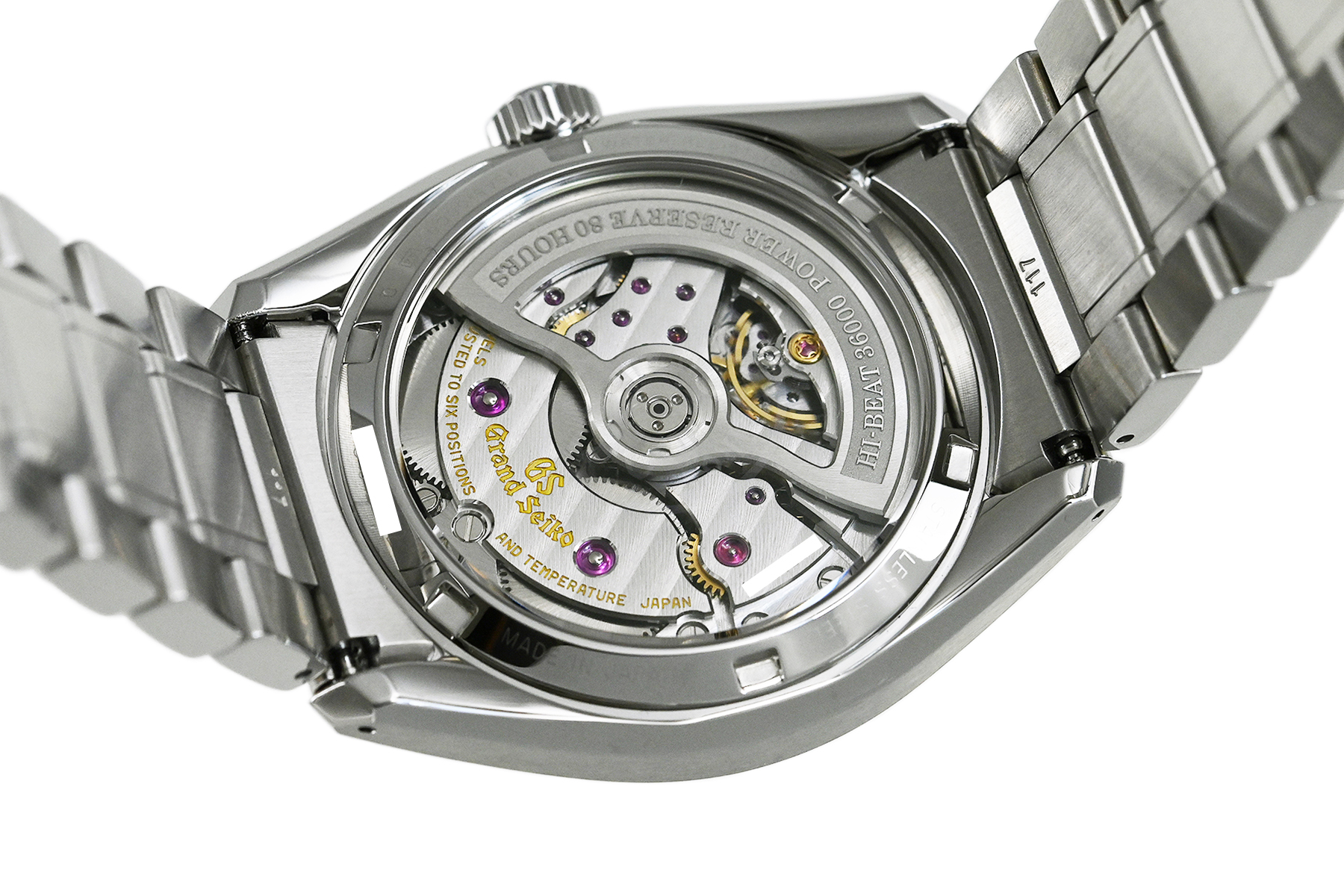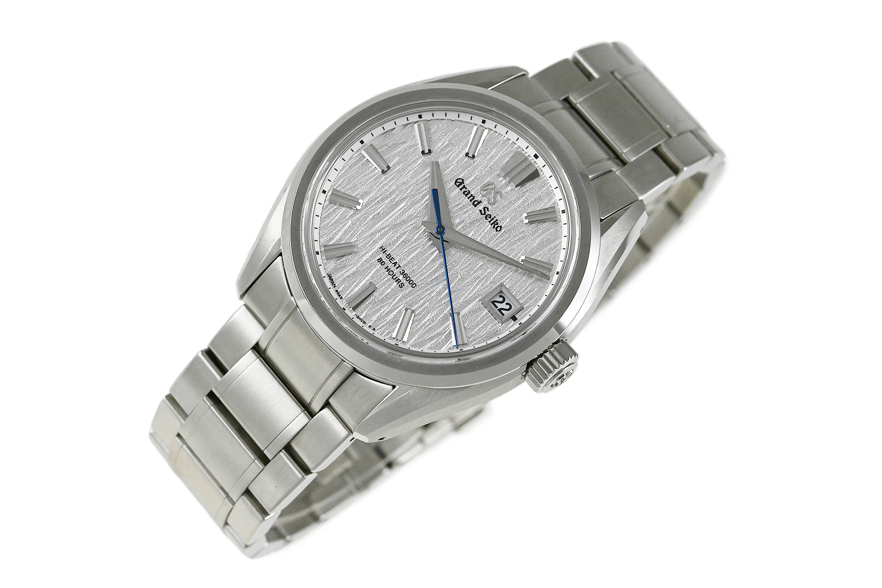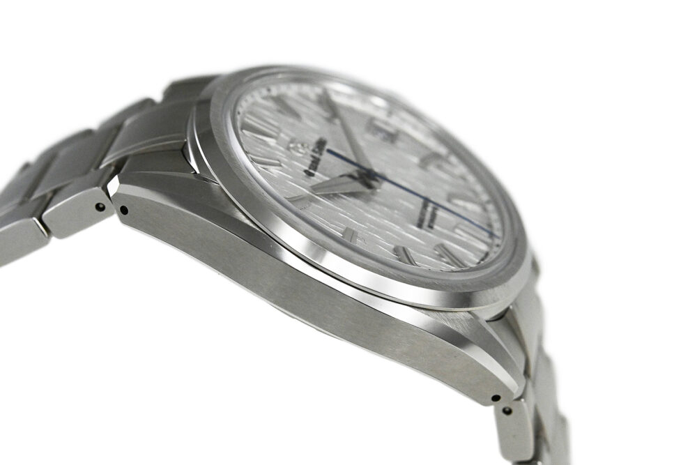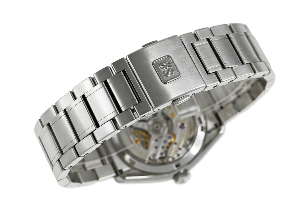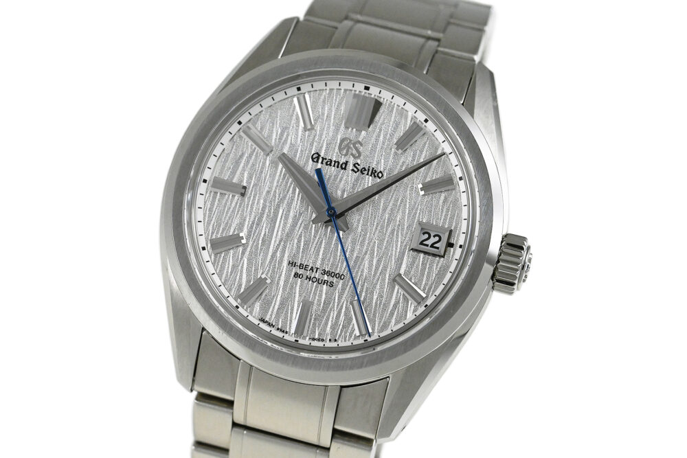 | コメント | 機械式グランドセイコーの製造拠点「グランドセイコースタジオ 雫石」。同じ岩手県にある平庭高原の白樺林に着想を得て、丁寧に作り込り込まれた型打ちのダイヤルが魅力的なモデルです。高効率な脱進機やツインバレル採用で最大巻上時約80時間のパワーリザーブを備えた、毎時36,000振動のハイビートムーブメント「キャリバー9SA5」を搭載、裏蓋シースルーバックとなっています。ブレス裏側に使用に伴う若干の擦りキズはありますが目立つ様な深いキズはありません。 |