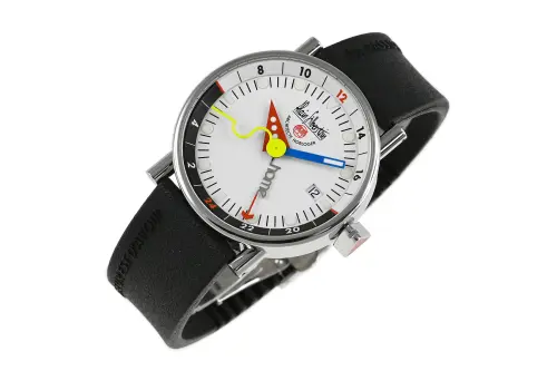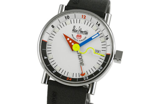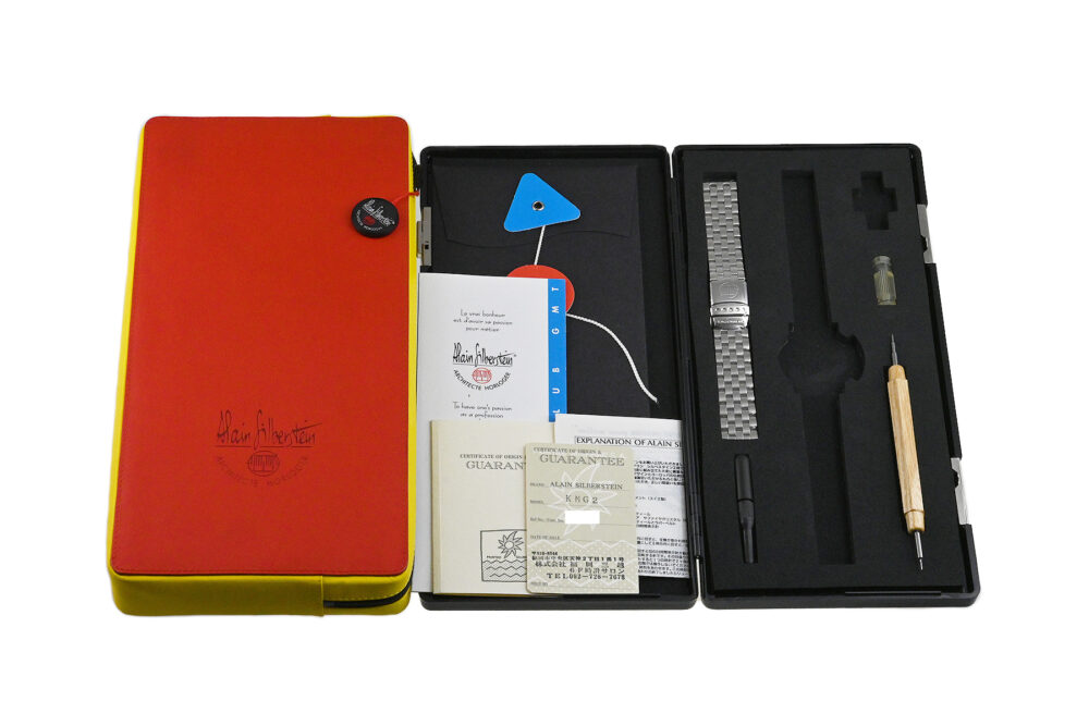 コメント バウハウスに影響を受けた幾何学的なデザインや多彩な色使いが特徴の「アラン・シルベスタイン」。GMT機能を搭載した世界500本限定モデルです。裏蓋開閉用の溝付近(全て)に少しキズがあります。その他は若干の軽い擦りキズはありますが目立つ様な深いキズはありません。国内正規店にて購入品です。