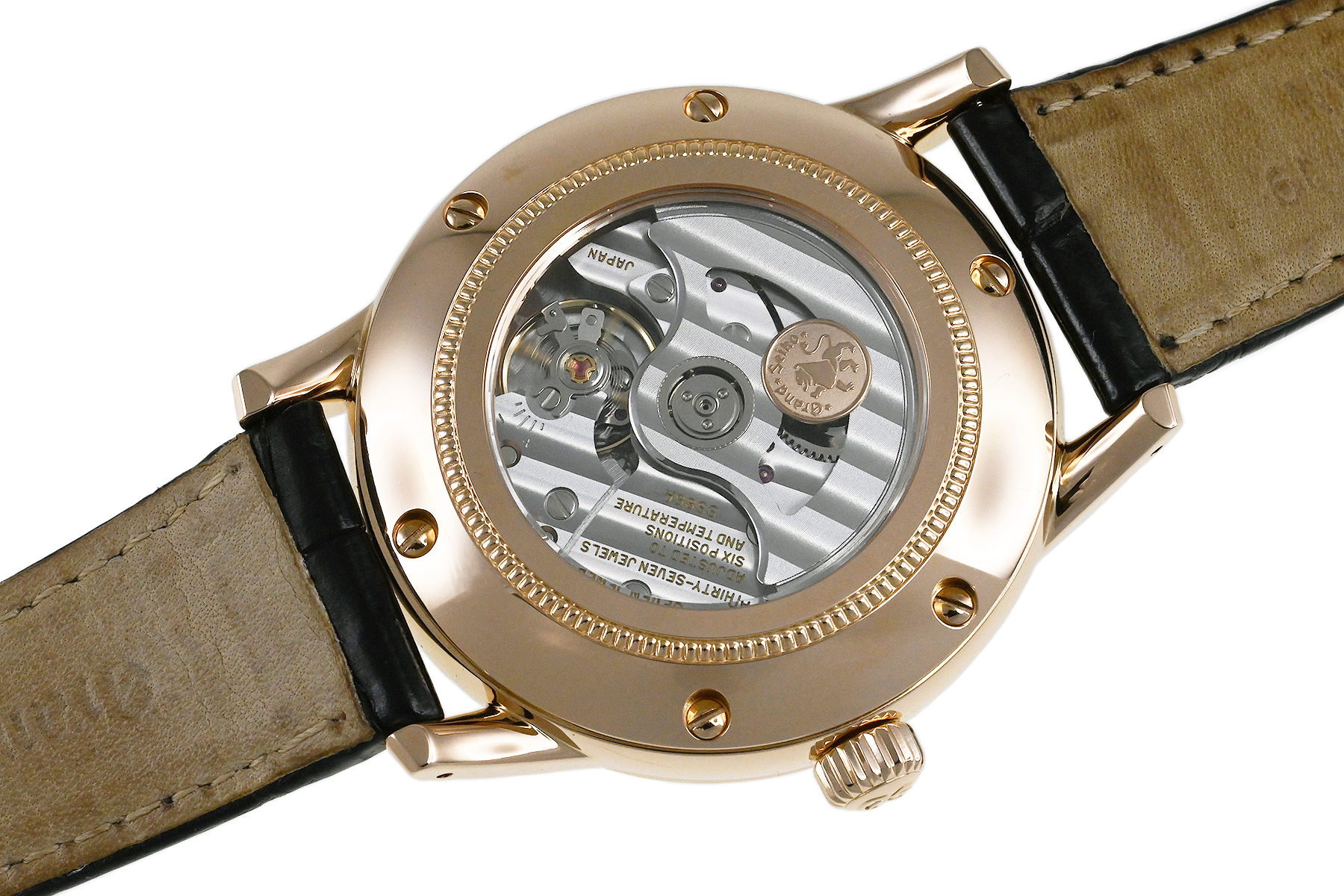| コメント | セイコーのフラッグシップモデル「グランドセイコー」。GMT機能を装備した36000振動(毎秒10振動)のメカニカルハイビートキャリバー9S86を搭載、裏蓋シースルーバックとなっています。「グランドセイコー スペシャル規格検定」に準拠した特別仕様のK18ピンクゴールドモデルです。少々の軽い擦りキズはありますが目立つ様な深いキズはありません。 |