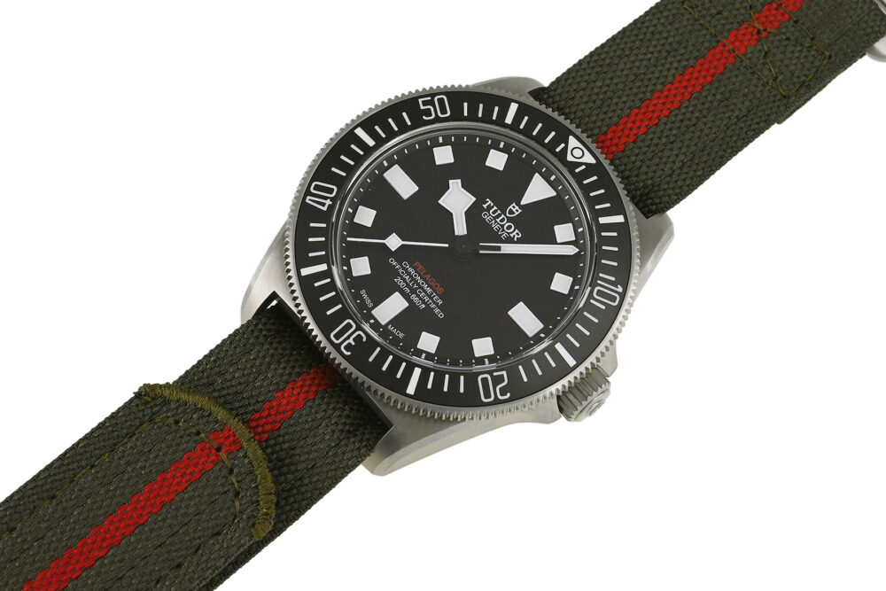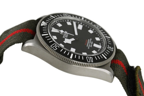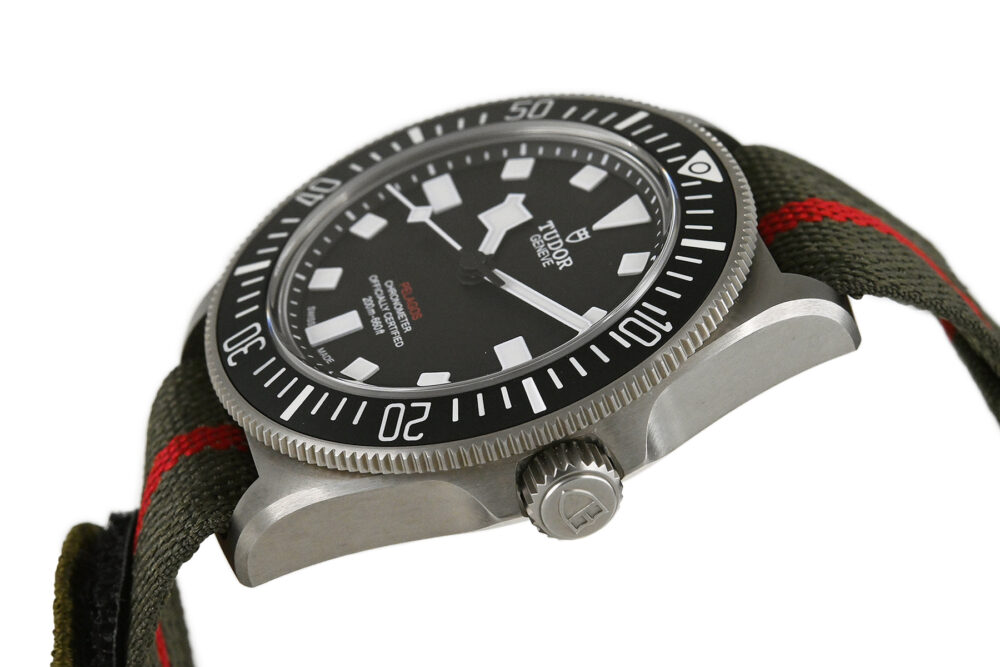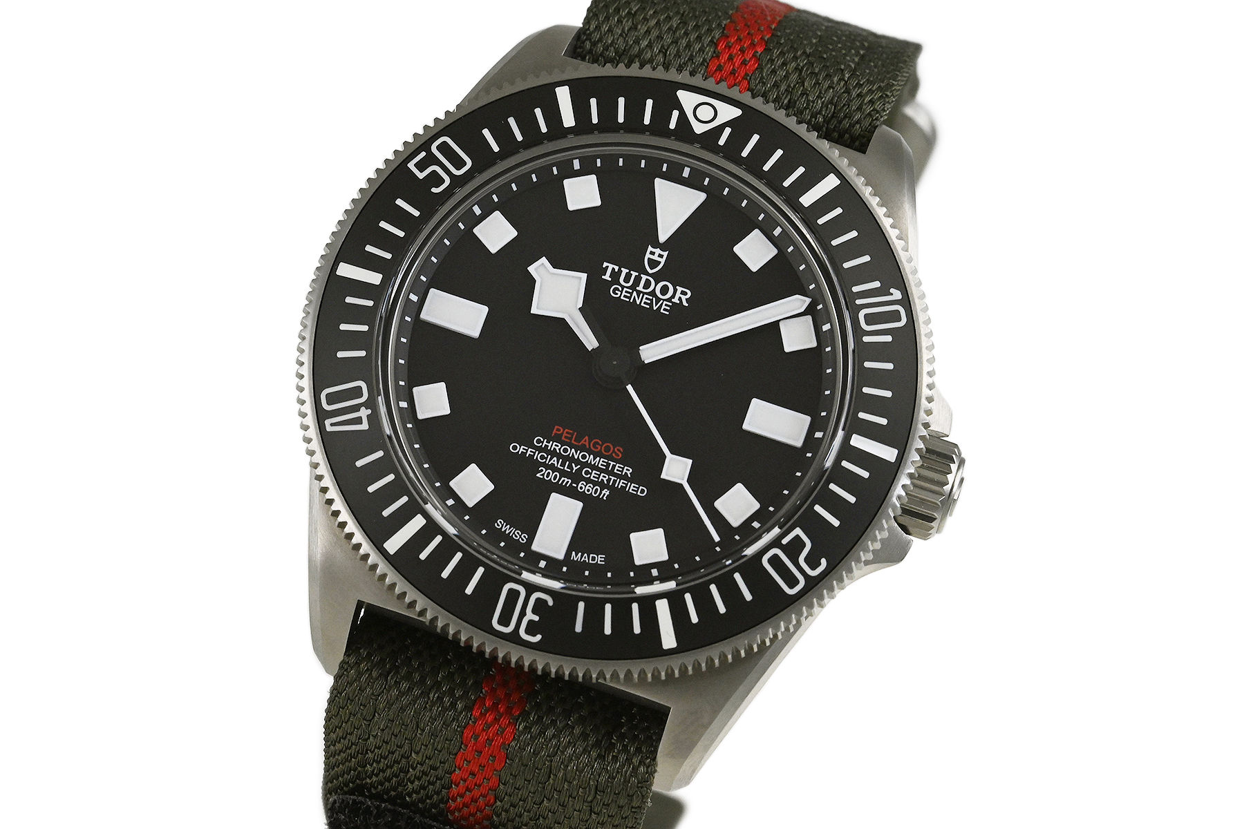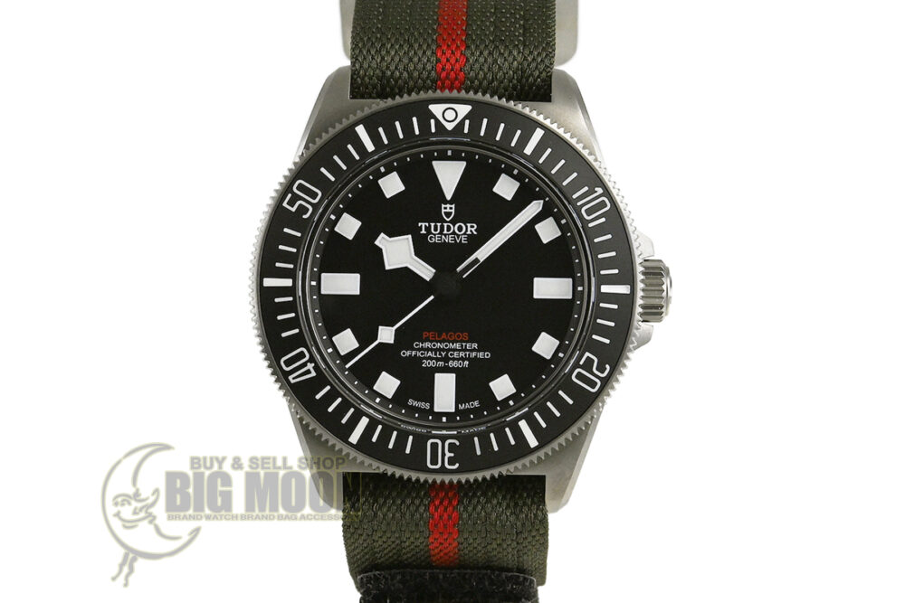 | コメント | ロレックスの兄弟ブランド「チューダー」。名作「イカサブ」のディテールをチタンケースに再現したダイバーズ「ペラゴス」コレクションに加わったミリタリーダイバーズウォッチです。FXDとはfixed(固定されている)の略称で、ケースとラグが一体型となっているのが特徴的、約70時間パワーリザーブのマニュファクチュールキャリバーMT5602を搭載しています。キズらしいキズはなくキレイなコンディションです。 |