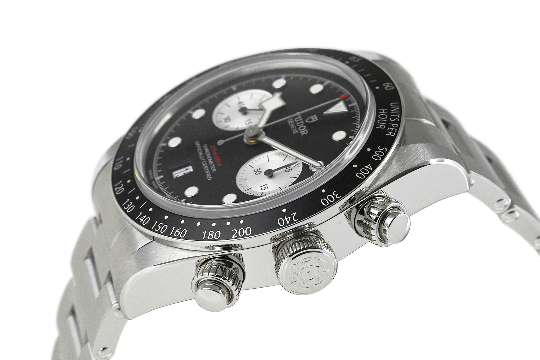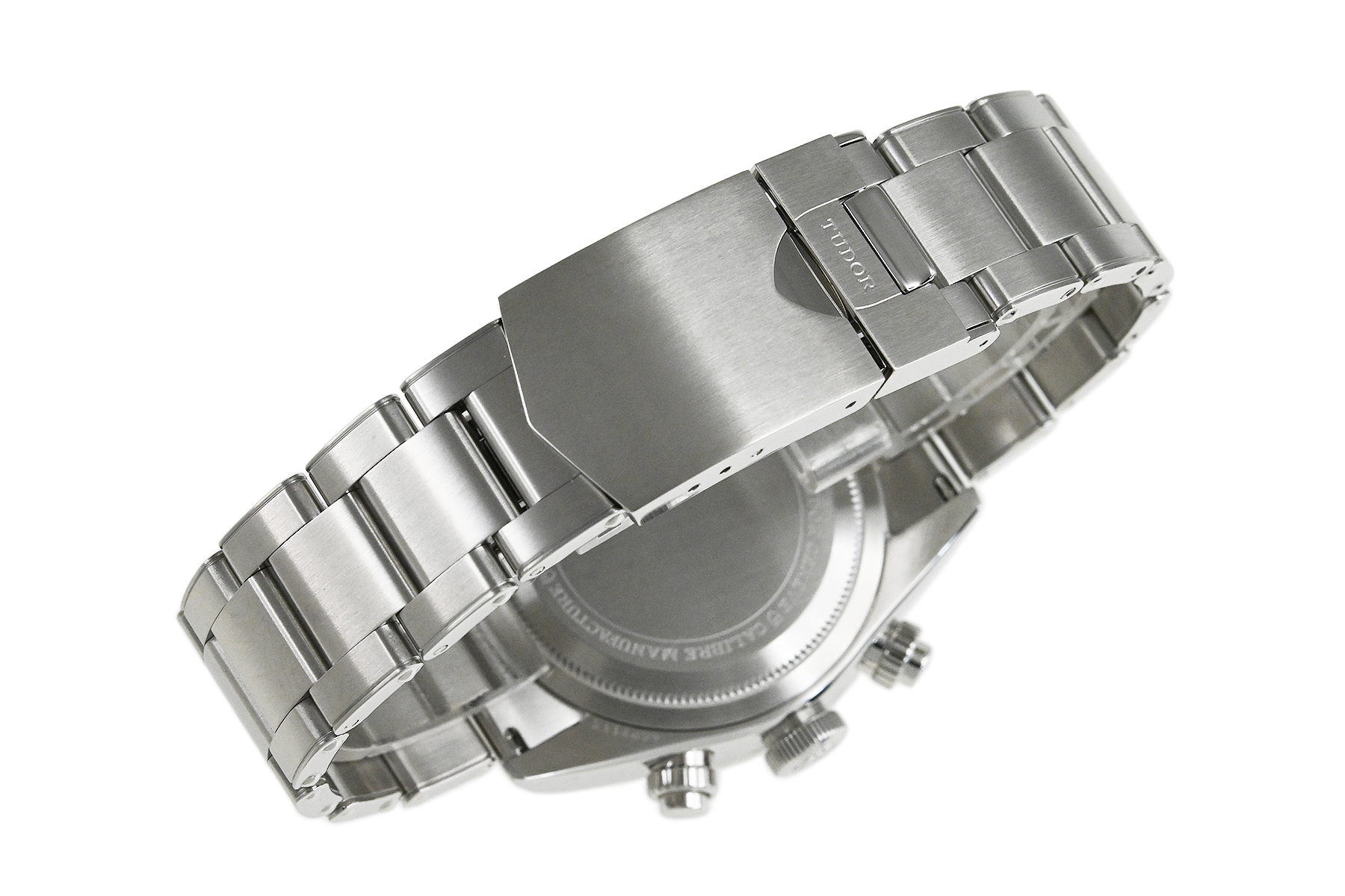 | コメント | ロレックスの兄弟ブランド「チューダー」。ブランド初のクロノグラフは1970年に誕生し50周年を迎え登場したモデルです。逆パンダダイアルが特徴的、コラムホイールと垂直クラッチを備えたチューダーマニュファクチュールキャリバー MT5813を搭載しています。裏蓋に少々の擦りキズがあります。その他は僅かな擦れはありますが目立つ様なキズはありません。2025年12月に日本ロレックスサービスセンターにて内部点調整・時間調整をしています。 |