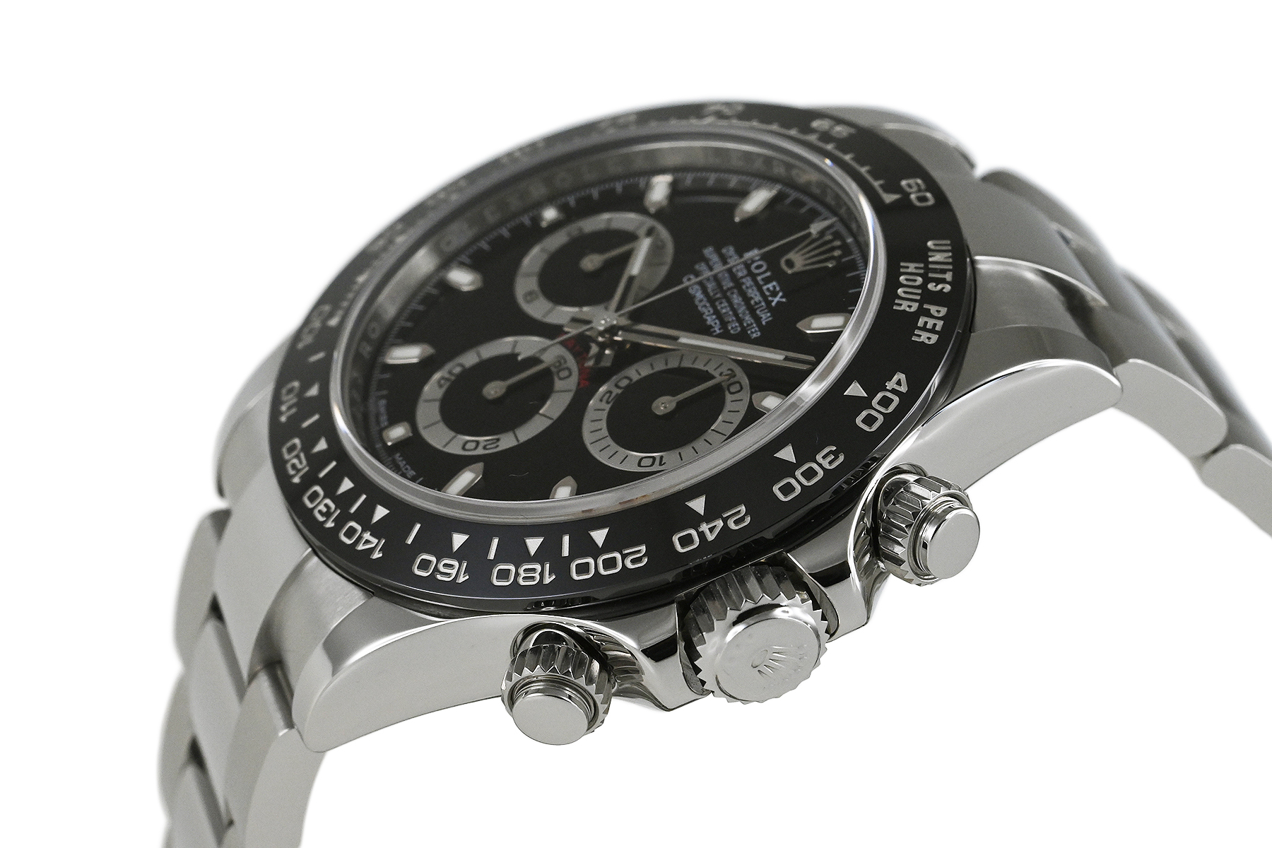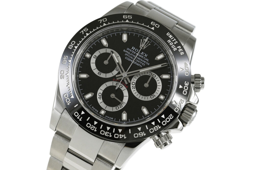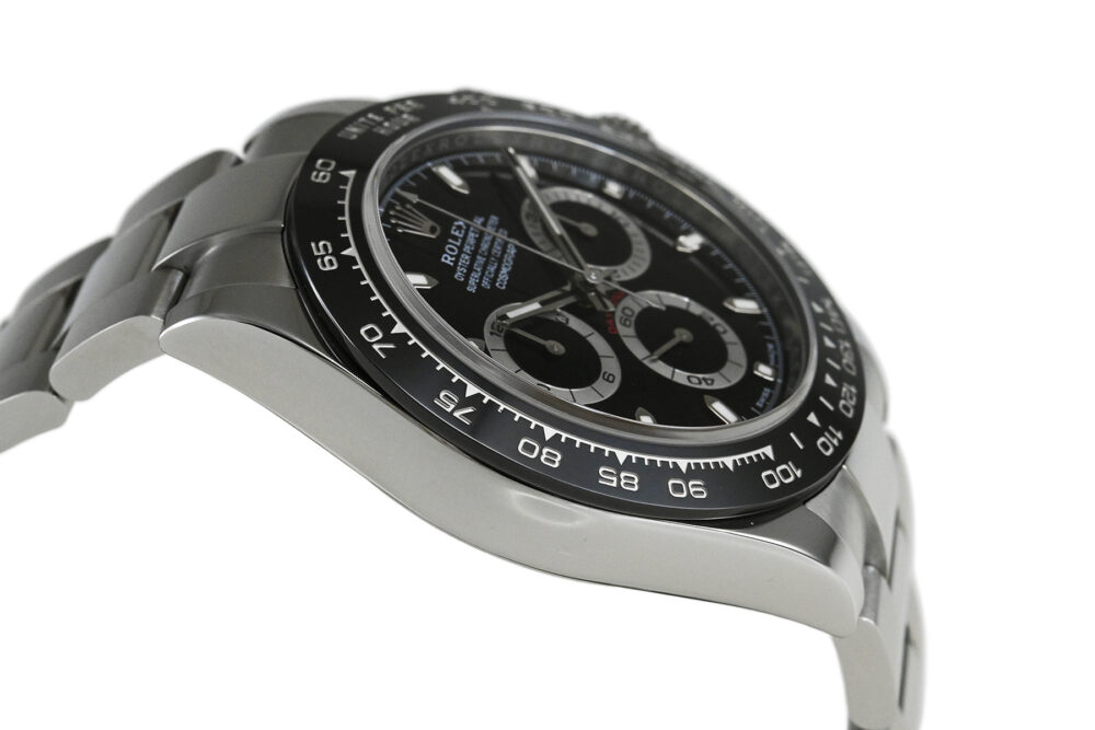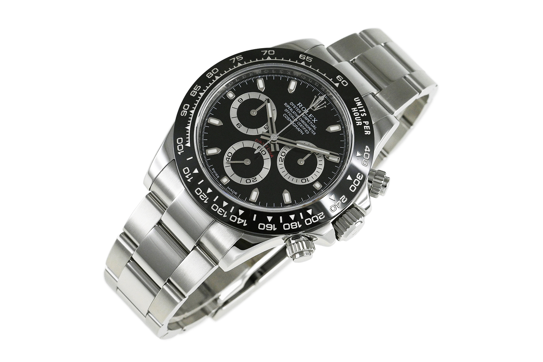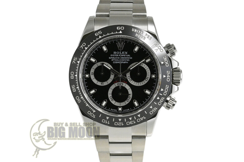 | コメント | 1963年に誕生した人気スポーツロレックス「コスモグラフ デイトナ」。2016年~2023年まで製造された「116500LN」、ブラックセラクロム(セラミック)ベゼルを装備したステンレスモデルです。ロレックス完全自社製造の高精度クロノメーターキャリバー4130を搭載しています。僅かな軽い擦りキズはありますが目立つ様な深いキズはありません。 |
