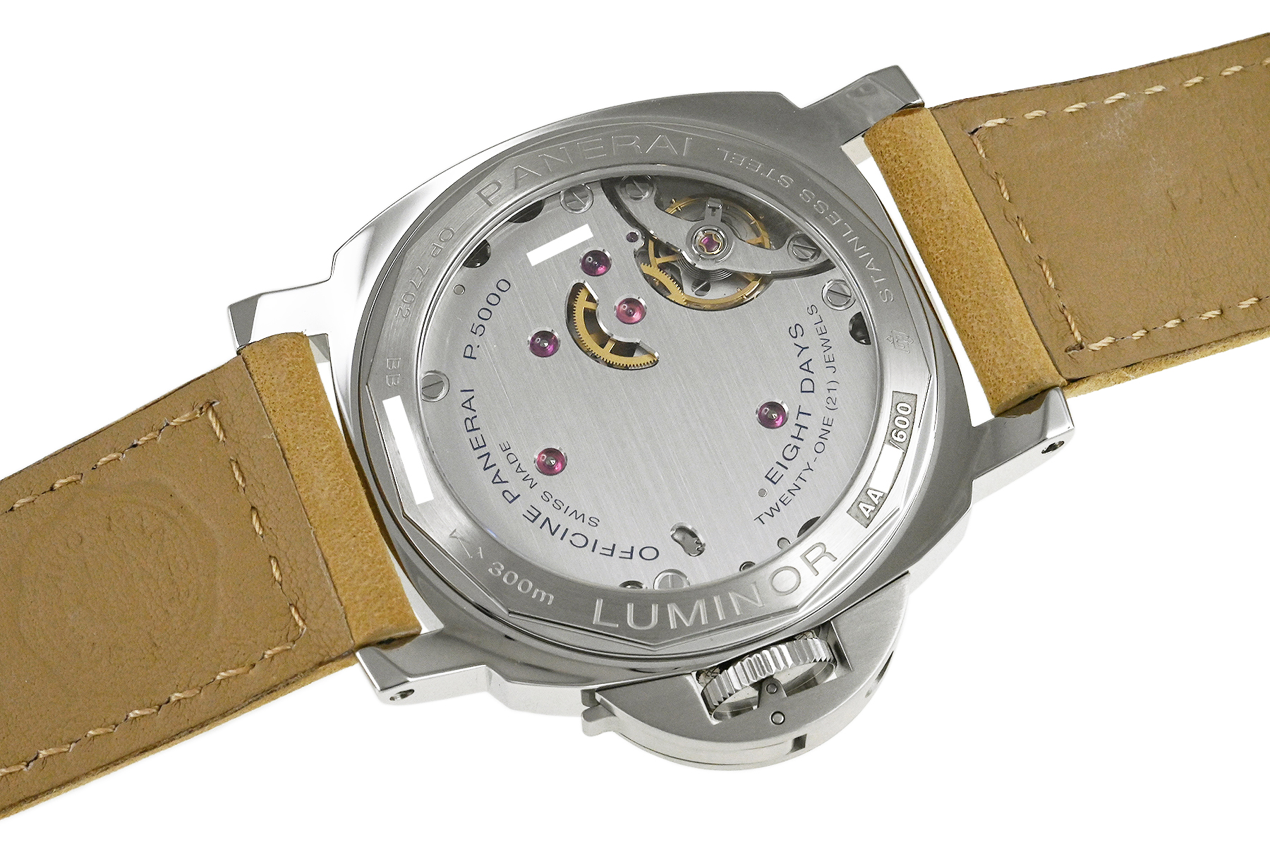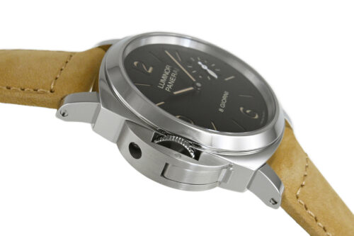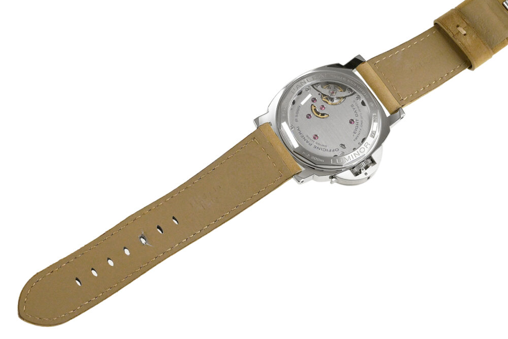 コメント 力強いケースデザインで人気の「ルミノール」シリーズ『PAM01655』ブティック限定です。8日間のパワーリザーブをもつパネライ自社製手巻ムーブCal.P5000搭載の「デストロ」レフティ仕様モデルです。僅かな擦れはありますが目立つ様なキズはありません。