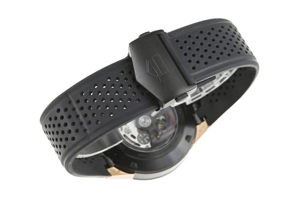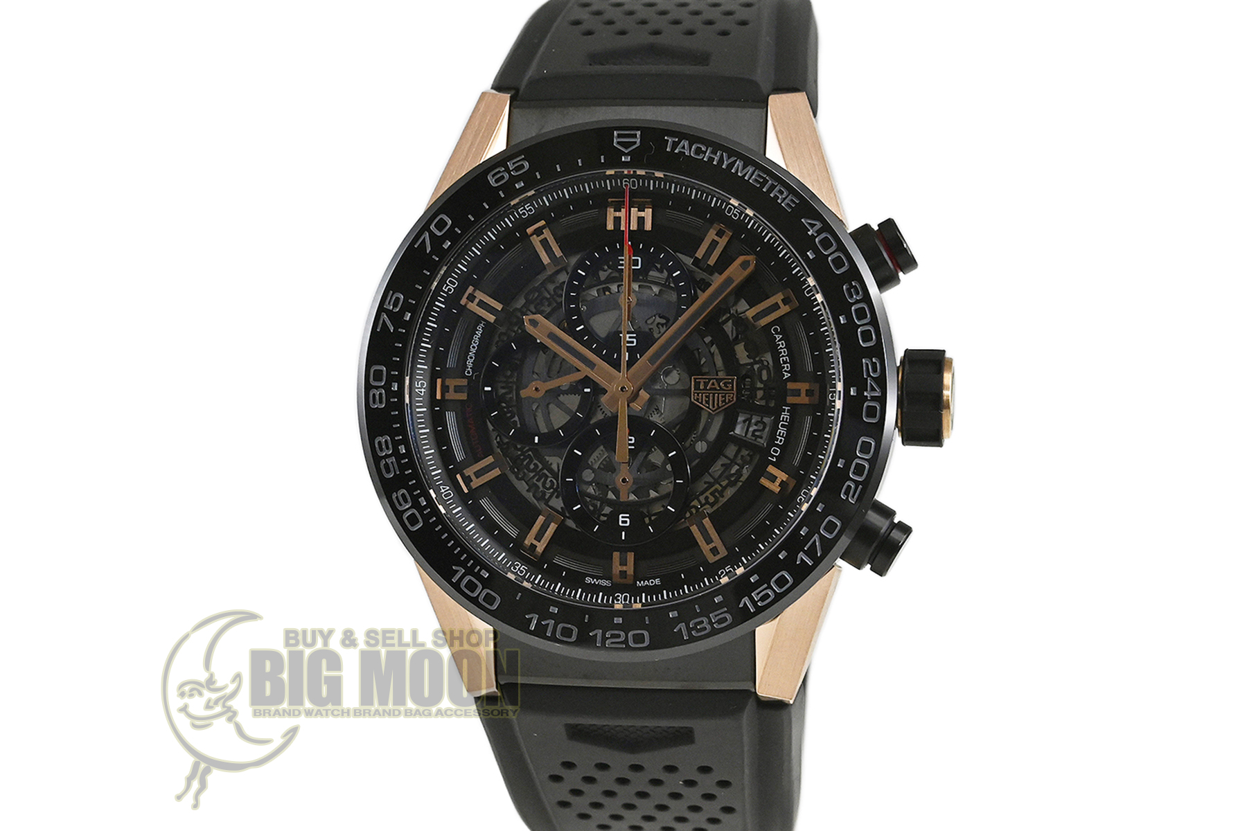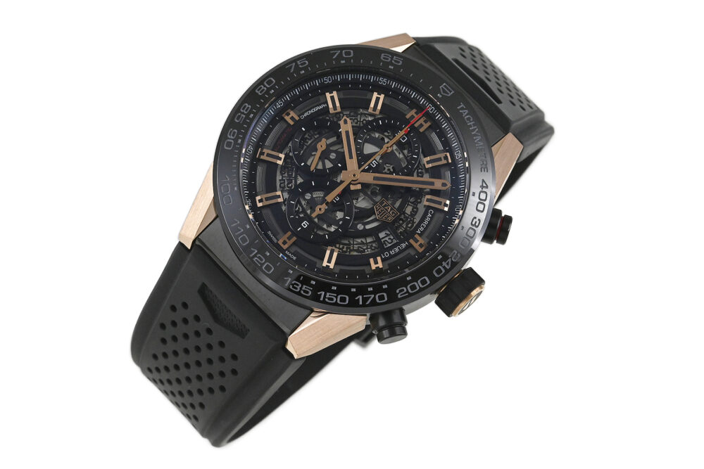 | コメント | モーターレースからインスピレーションを得たクラシックながら現代的なスポーツウォッチ「カレラ」シリーズ。艶のあるブラックセラミック製ベゼル、スケルトンダイアルが特徴です。タグ・ホイヤー自社製ムーブメント「キャリバー ホイヤー01」搭載モデルです。裏蓋シースルーバックとなっています。バックル部分に軽い線キズ・擦りキズがあります。その他は目立つ様なキズはありません。国内正規店にて購入品です。 |