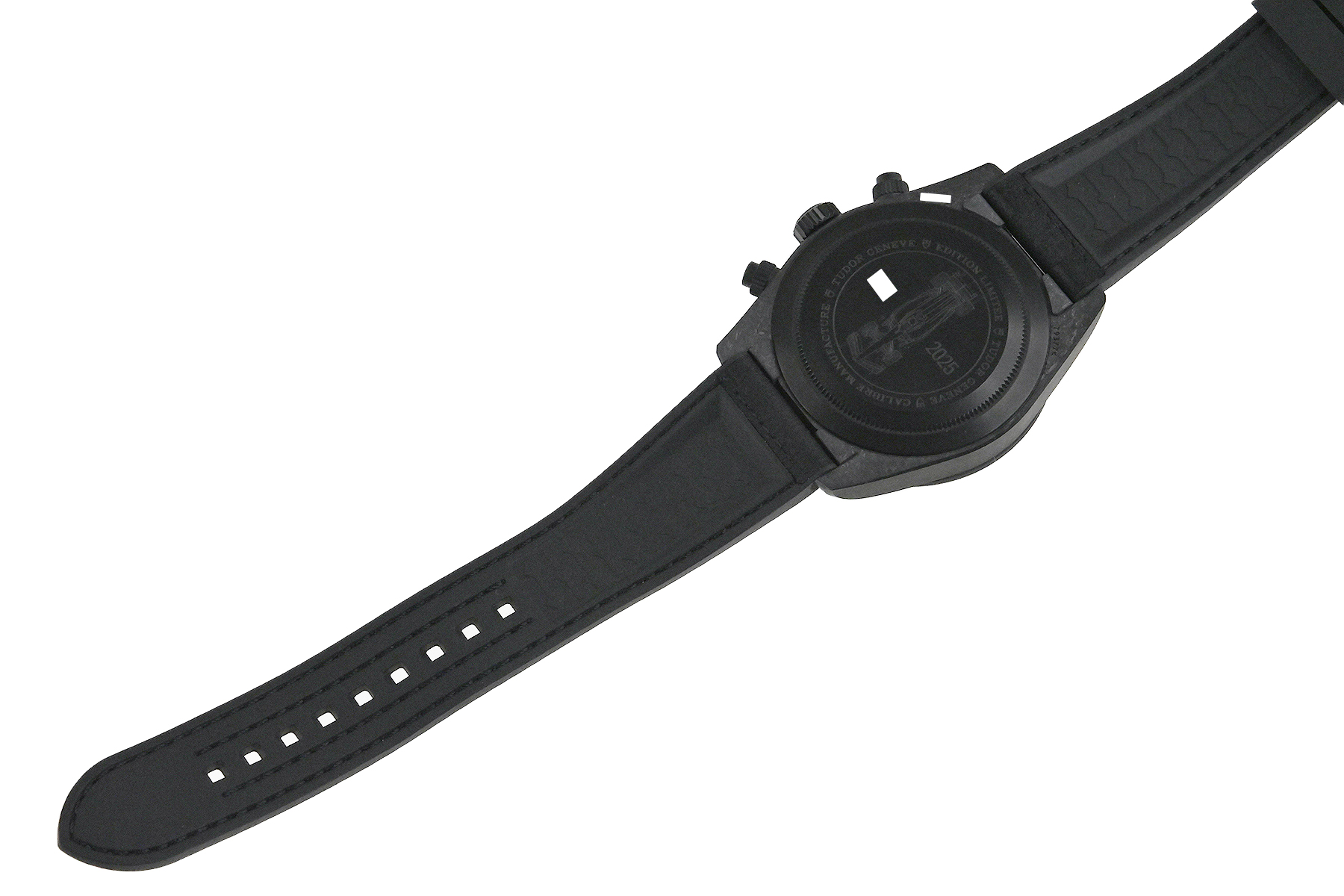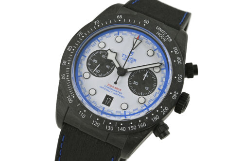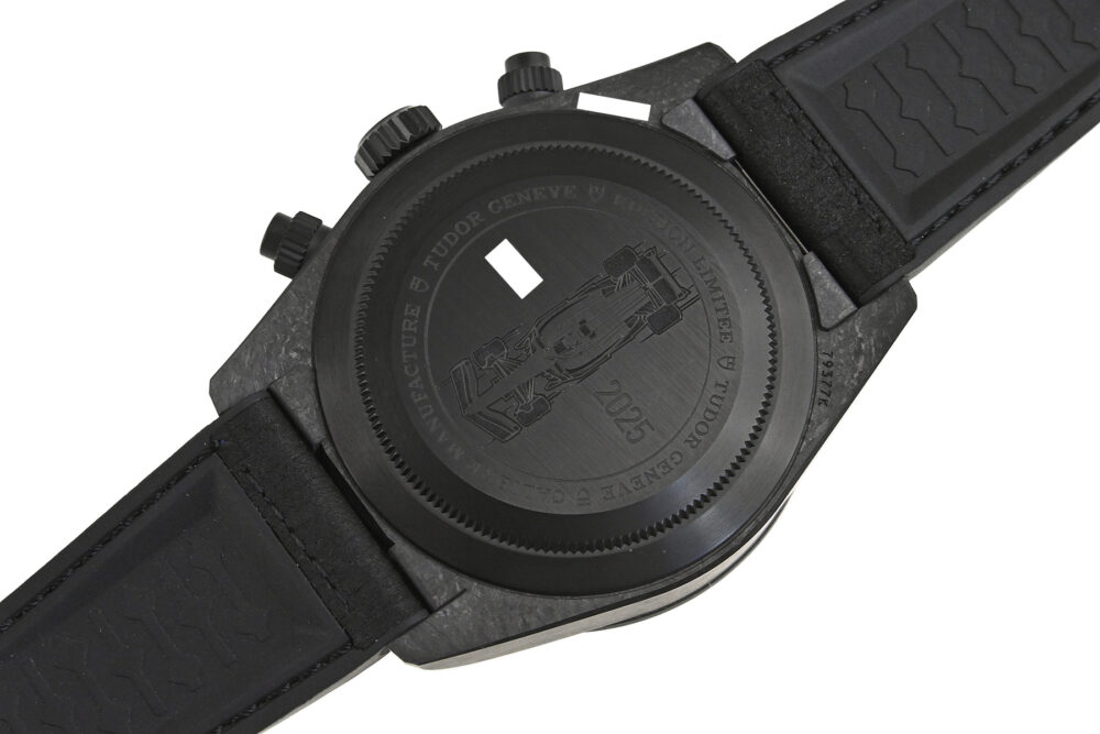 | コメント | ロレックスの兄弟ブランド「チューダー」。カーボンファイバー製ケースを採用した完全レース仕様のクロノグラフ「ブラックベイ クロノ “カーボン 25”」。「Visa Cash App Racing Bulls F1チーム」2025年シーズンのカラーリングからインスピレーションを受けたデザイン、2025本限定モデルです。PVD仕上げのチタニウム製ケースバックに限定シリアル刻印入りです。チューダーマニュファクチュールキャリバー MT5813を搭載。キズらしいキズはなくキレイなコンディションです。 |