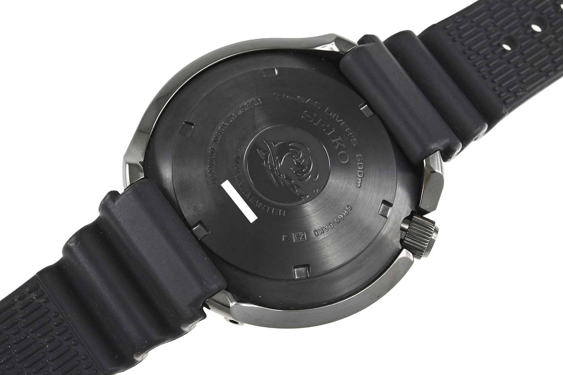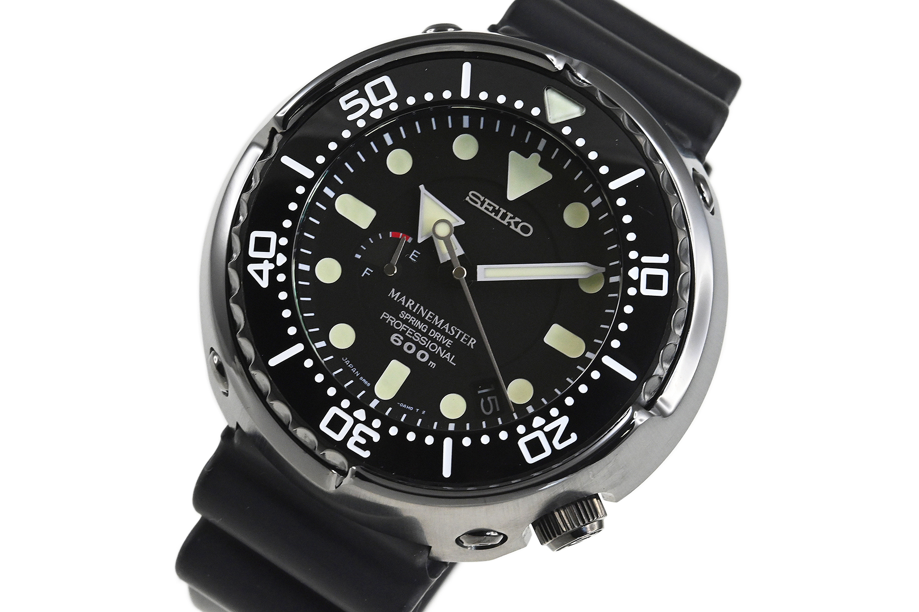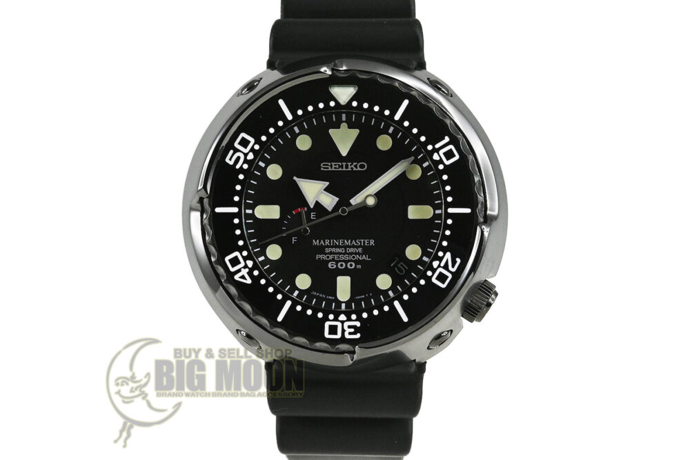 | コメント | 1975年に開発した世界初の外胴仕様のプロテクター構造により、耐衝撃性、安全性に優れたプロフェッショナル・ダイバーズ・ウォッチ「マリーンマスター」。スプリングドライブ5R65搭載モデル、オールブラック仕様でとてもインパクトがあります。ラバーベルトに若干の使用感(擦れや留め痕)はありますが時計本体にキズはありません。 |