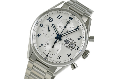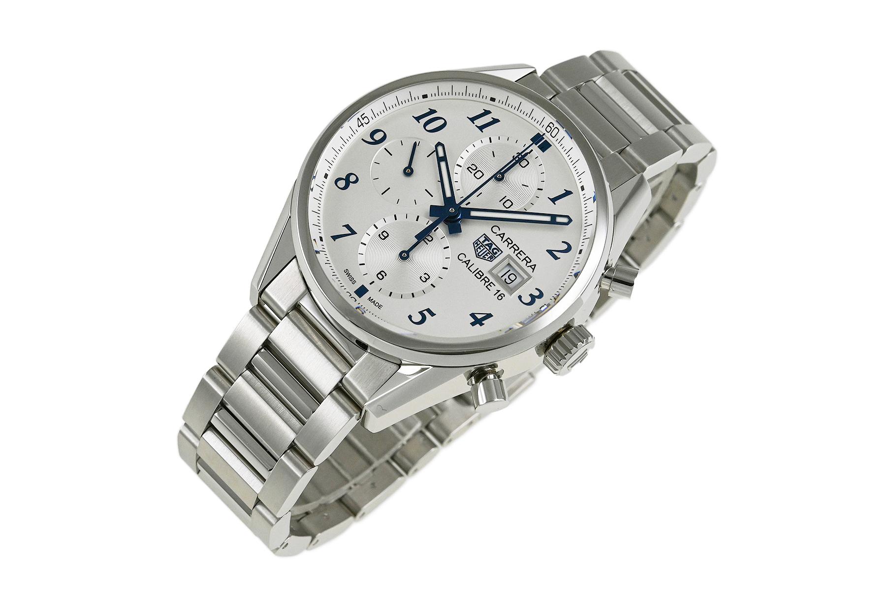 | コメント | モーターレースからインスピレーションを得たクラシックながら現代的なスポーツウォッチ「カレラ」コレクション。綺麗なホワイトオパーリンダイヤルにブルーカラーのアラビア文字インデックス・時分針が際立つデザインが特徴的な日本限定モデルです。キャリバー16を搭載しています。少々の軽い擦りキズはありますが目立つ様な深いキズはありません。2026年1月に正規修理サービスにてムーブメント点検・調整をしています。 |