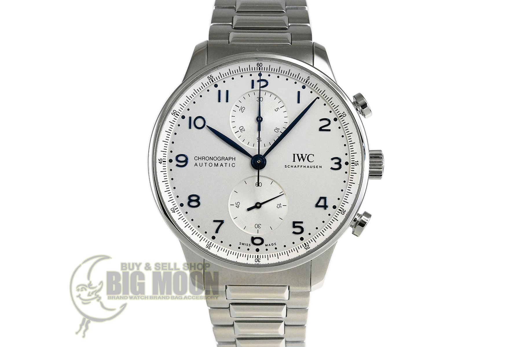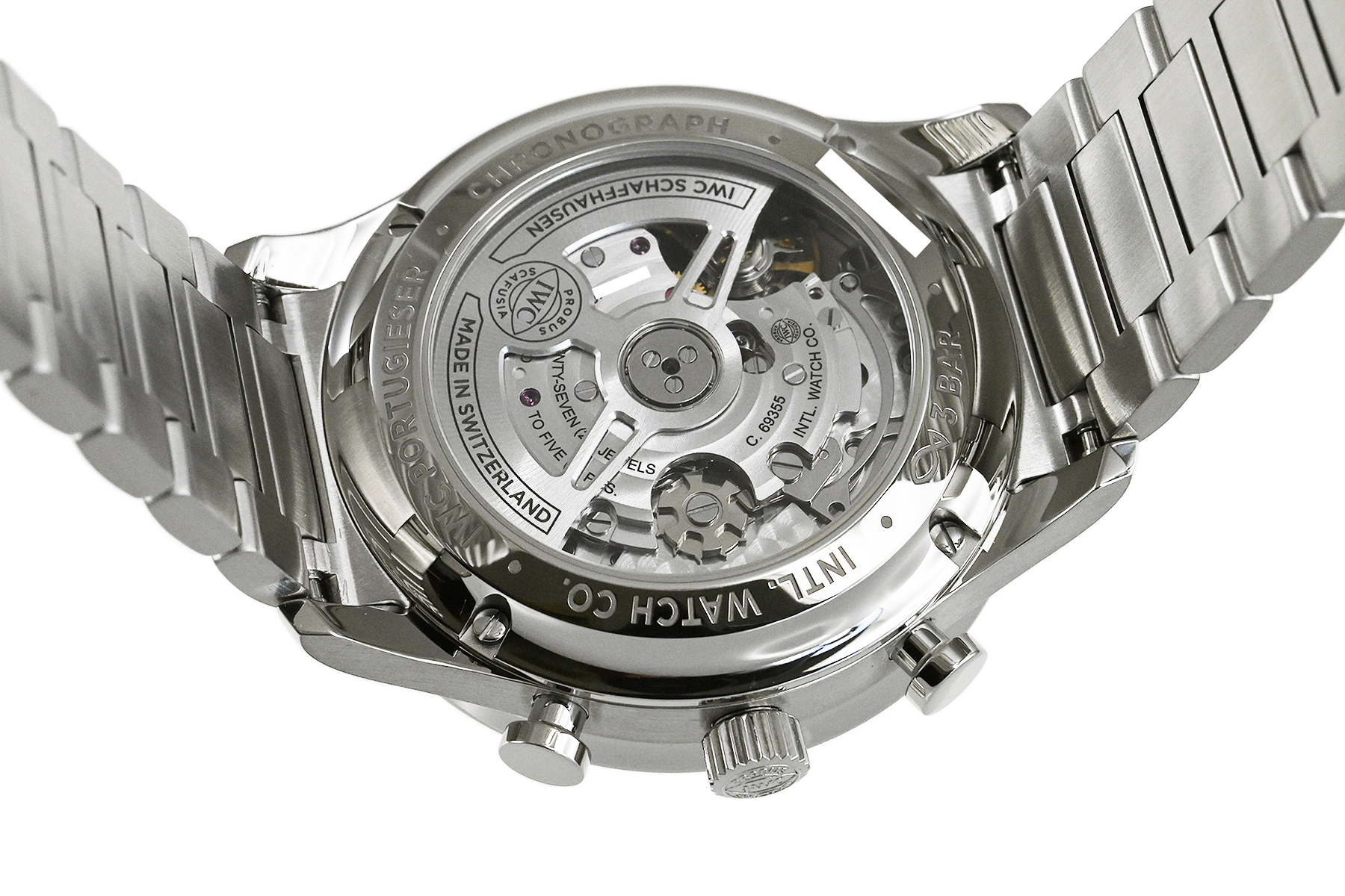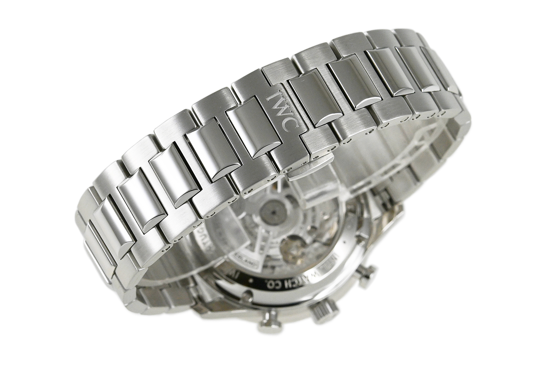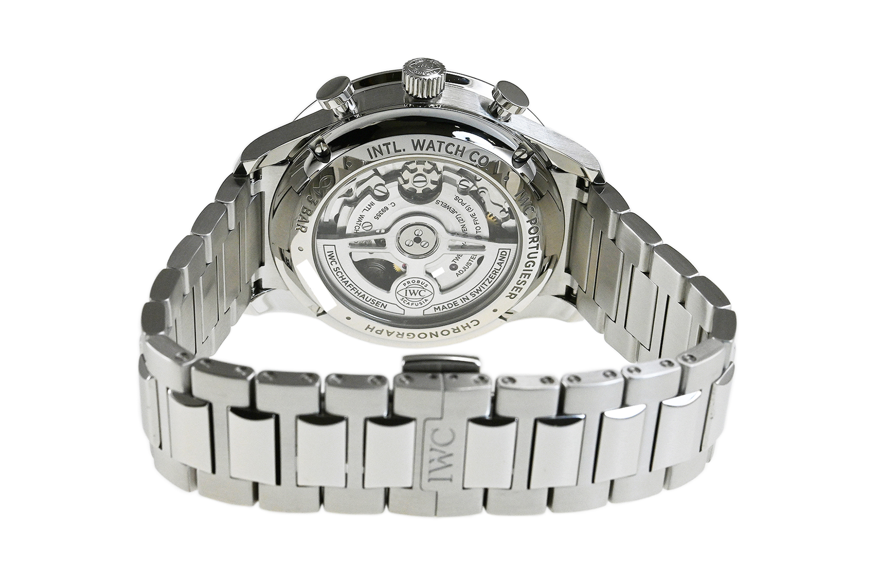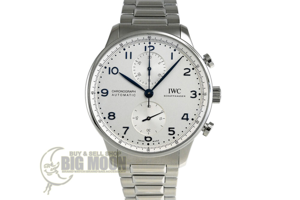 | コメント | IWCの中で最も歴史が長く、端正で優雅な印象のデザインが特徴的な人気コレクション「ポルトギーゼ」。ポルトギーゼ・クロノグラフにブレスレットが初めて採用されました。コラムホイール・デザインのクロノグラフ・ムーブメントIWC自社製キャリバー69355を搭載、裏蓋シースルーバックとなっています。保証書は革ベルト仕様の型番の記載ですが現状はSSブレスが付いています。少々の軽い擦れはありますが目立つ様なキズはありません。国内正規店にて購入品です。 |