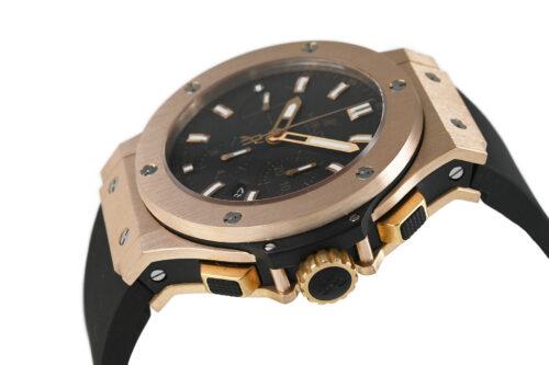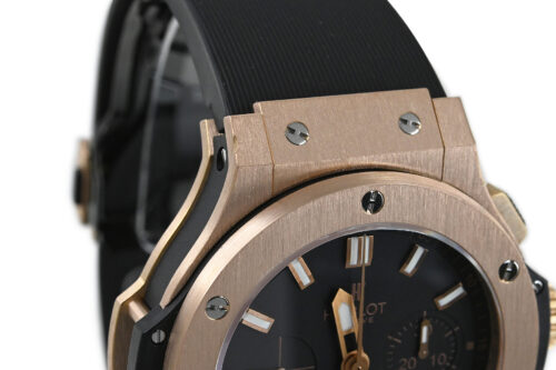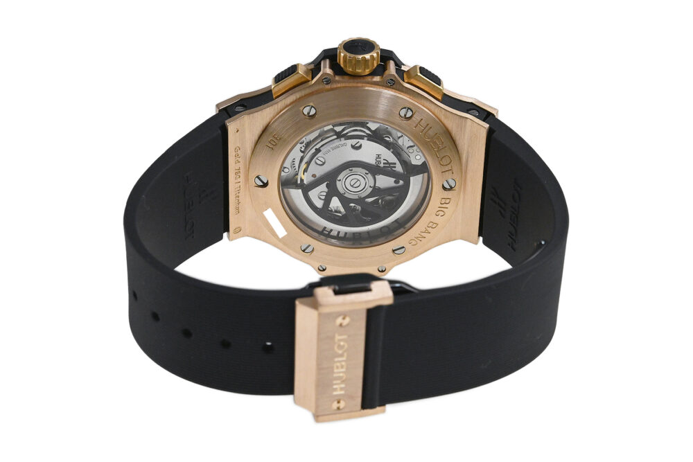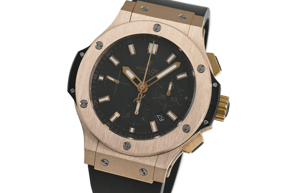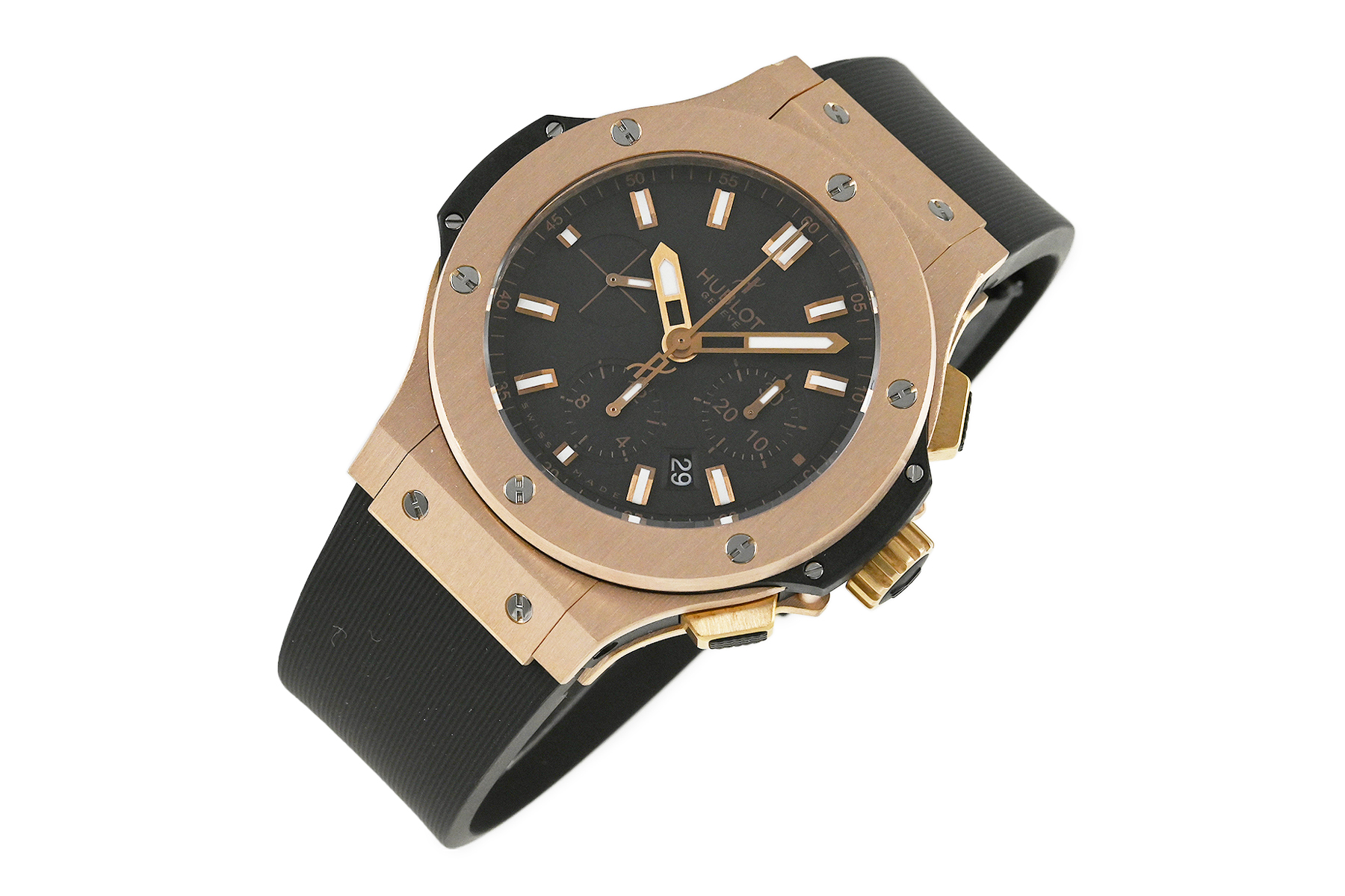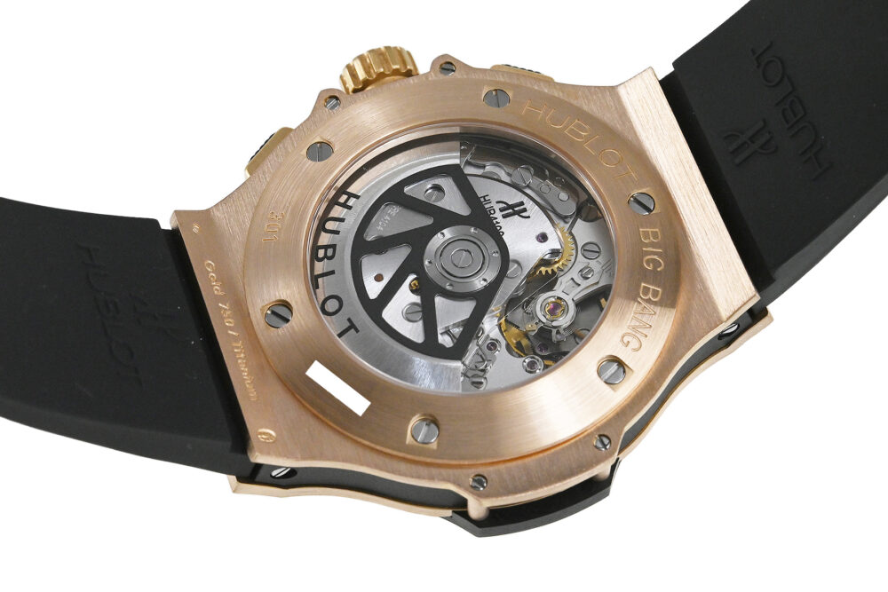 コメント ウブロのフラッグシップモデル「ビッグ・バン」。「異なる素材の融合」と「伝統と未来の融合」をテーマとした人気モデルです。K18レッドゴールドを使用した迫力のあるデザインが魅力的です。裏蓋シースルーバックとなっています。11時方向ラグのエッジ部分にあてキズがあります。その他は少々の軽い擦りキズはありますが目立つ様なキズはありません。