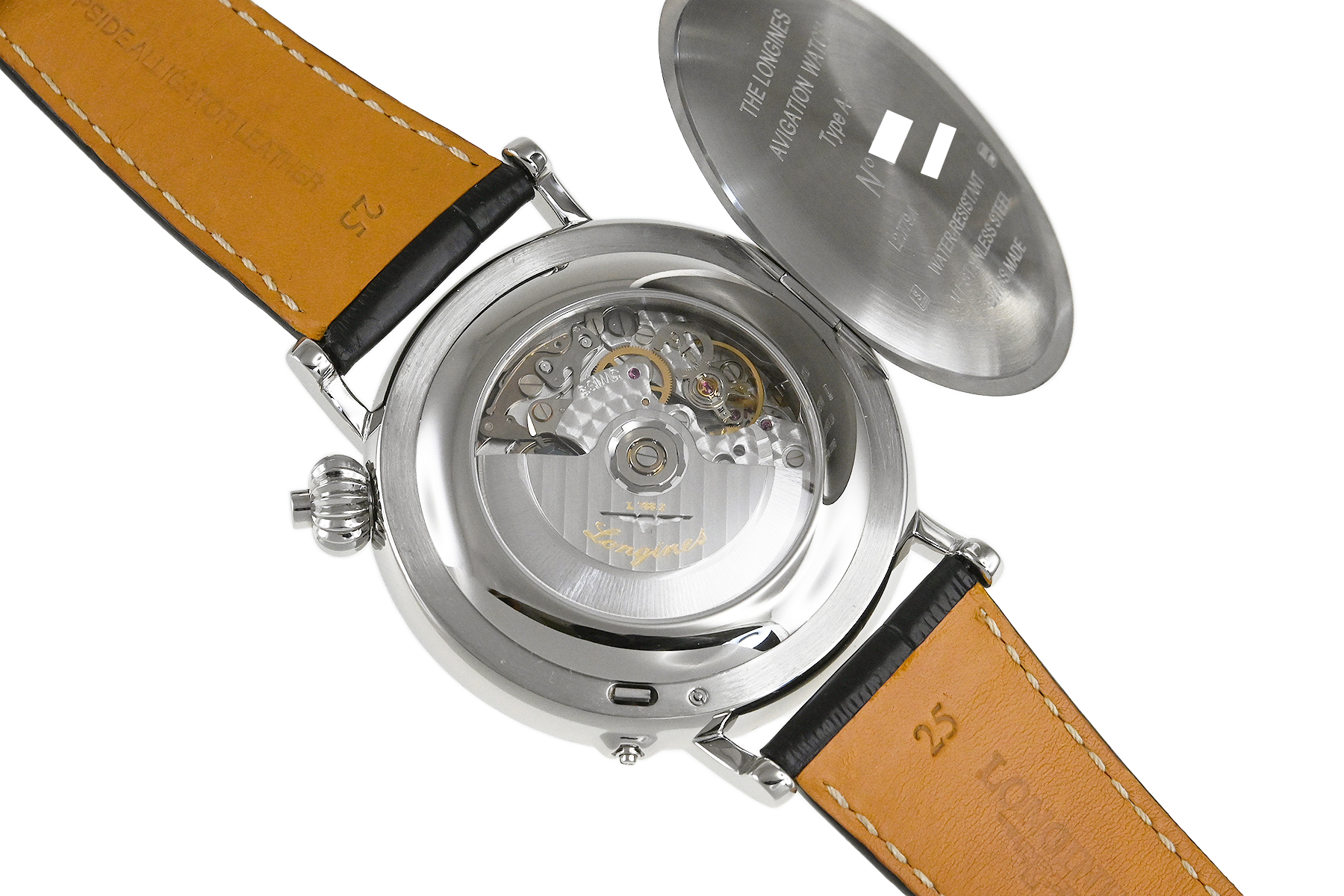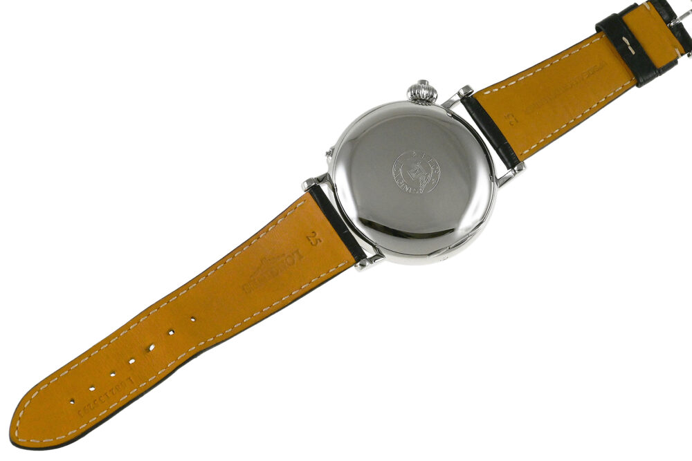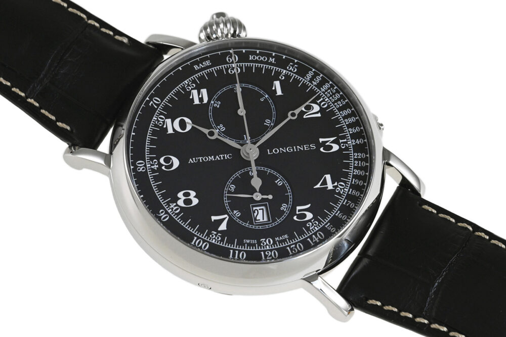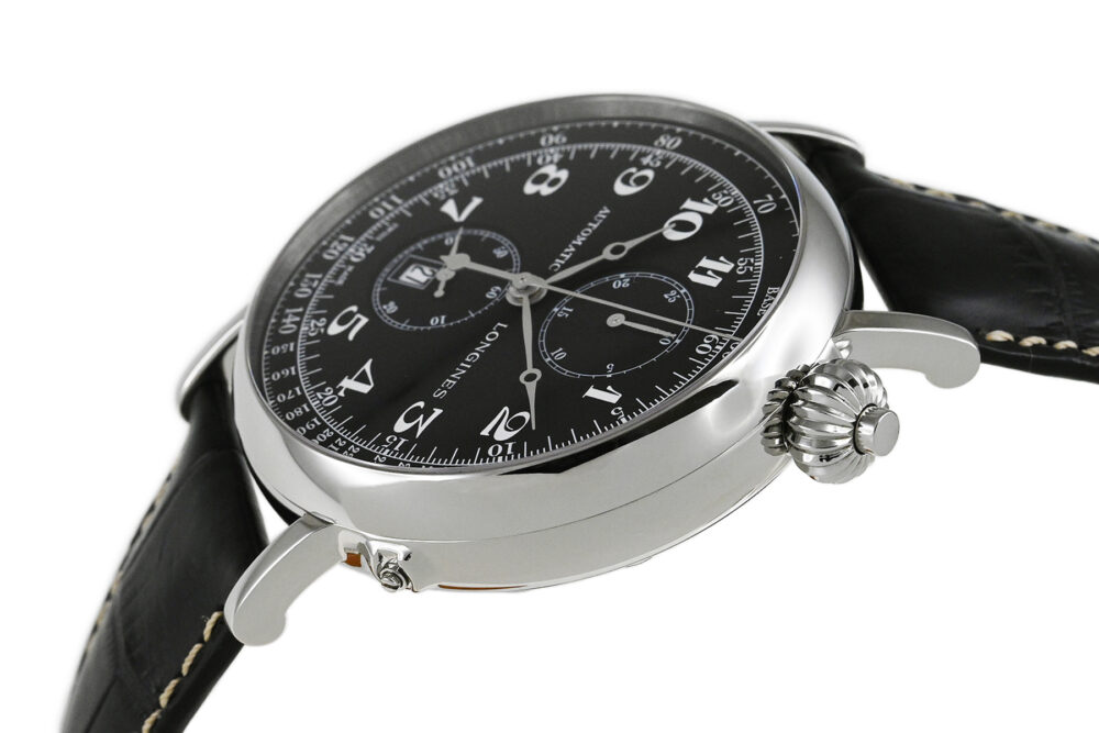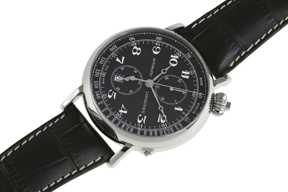 傑作や名作にインスピレーションを得て繰り出すロンジンのヘリテージコレクション。1930年代に開発されたモデルにインスパイアされた「ロンジン ヘリテージ アビゲーション ウォッチ Type A‒7」。ダイアルが45度に傾斜したデザインが特徴的、コラムホイールムーブメントL788を搭載したシングルプッシュクロノグラフモデルです。開閉式のハンターケース仕様となっています。使用に伴う若干の軽い小キズ・擦りキズはありますが、目立つ様な深いキズはありません。国内正規店にて購入品です。 |