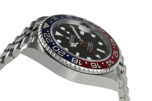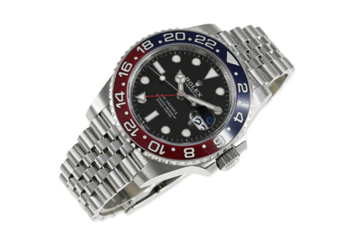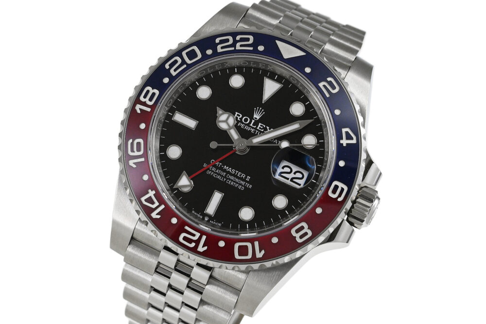 | コメント | 1955年に誕生した「GMTマスター」。進化したGMTマスターIIは回転ベゼルにより3箇所の時刻を知る事が出来ます。2019年から登場したRef.126710BLRO。両方向回転式、レッド/ブルーのセラミック製ベゼルが印象的、エレガントなジュビリーブレスレット仕様です。約70時間のパワーリザーブを備えたロレックス完全自社製造の高精度クロノメーターキャリバー3285を搭載しています。裏蓋など少々の軽い擦りキズはありますが目立つ様なキズはありません。 |