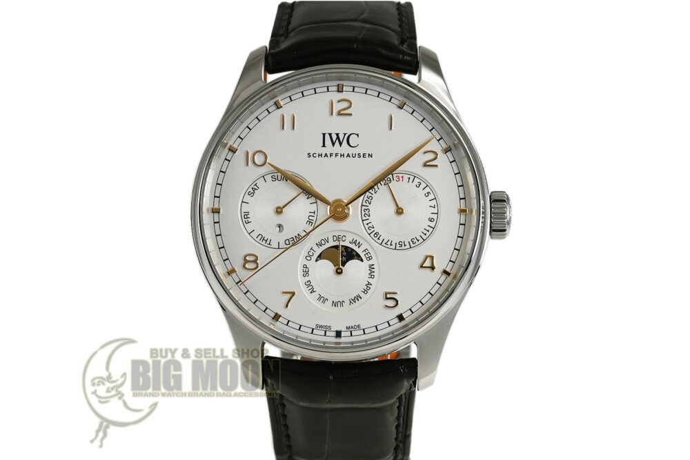 | コメント | IWCの中で最も歴史が長く、端正で優雅な印象のデザインが魅力の人気コレクション「ポルトギーゼ」。日、曜日、月、閏年、永久ムーンフェイズを表示する永久カレンダーモデルです。IWC自社製キャリバー82650を搭載。少々の軽い擦りキズはありますが目立つ様なキズはありません。国内正規店にて購入品です。2025年12月に正規修理サービスにてカレンダー調整をしています。 |