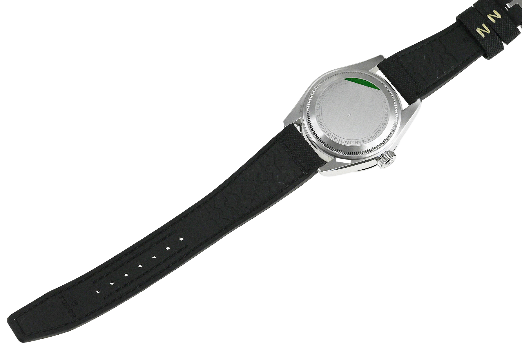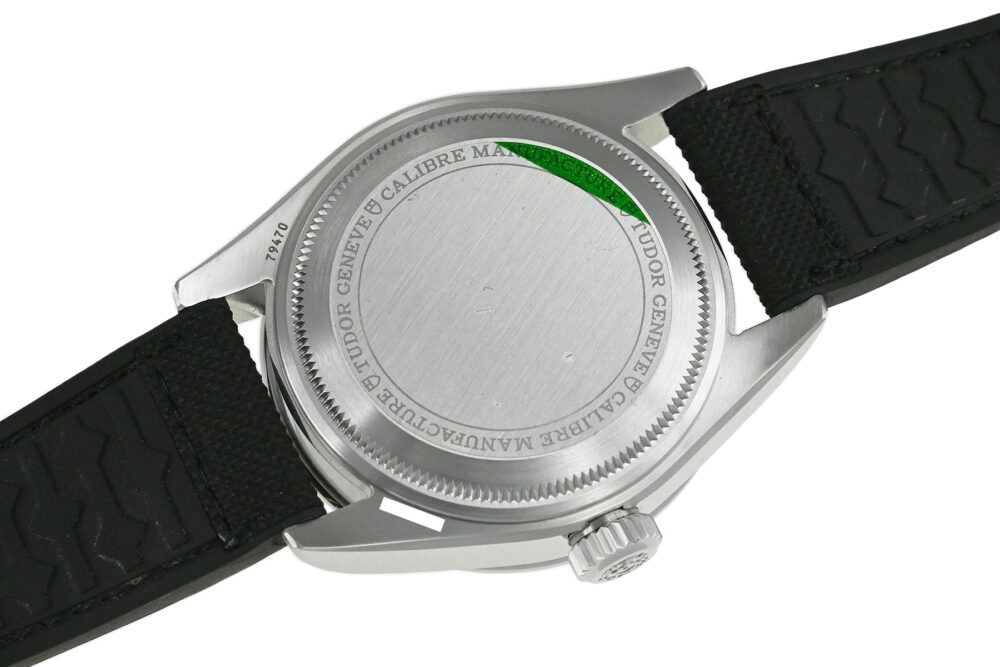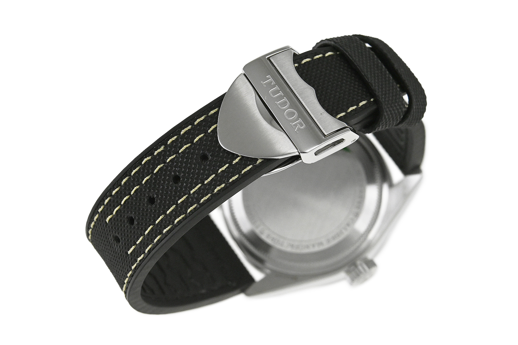 | コメント | ロレックスの兄弟ブランド「チューダー」。GMT機能を搭載した「ブラックベイ プロ」自動巻モデルです。イカ針などヴィンテージテイストなデザインが魅力的、ラバーとファブリックによるハイブリッドストラップ採用です。マニュファクチュール キャリバーMT5652を搭載。ラグ裏側(4カ所)とラグおもて側5時方向に少々の小キズはありますがその他目立つ様なキズはありません。 |