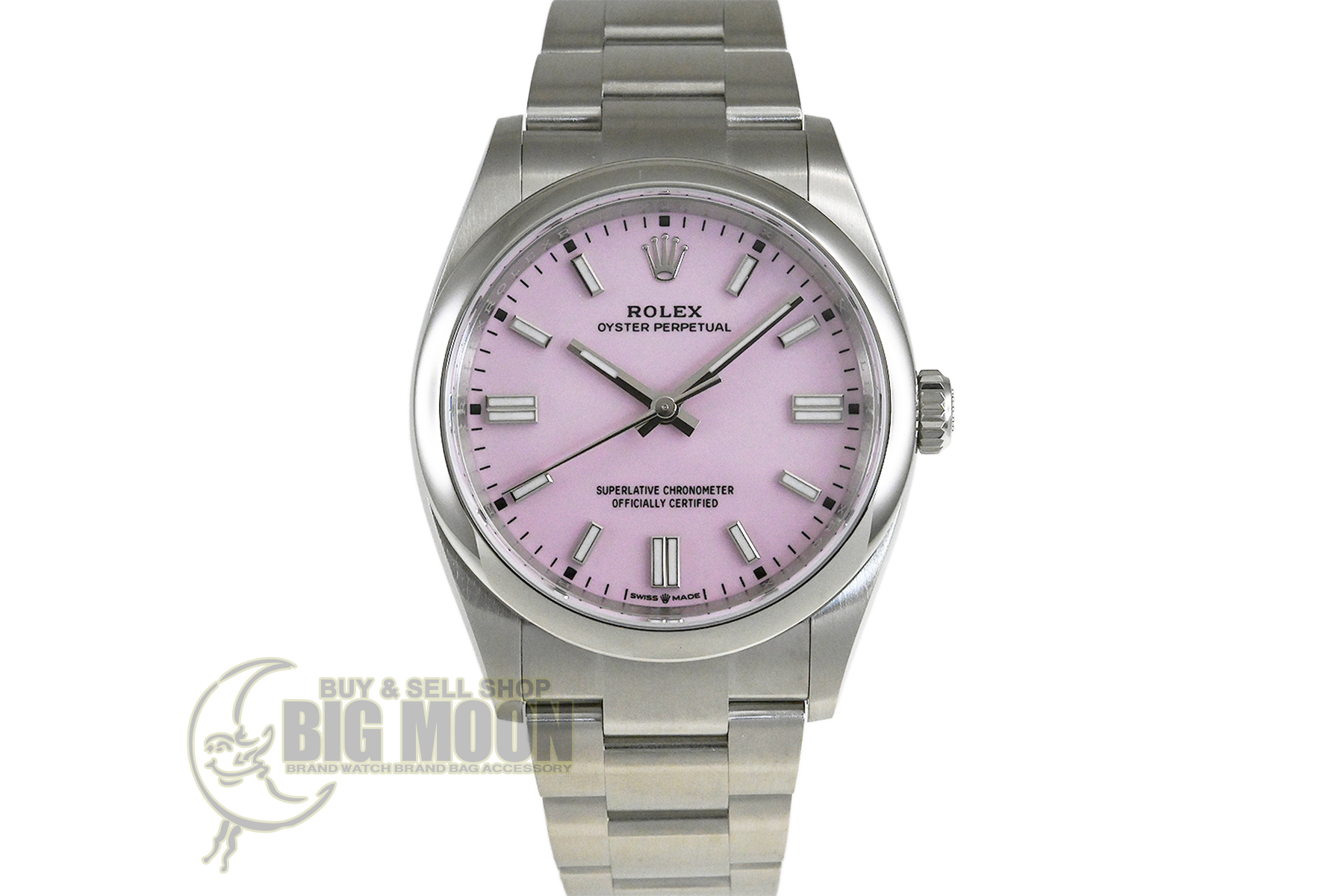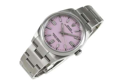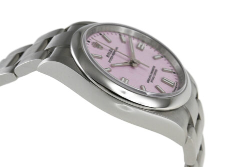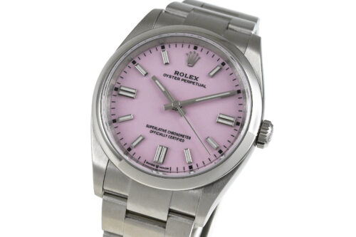 コメント カレンダーのないシンプルな機能性と36mmの小振りなサイズ感が人気の3針モデル「Ref.126000」です。キャンディピンクダイアルが印象的、ロレックスによる完全自社製造キャリバー3230を搭載しています。裏蓋など極薄っすらとした少々の軽い擦りキズはありますが目立つ様なキズはありません。