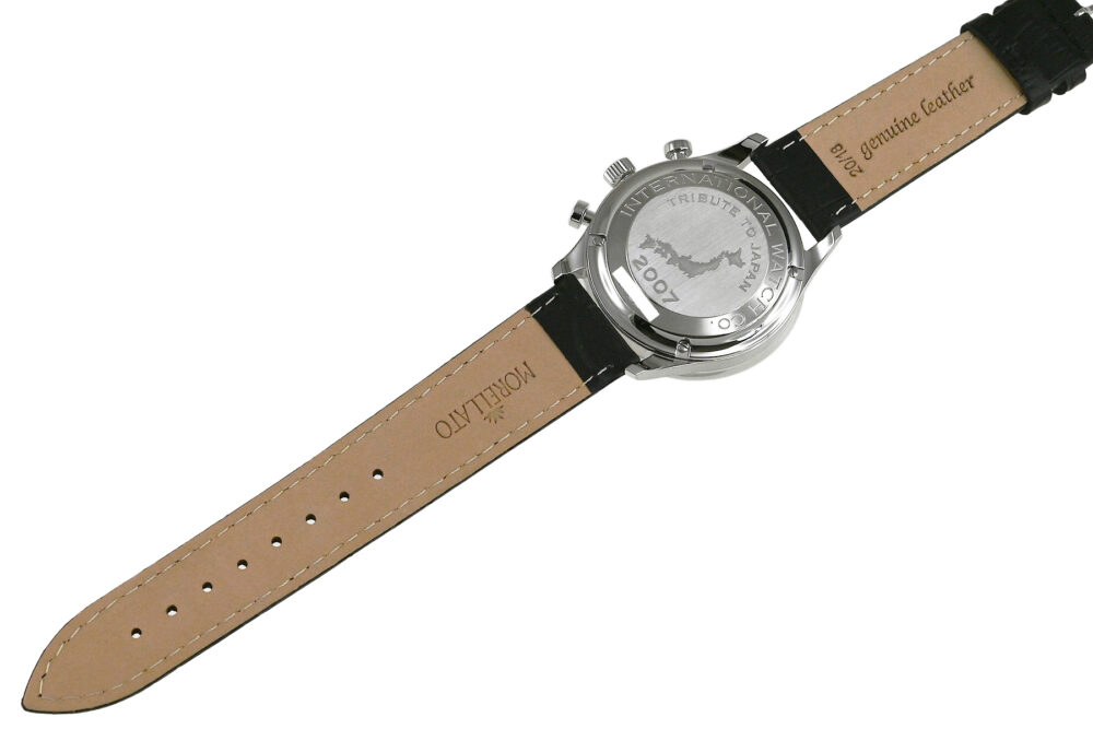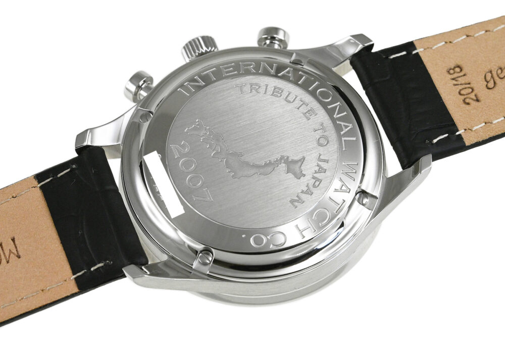 | コメント | IWCの中で最も歴史が長く、端正で優雅な印象のデザインが特徴的な人気コレクション「ポルトギーゼ」。1/4秒単位の計測が可能なクロノグラフを搭載、上品で洗練されたデザインが魅力的です。2007年に日本限定モデルとして発売されたシルバー/ブラックインダイアルの人気モデルです。裏蓋には日本地図と「TRIBUTE TO JAPAN」の刻印があります。少々の擦りキズはありますが目立つ様なキズはありません。2023年8月に正規修理サービスにてコンプリートサービスをしています。 |