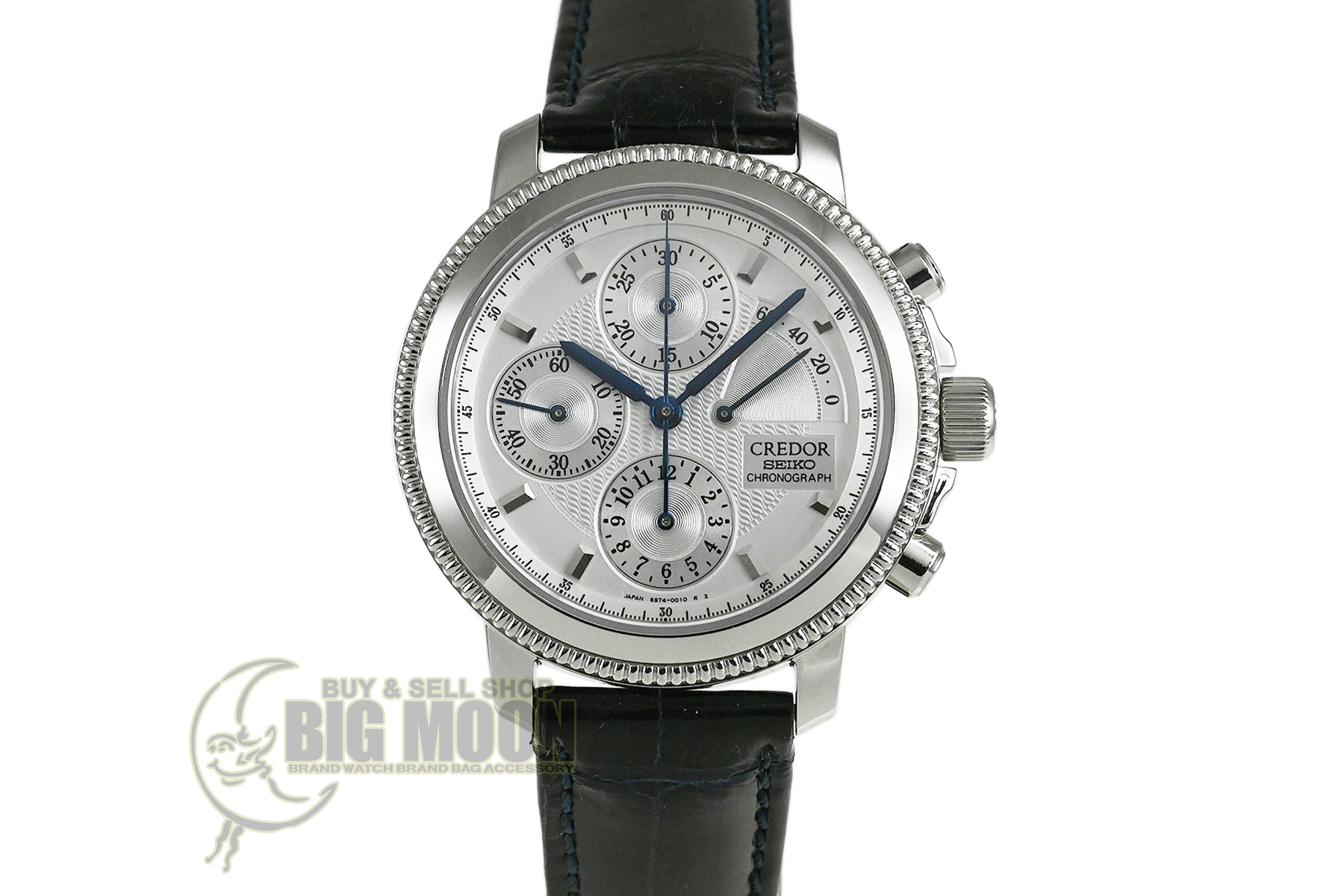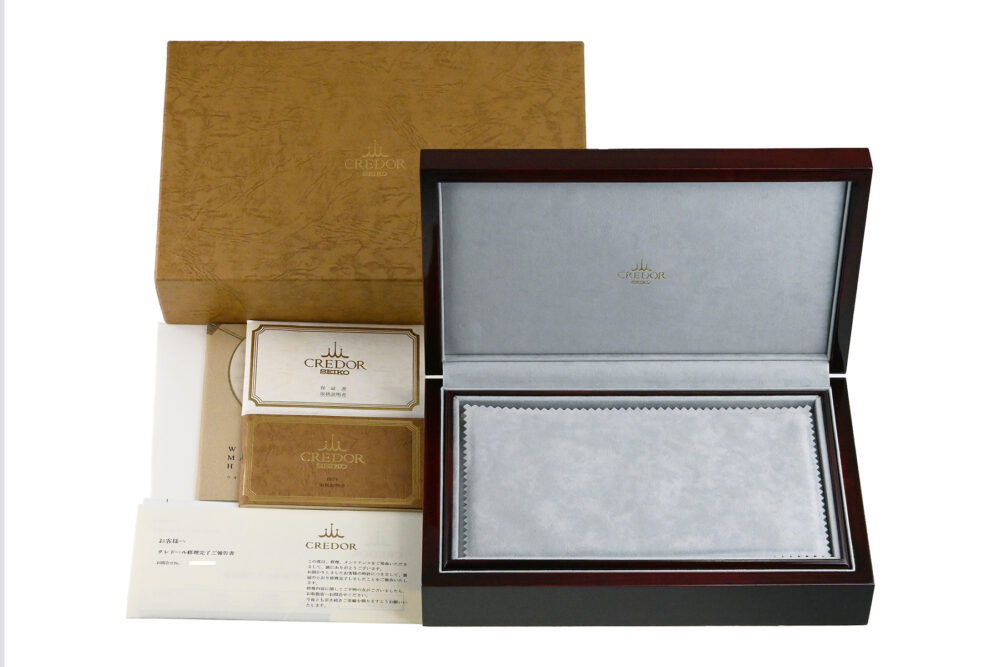 | コメント | 1974年に誕生した高級ライン「クレドール」。プラチナPT950を採用した自動巻クロノグラフモデルです。2時位置にパワーリザーブインジケーターを装備、裏蓋シースルーバックとなっています。少々の細かな軽い擦りキズはありますが目立つ様な深いキズはありません。2026年3月に正規修理サービスにてオーバーホールをしています。 |