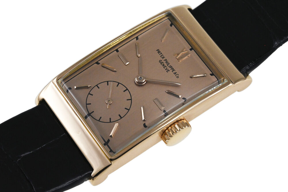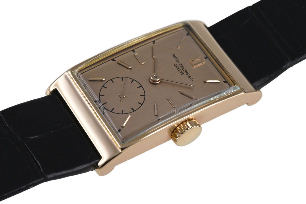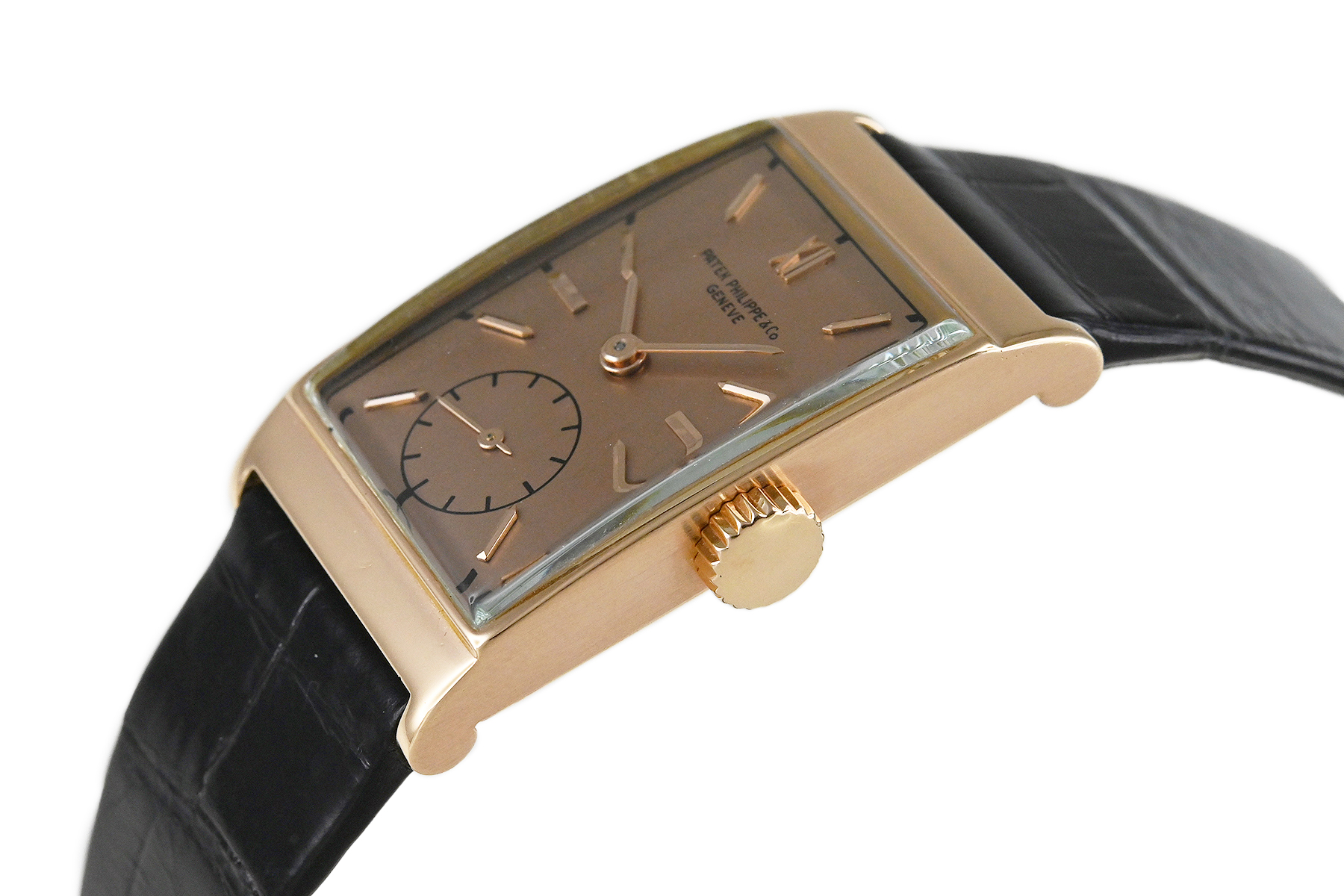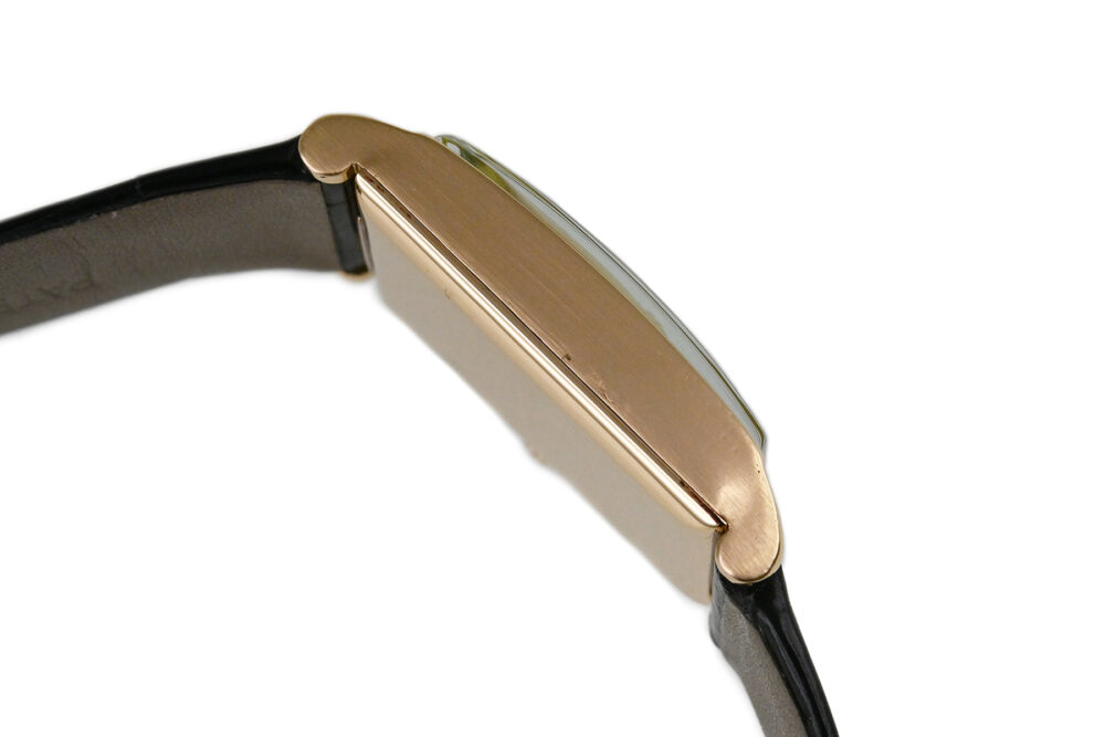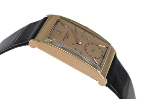| コメント | 1934年~67年頃まで生産されたロングセラー角型傑作ムーブメントCal.9-90を搭載した、K18ローズゴールドの上品なレクタンギュラーモデルです。3時側ケースサイド4-5時方向のホールマークがポリッシュにより薄くなっており、9時側ケースサイドエッジ部分にあてキズがあります。 |