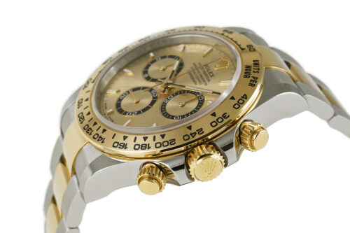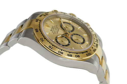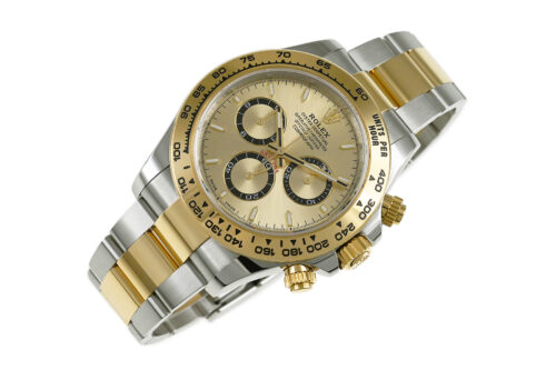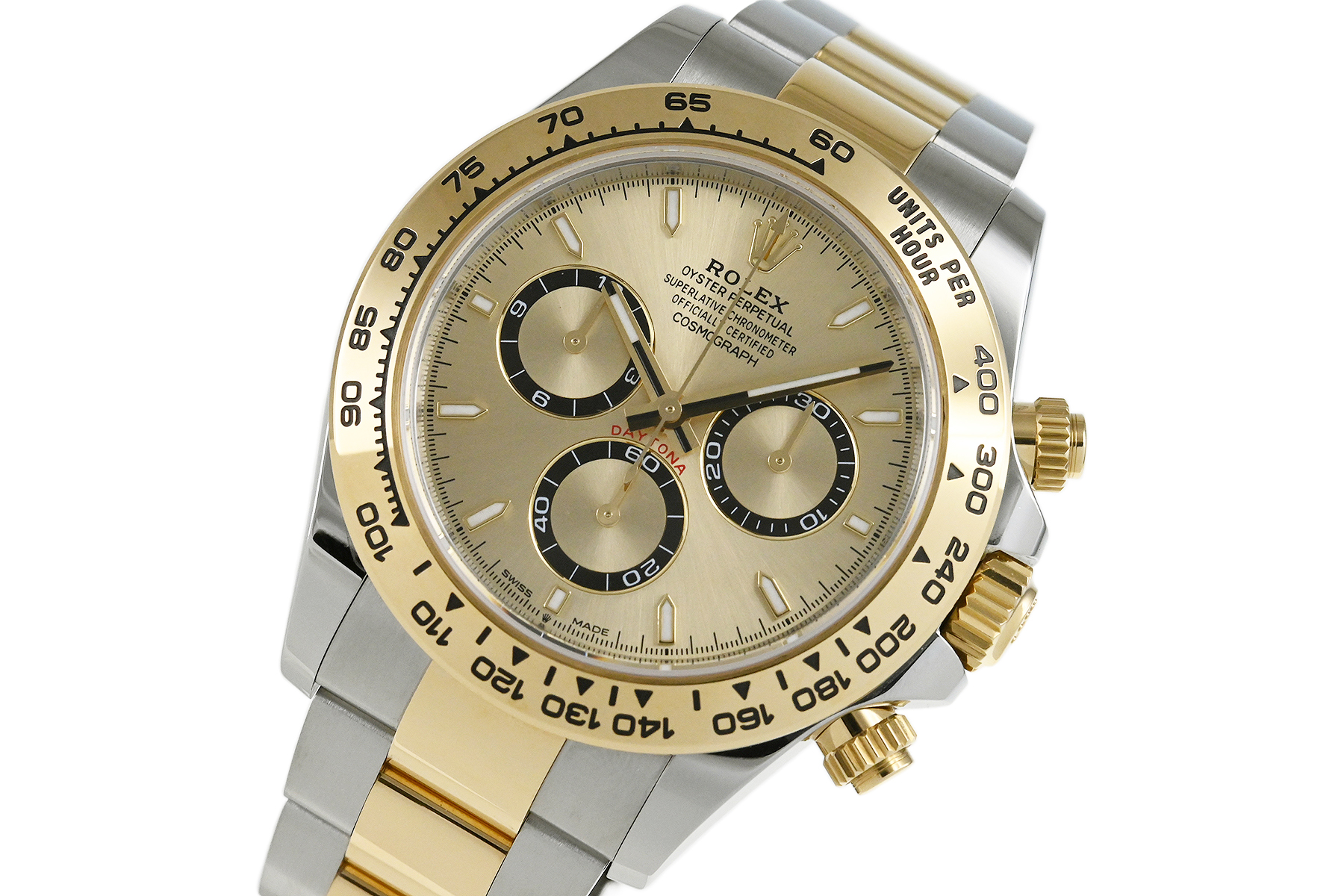 コメント 1963年に誕生した人気スポーツ・ロレックス「コスモグラフ デイトナ」。2023年にモデルチェンジして登場した「Ref.126503」、K18イエローゴールドとステンレスの華やかなコンビモデルです。自社開発クロノグラフムーブメントCal.4131を搭載しています。若干の細かな軽い擦りキズはありますが目立つ様な深いキズはありません。