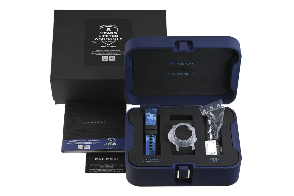 | 付属品 | 箱・保証書(2022.5)・小冊子・純正ラバーベルト(ブルーカモフラージュ:未使用)・専用工具 |