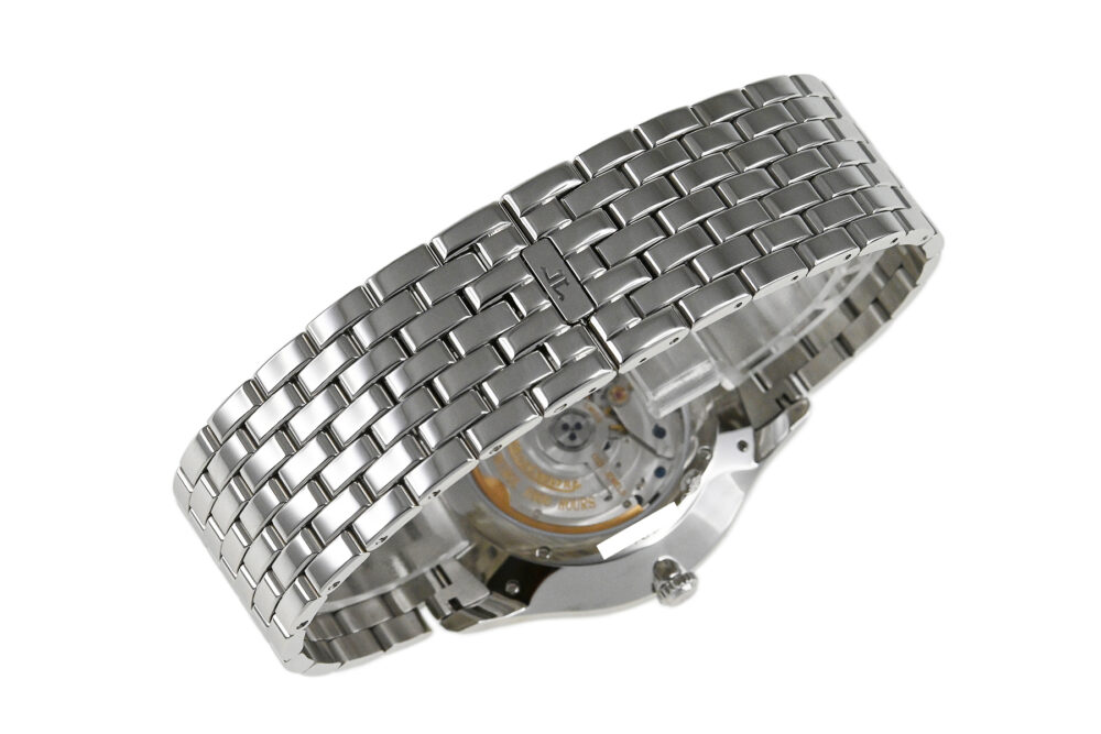 | コメント | マニュファクチュール (自社一貫生産) ブランド「ジャガールクルト」。クラシックで洗練された、シンプルなデザインが魅力のマスター・ウルトラスリムコレクション。エレガントで上品な薄型ラウンドケース、スモールセコンドを備えたキレイなシルバーダイアルが素敵です。少々の軽い擦りキズはありますが目立つ様なキズはありません。2024年1月に正規修理サービスにてコンプリートサービスをしています。付属の革ベルトは多少の使用感(擦れ、巻き癖、裏面の汚れ)はありますが酷い傷みはありません。 |