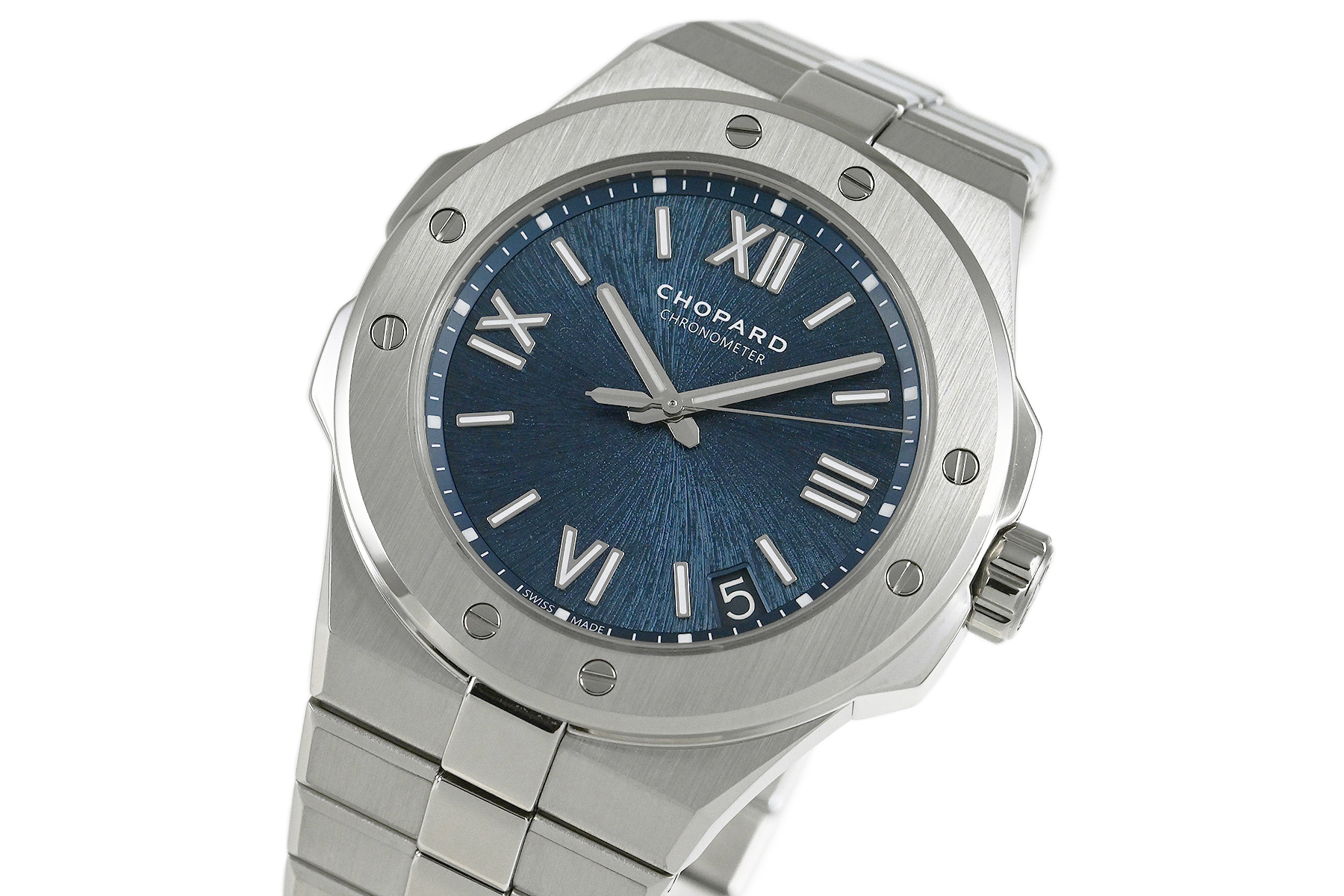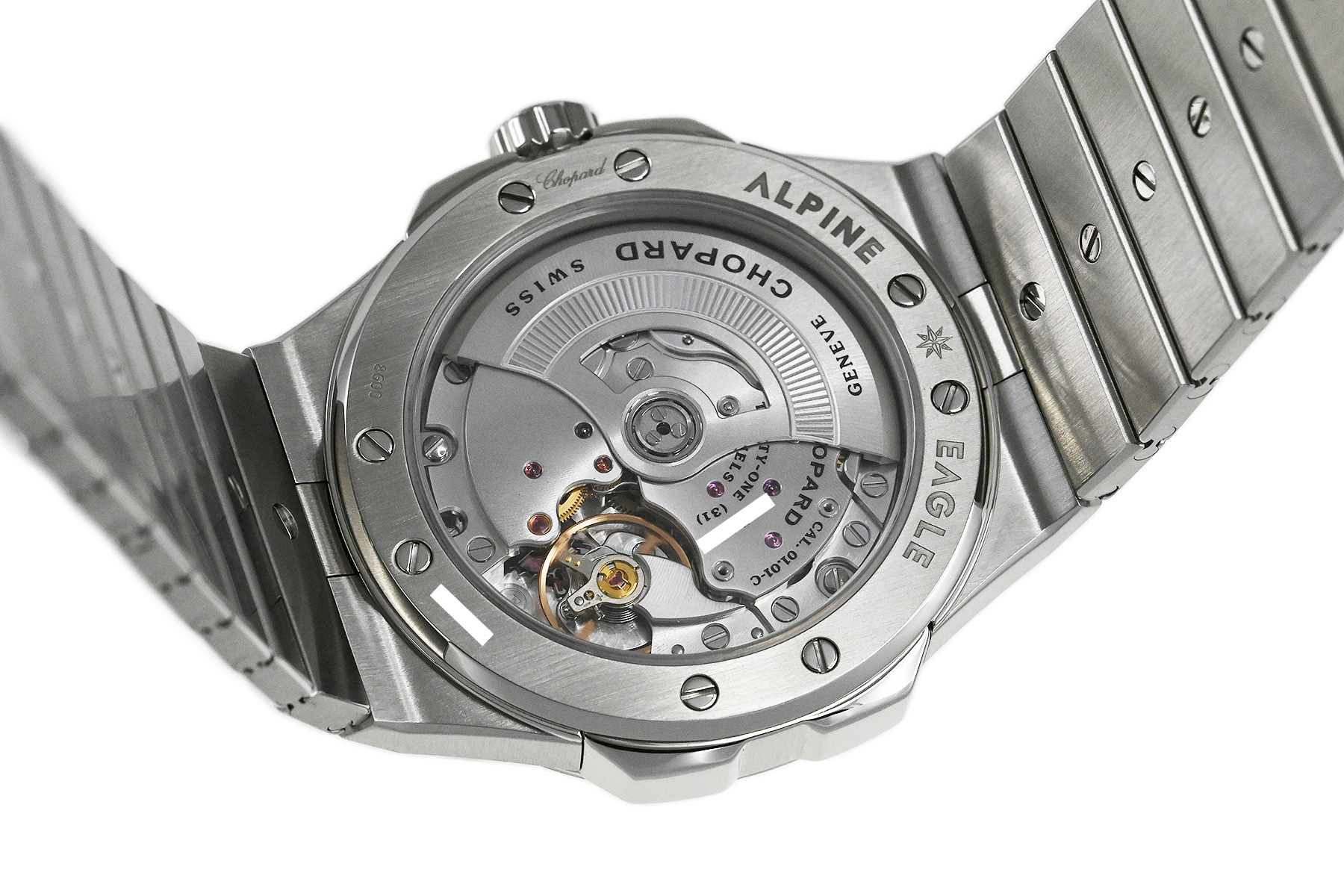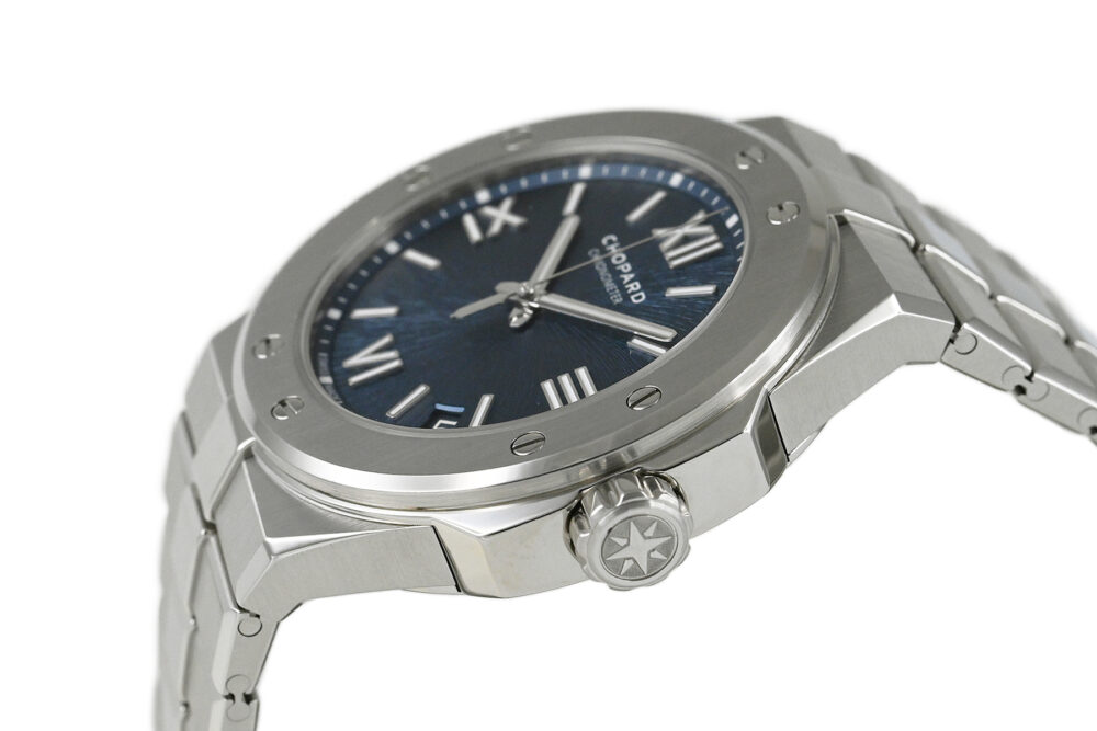 | コメント | 自社一貫生産する高級時計メーカー(マニュファクチュール)ショパール。アルプスと威厳あるワシの力強さにインスピレーションを得たコレクション「アルパイン イーグル」自動巻モデルです。ワシの虹彩をイメージさせるデザインが施されたブルーダイアルが印象的、スポーティーでオシャレなモデルです。COSC認定クロノメーター キャリバー01.01-Cを搭載。僅かな軽い擦りキズはありますが目立つ様なキズはありません。 |