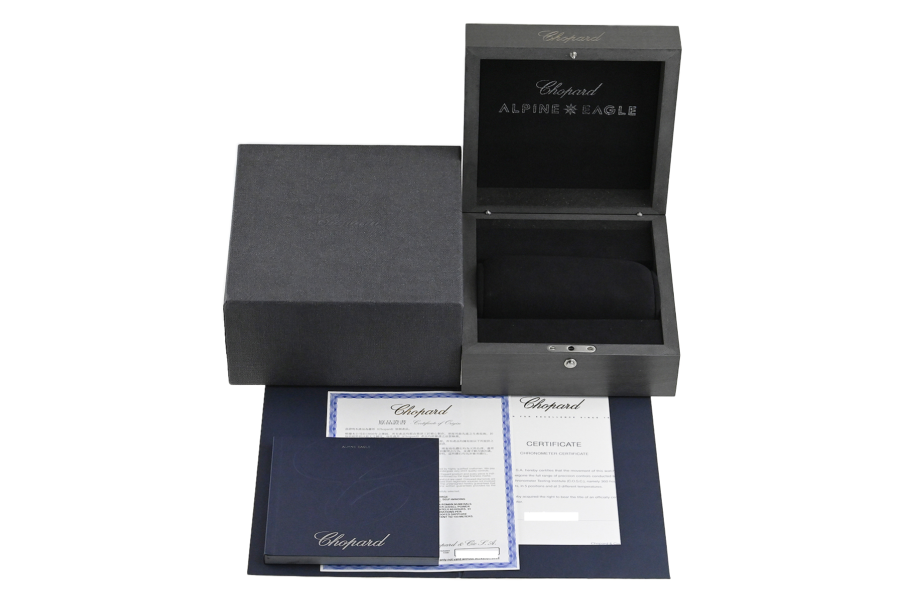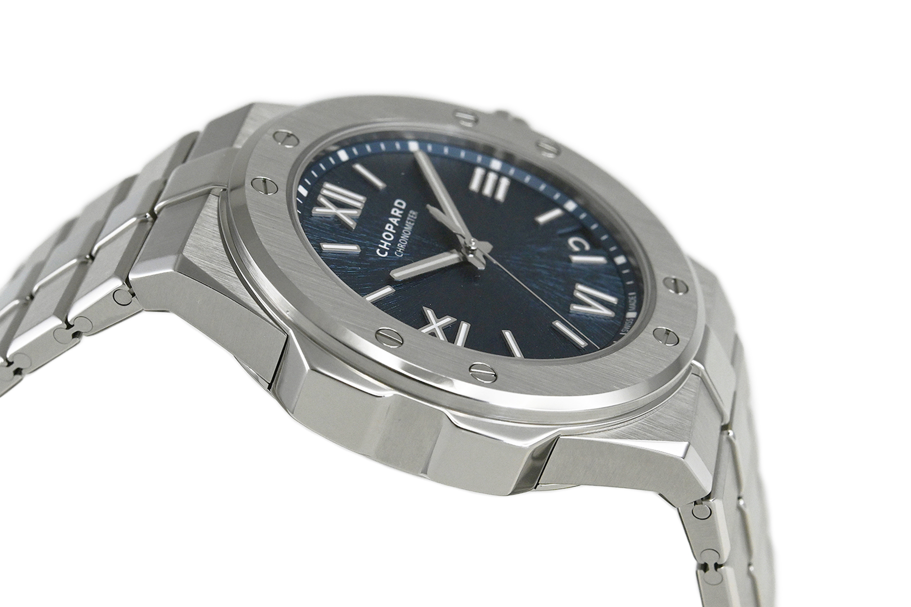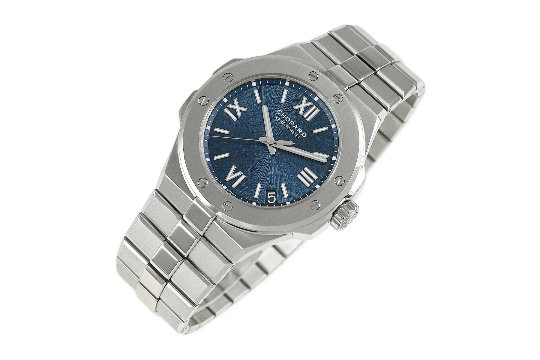 | コメント | 自社一貫生産する高級時計メーカー(マニュファクチュール)ショパール。アルプスと威厳あるワシの力強さにインスピレーションを得たコレクション「アルパイン イーグル」自動巻モデルです。ワシの虹彩をイメージさせるデザインが施されたブルーダイアルが印象的、スポーティーでオシャレなモデルです。COSC認定クロノメーター キャリバー01.01-Cを搭載。僅かな軽い擦りキズはありますが目立つ様なキズはありません。 |