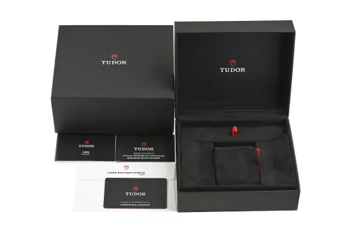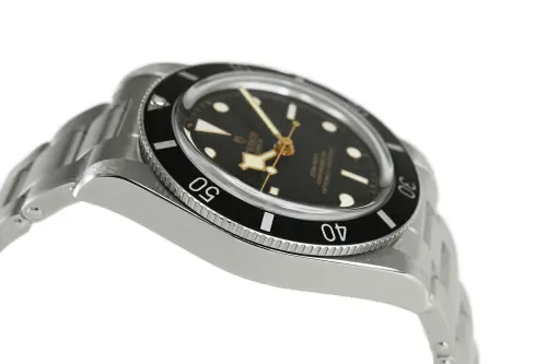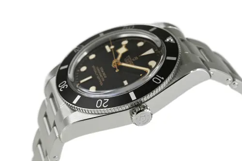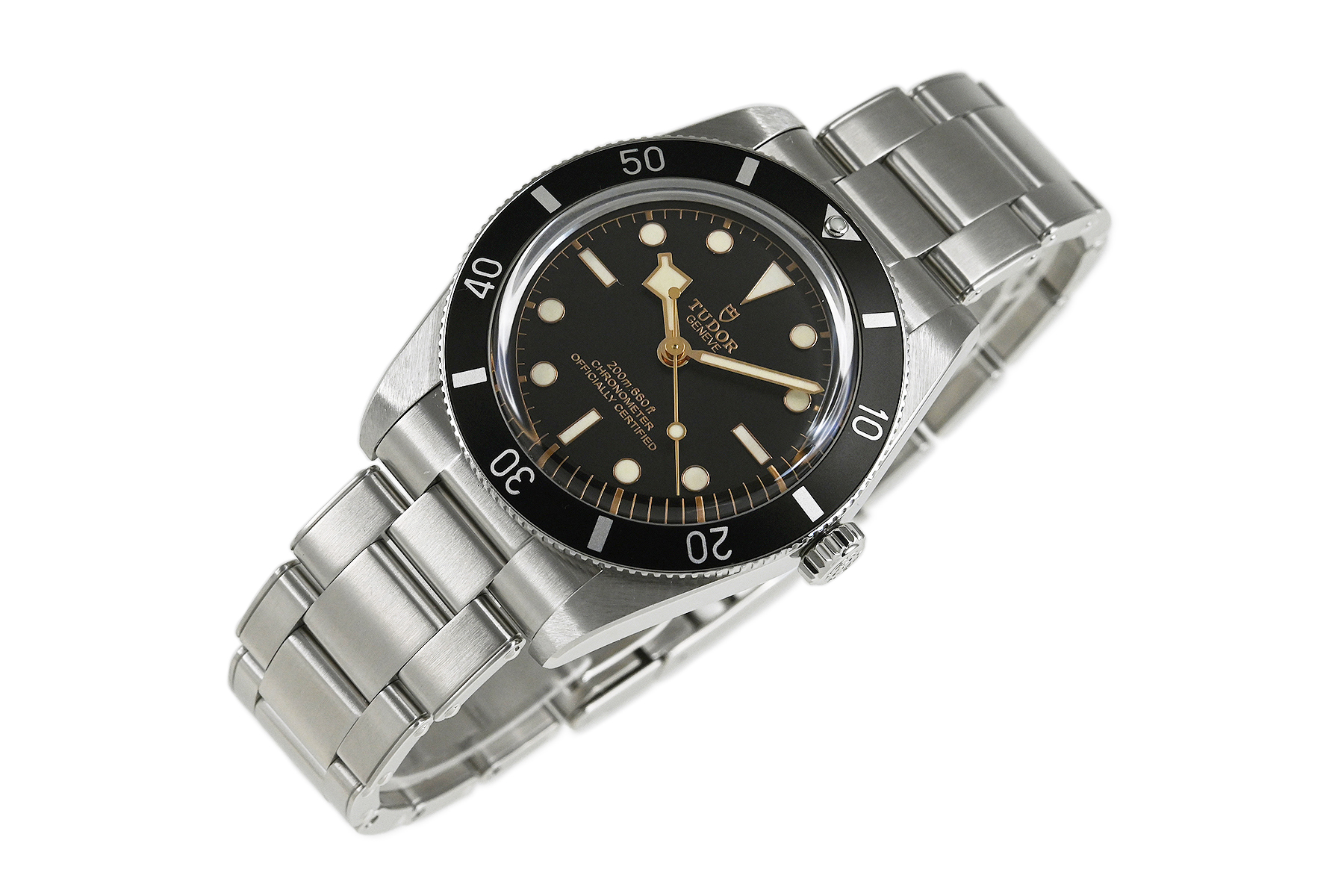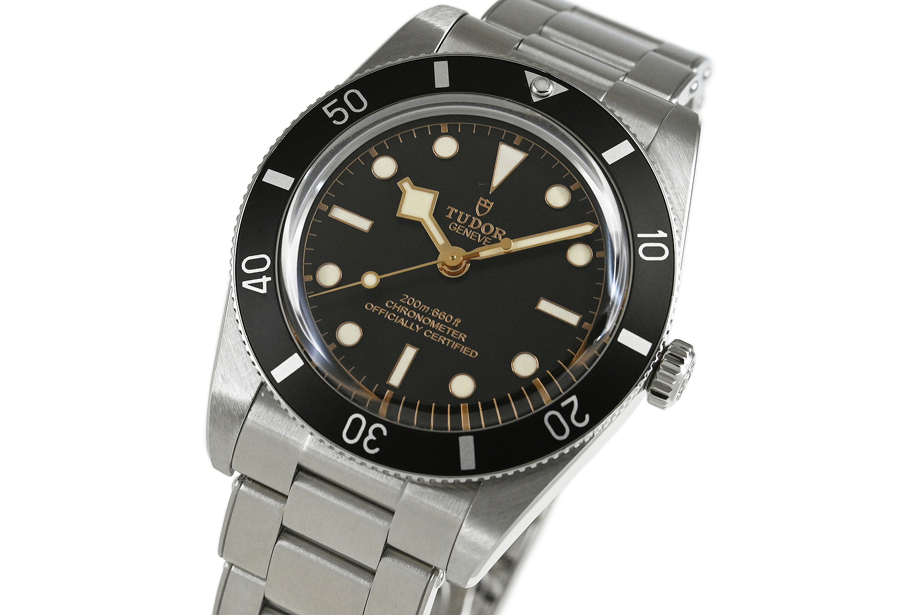| コメント | ロレックスの兄弟ブランド「チューダー」。70年代の人気サブマリーナモデル通称「イカサブ」を現代版に復刻した「ブラックベイ」、小振りな37mmサイズのモデルです。リベットブレスのデザインやイカ針が魅力的です。マニュファクチュール キャリバーMT5400を搭載しています。裏蓋など使用に伴う若干の小キズ、軽い擦りキズがあります。目立つ様な大きなキズはありません。 |