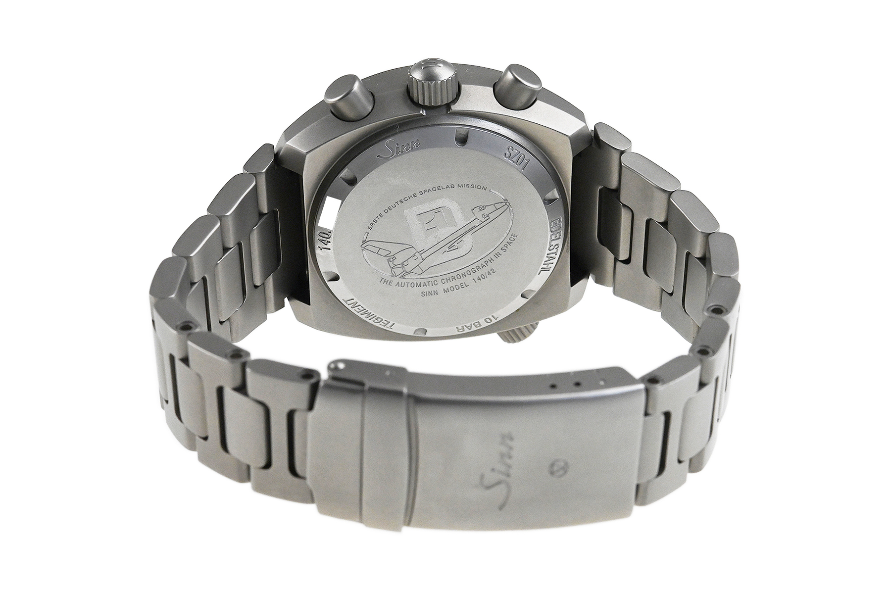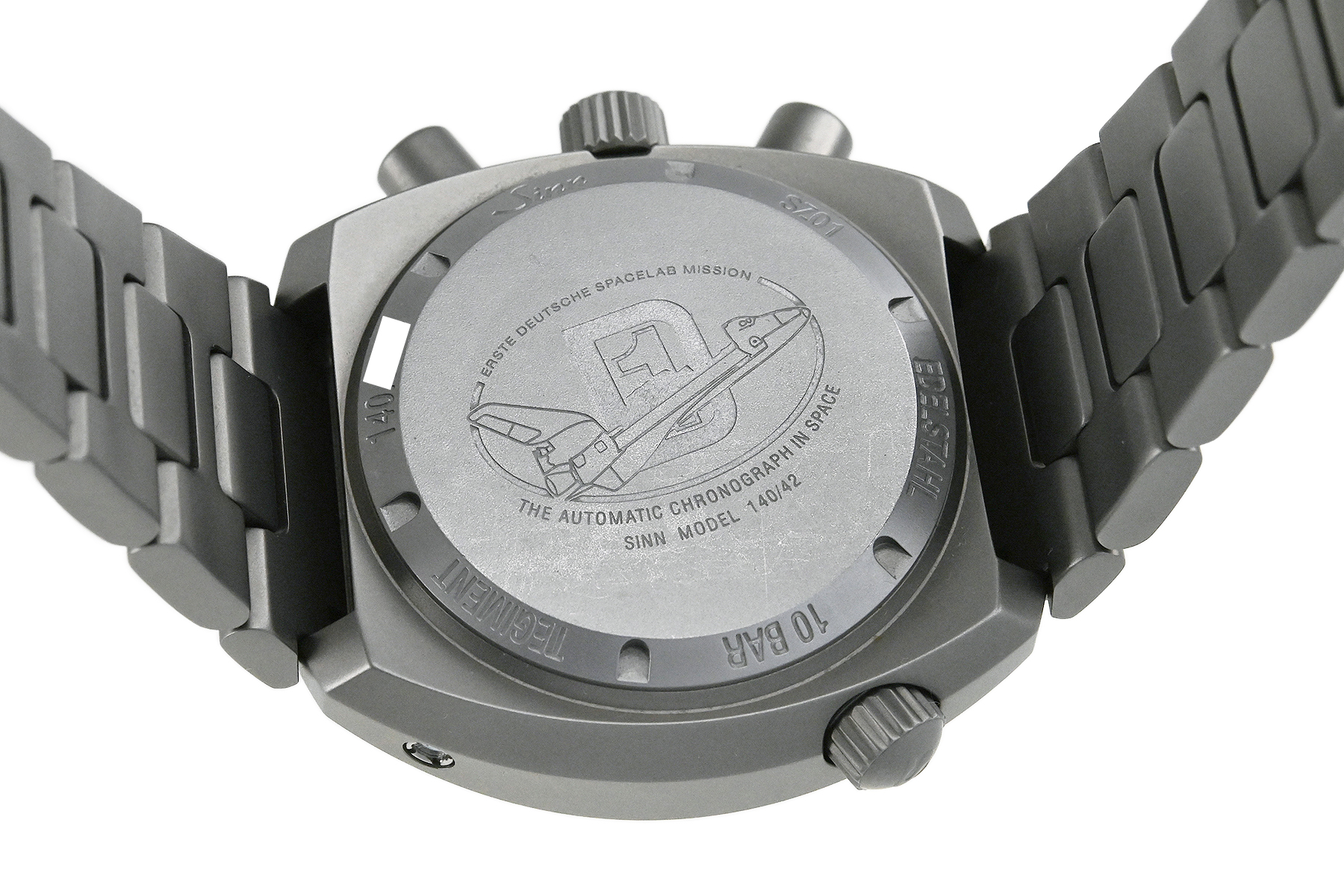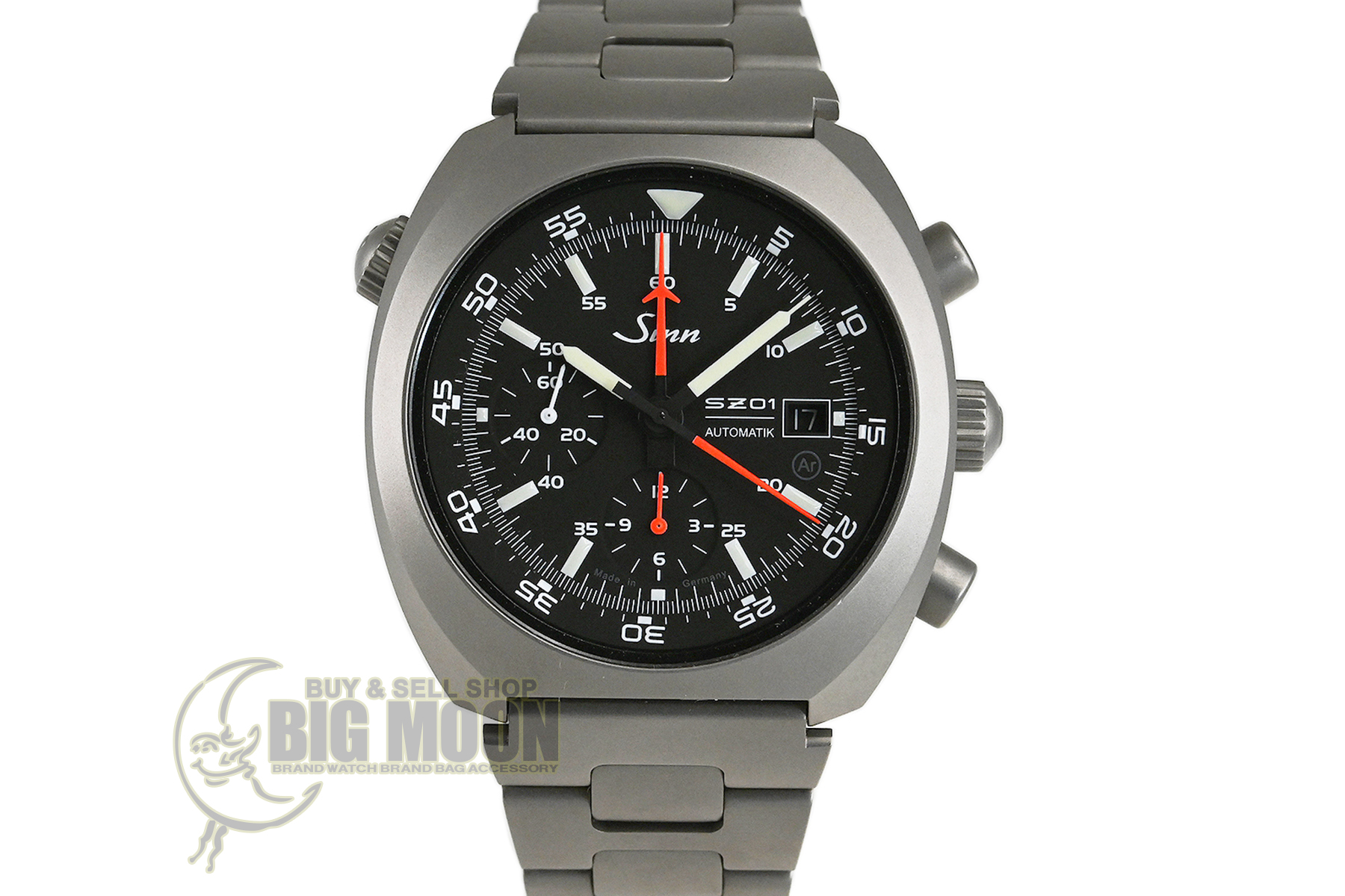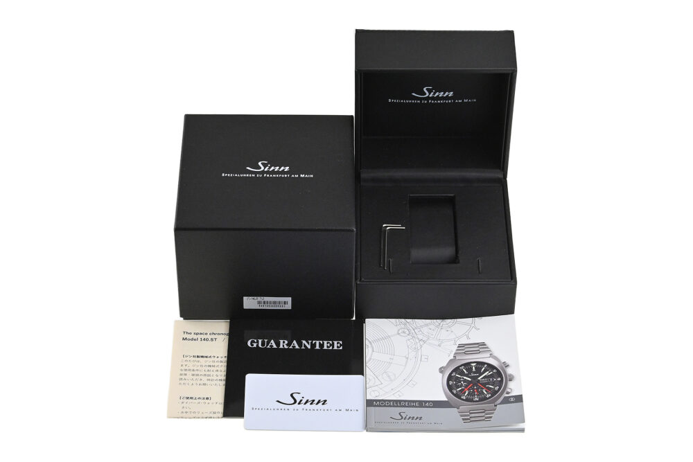 | コメント | ジンの伝説的スペース・クロノグラフ140を再設計し新しく誕生したクロノグラフモデル「140.ST」。耐傷性の高いテギメント加工が施されたサンドマット仕上げのステンレスケース・ブレスが特徴的、センター配置の60分積算計が搭載されたジンキャリバーSZ01を搭載、耐傷性の高いテギメント加工、Arドライテクノロジーを搭載しています。ケースエッジ部分に僅かな小キズ、裏蓋など使用に伴う多少の擦りキズはありますが目立つ様な深いキズはありません。国内正規店にて購入品です。 |