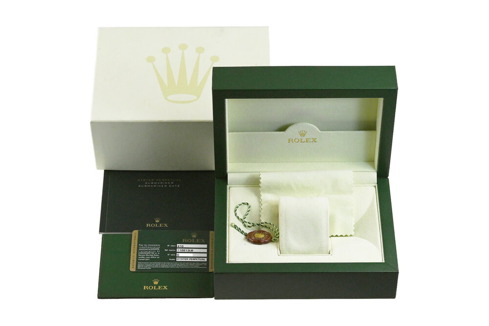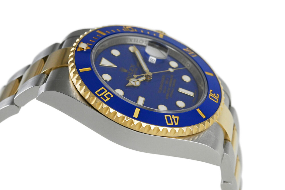 | コメント | 1953年に世界初の100mの防水性をもつ時計として誕生した「サブマリーナー」。キレイなブルーダイアルが魅力的な華やかなコンビモデル「Ref.116613LB」です。2009年から2020年頃まで製造されたモデルです。セラミックベゼル、グライドロッククラスプ機能搭載ブレスを採用、ロレックス完全自社製造の高精度クロノメーターキャリバー3135を搭載しています。使用に伴う若干の軽い小キズ・擦りキズはありますが目立つ様な深いキズはありません。 |