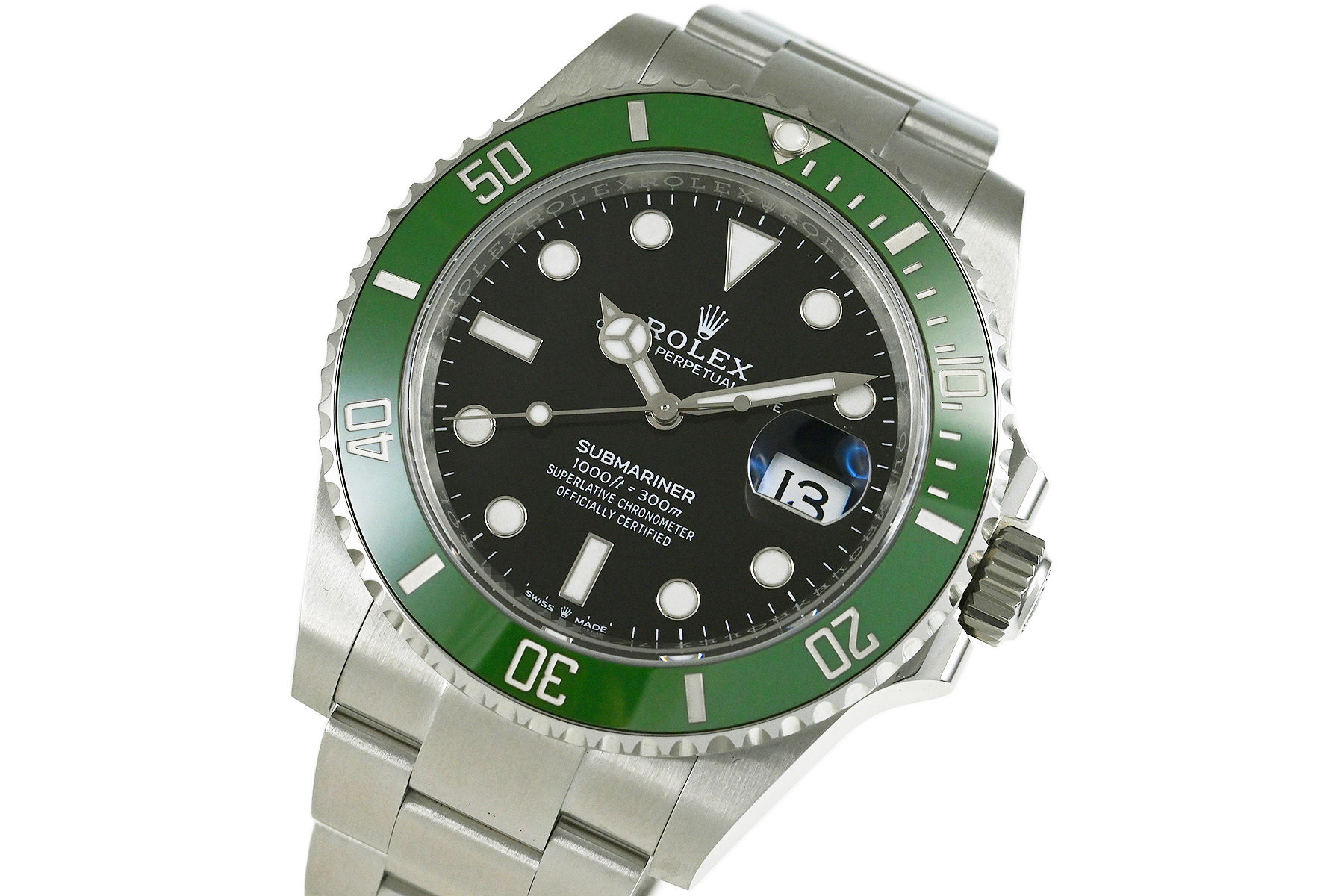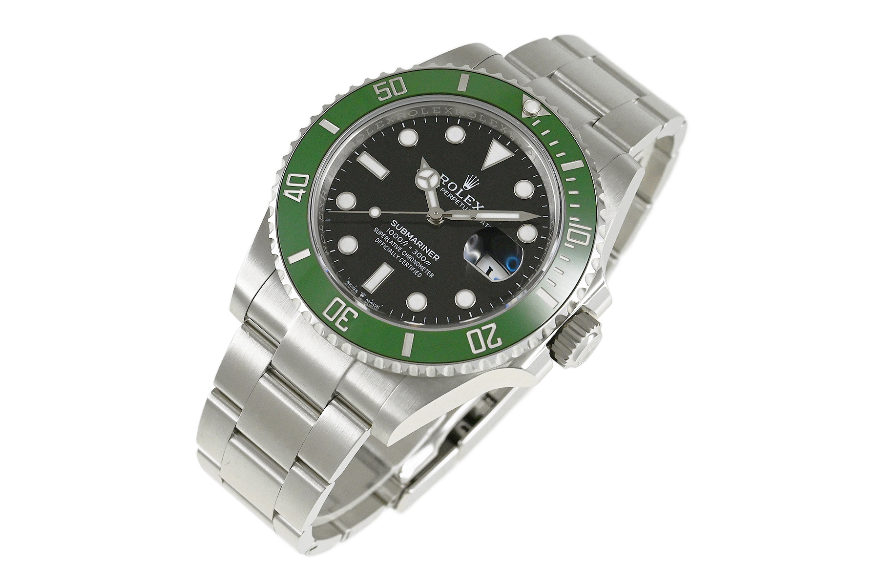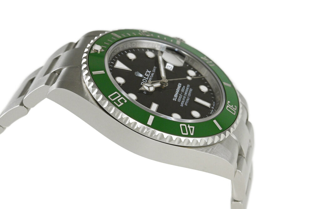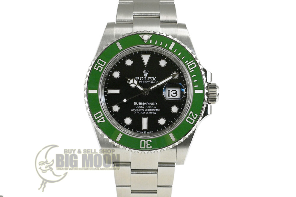 | コメント | 1953年に世界初の100mの防水性をもつ時計として誕生した「サブマリーナー」。2020年に登場、グリーンカラーのセラクロム逆回転防止ベゼルを備えた「Ref.126610LV」です。ロレックス完全自社製造のキャリバー3235を搭載しています。少々の軽い擦りキズはありますが目立つ様なキズはありません。 |