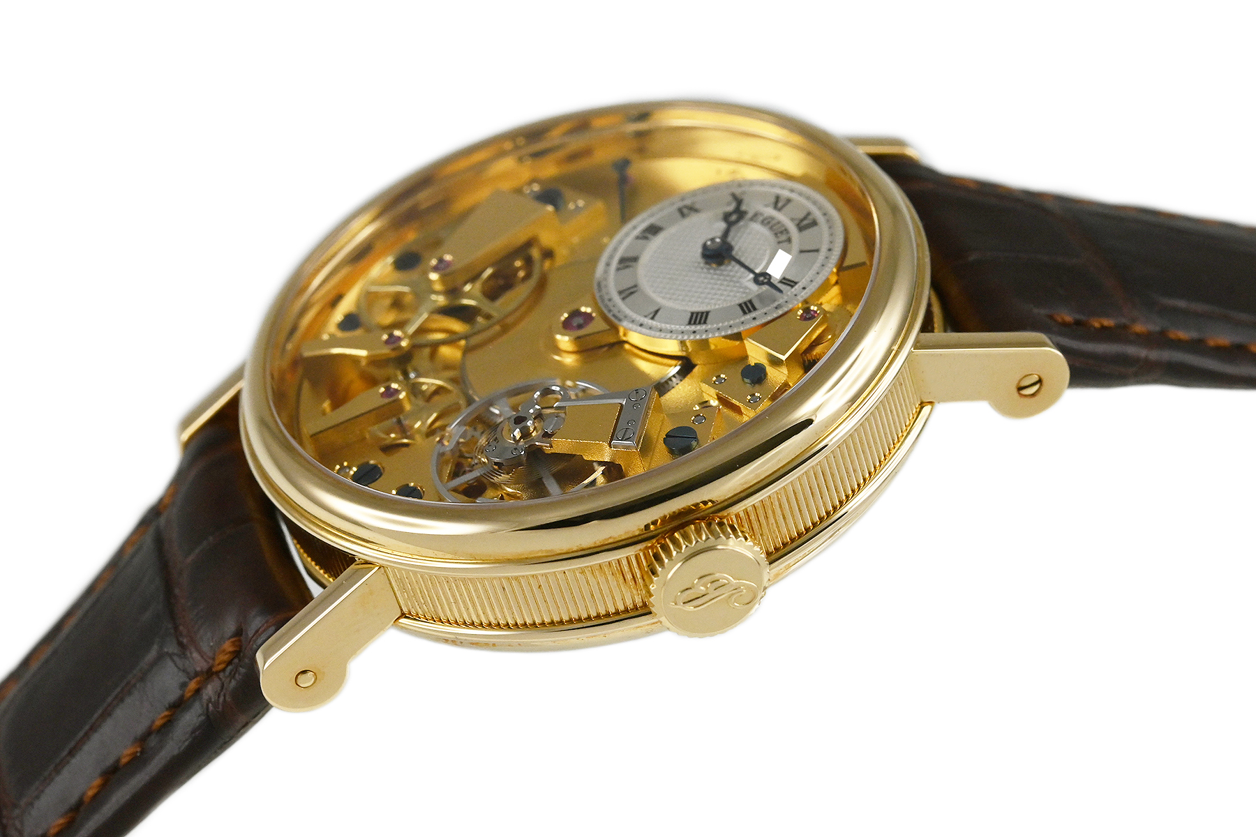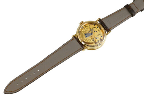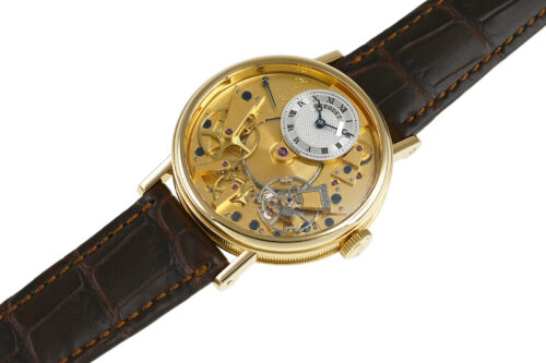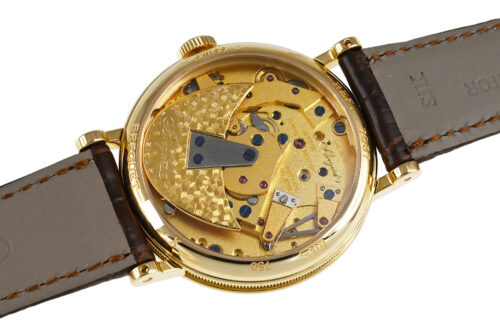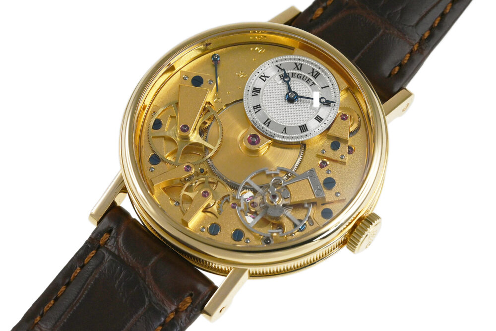 18世紀の懐中時計をモチーフにしたモデル「クラシック・トラディション」、自動巻モデルです。ブレゲが開発した耐衝撃機構「パラシュート」など、当時の技術を取入れつつ斬新なデザインで現代に復活させています。自動巻き式Cal.505SRを搭載。少々の細かな軽い擦りキズはありますが目立つ様な深いキズはありません。国内正規店にて購入品です。 |