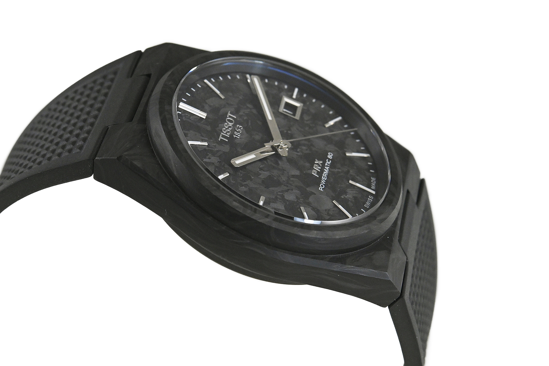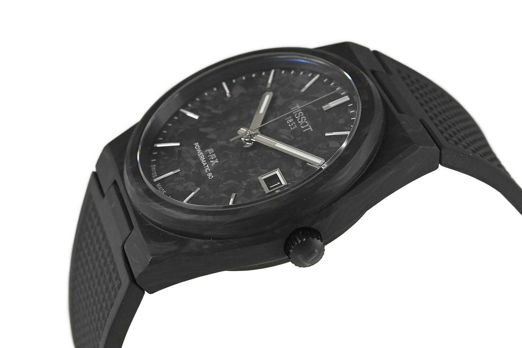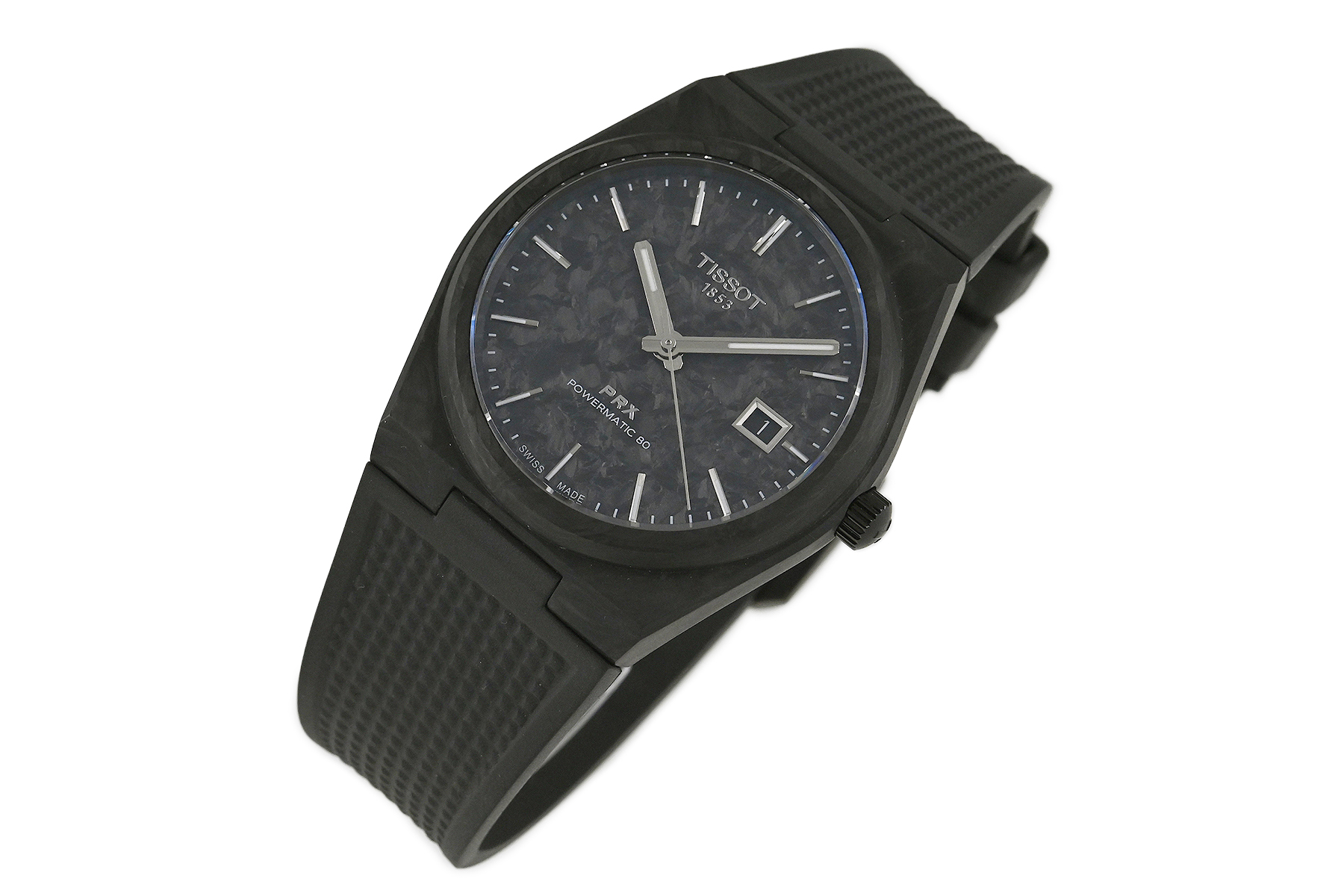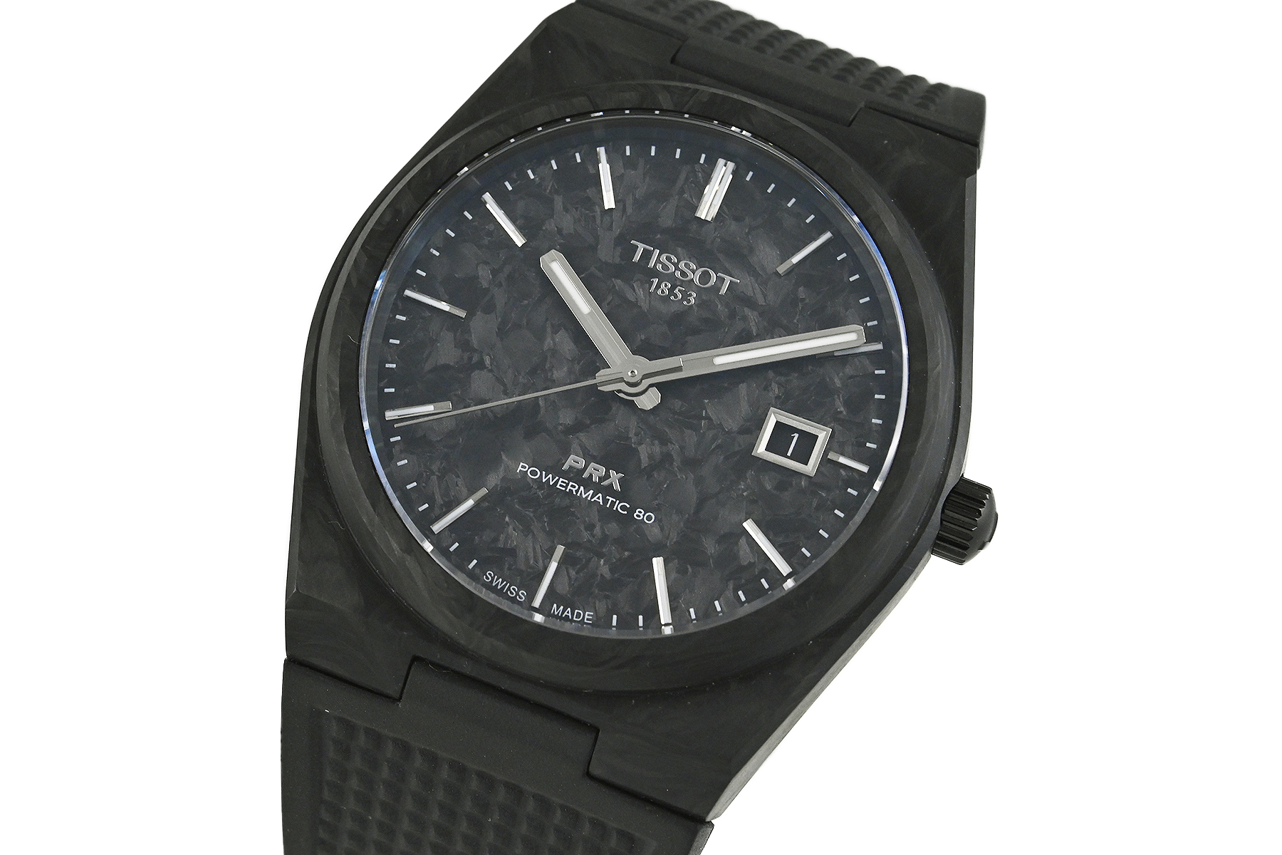 コメント 1853年にスイスにて創業した歴史あるウォッチブランド「TISSOT ティソ」。1978年に発表されたブランドの象徴的なデザインをベースにしたPRX コレクションです。フォージド・カーボン製ケース・ダイアルを採用しています。特に目立つ様なキズはありません。