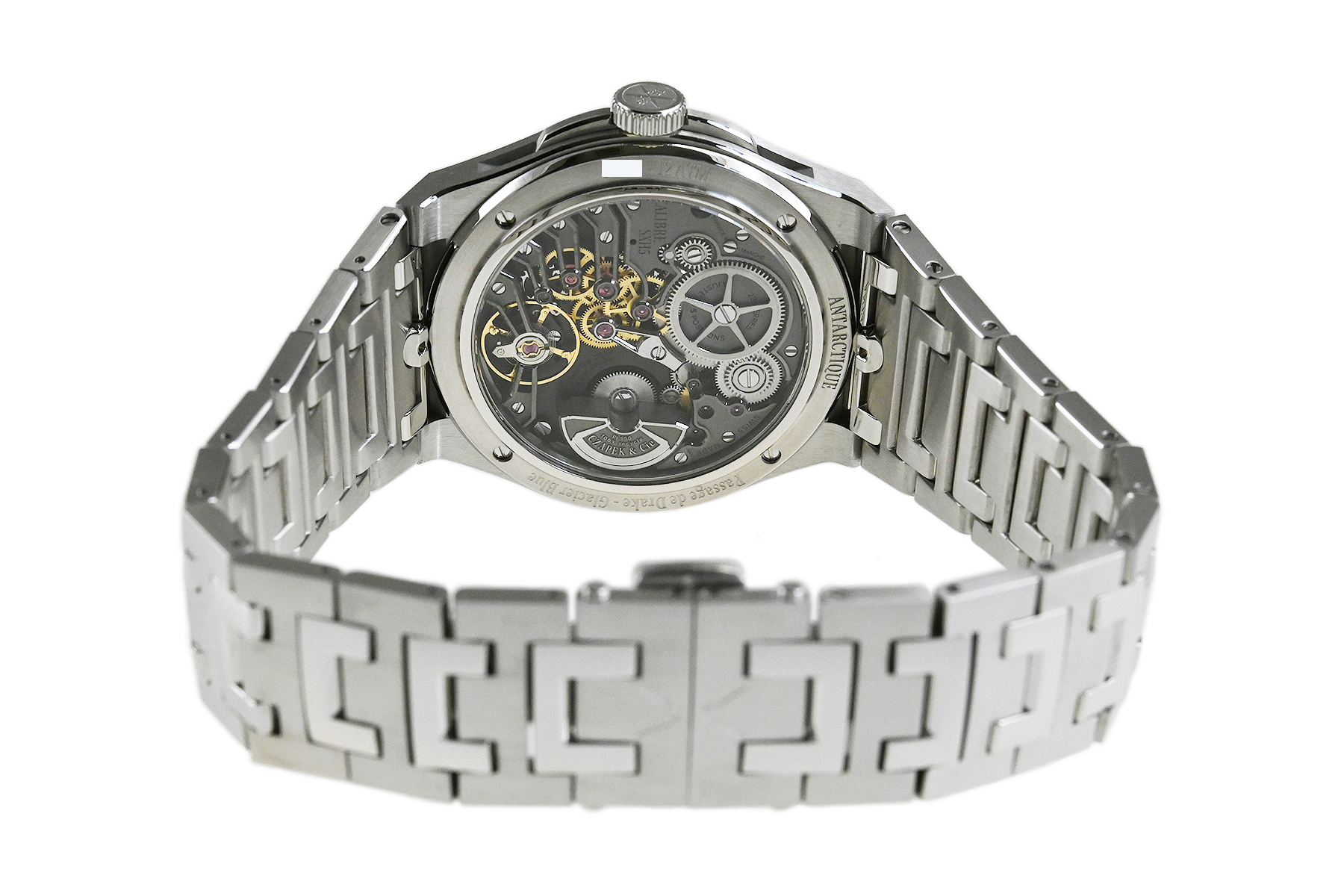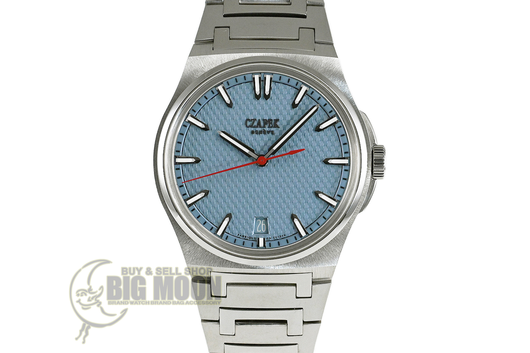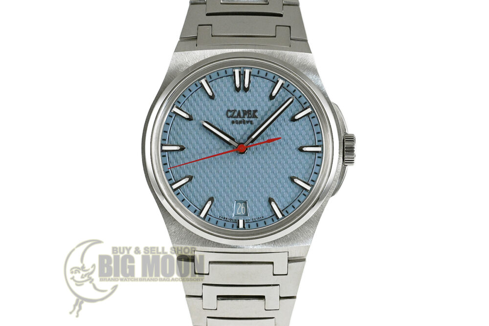 コメント チャペックのスポーツモデル「アンタークティック」コレクション。「Stairway to Eternity–永遠への階段」と名付けられたパターンダイアル、チャペックの「C」の形がデザインされた人間工学に基づいた滑らかなブレスレットが特徴的です。独自の「イージー・リリース」システムを備えており付属のラバーベルトに素早く交換が出来ます。少々の軽い擦りキズはありますが目立つ様なキズはありません。国内正規店にて購入品です。