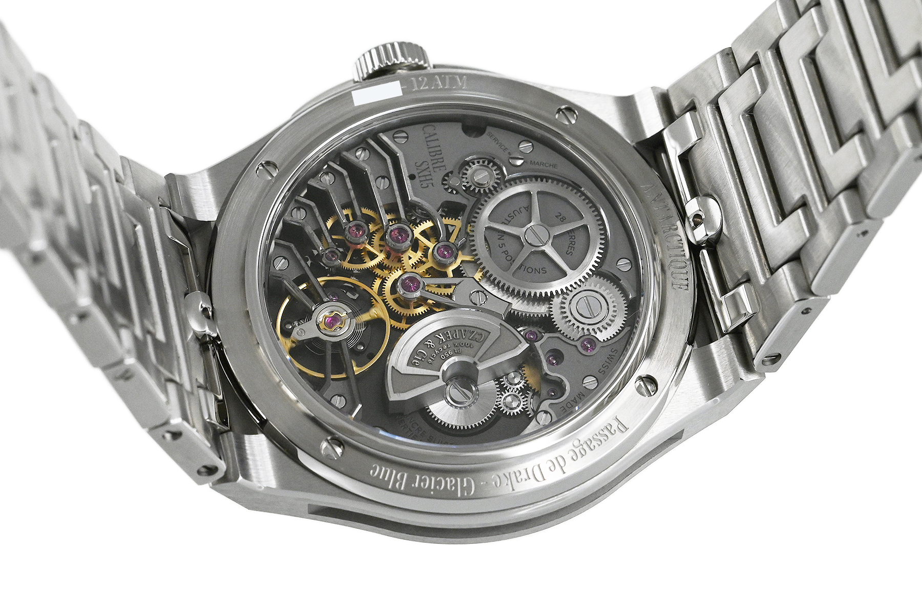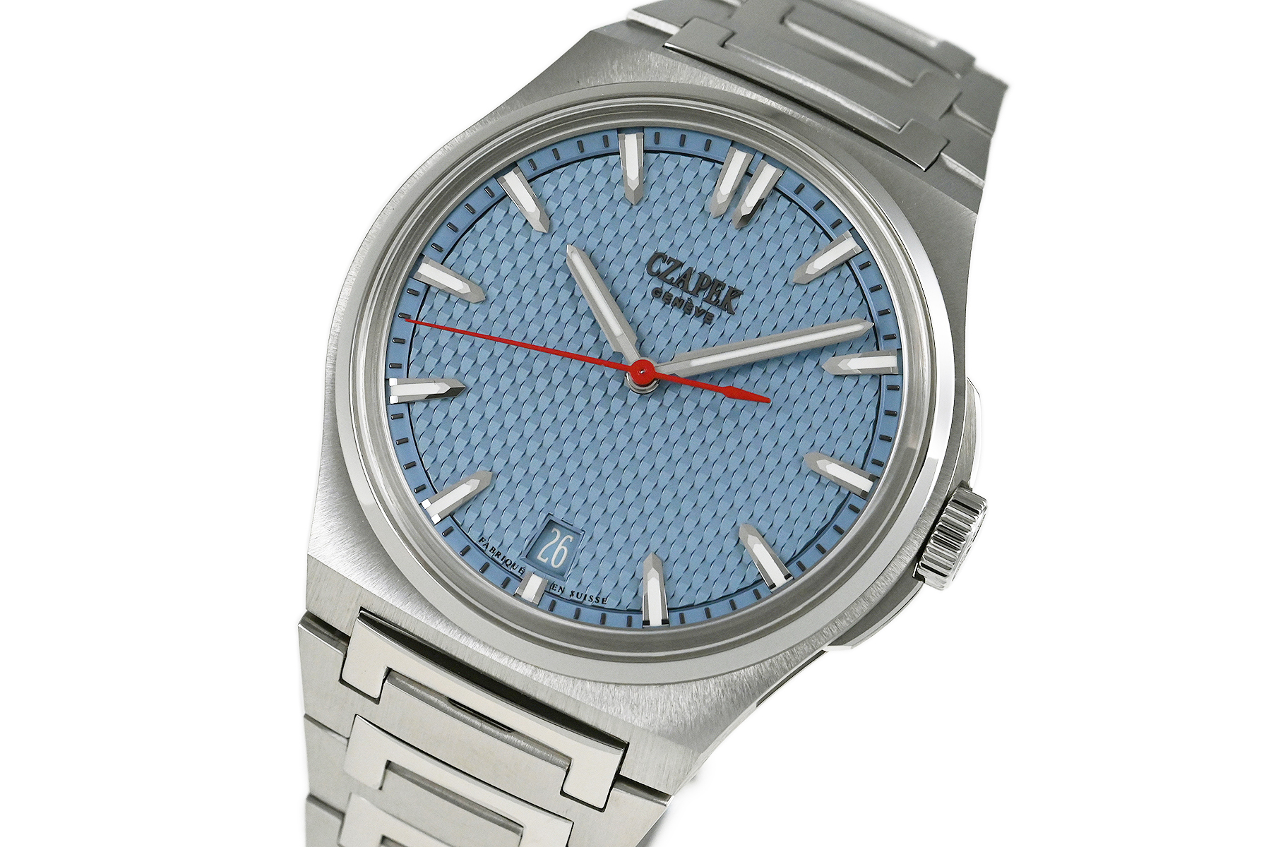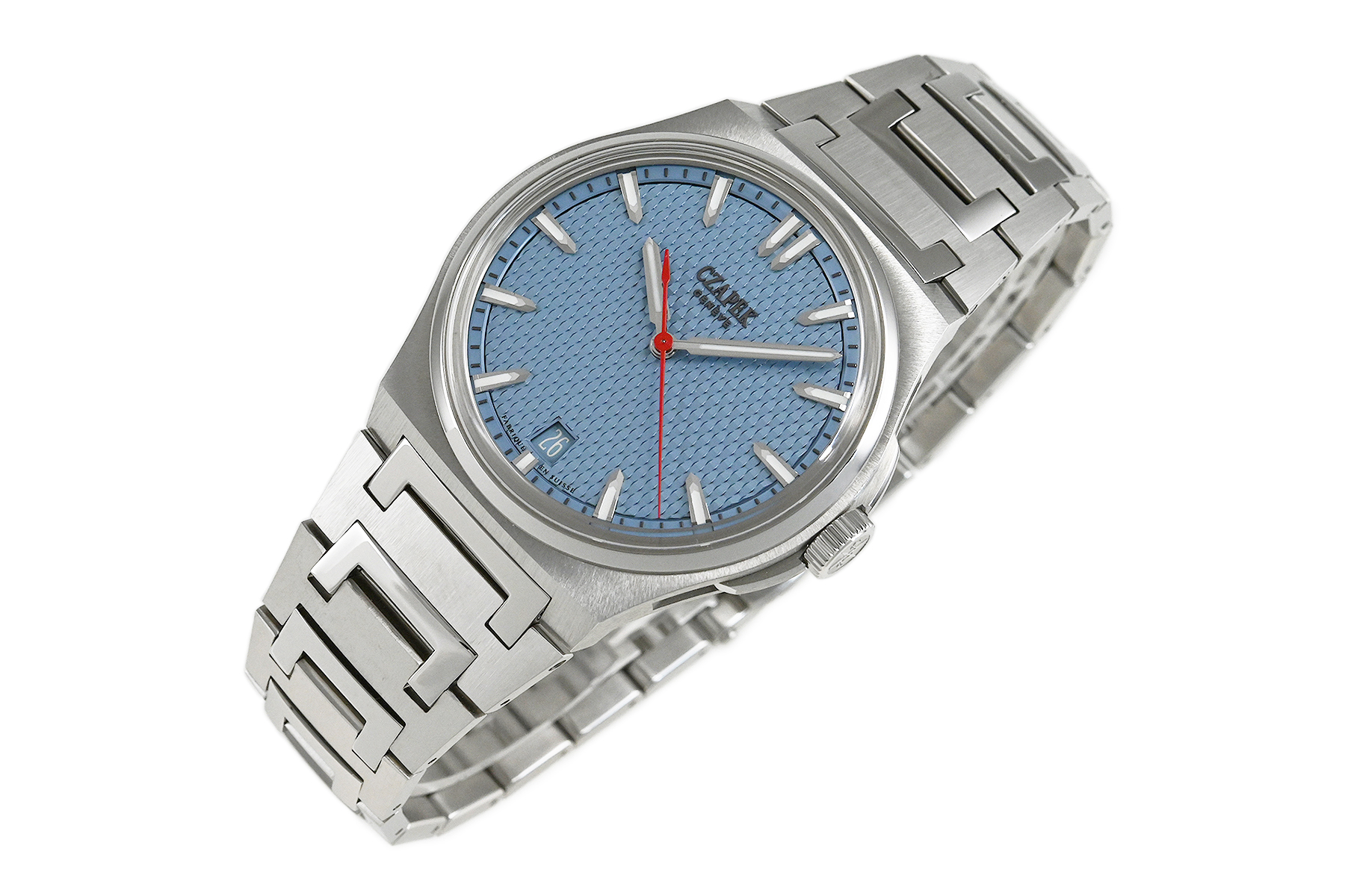 コメント チャペックのスポーツモデル「アンタークティック」コレクション。「Stairway to Eternity–永遠への階段」と名付けられたパターンダイアル、チャペックの「C」の形がデザインされた人間工学に基づいた滑らかなブレスレットが特徴的です。独自の「イージー・リリース」システムを備えており付属のラバーベルトに素早く交換が出来ます。少々の軽い擦りキズはありますが目立つ様なキズはありません。国内正規店にて購入品です。
