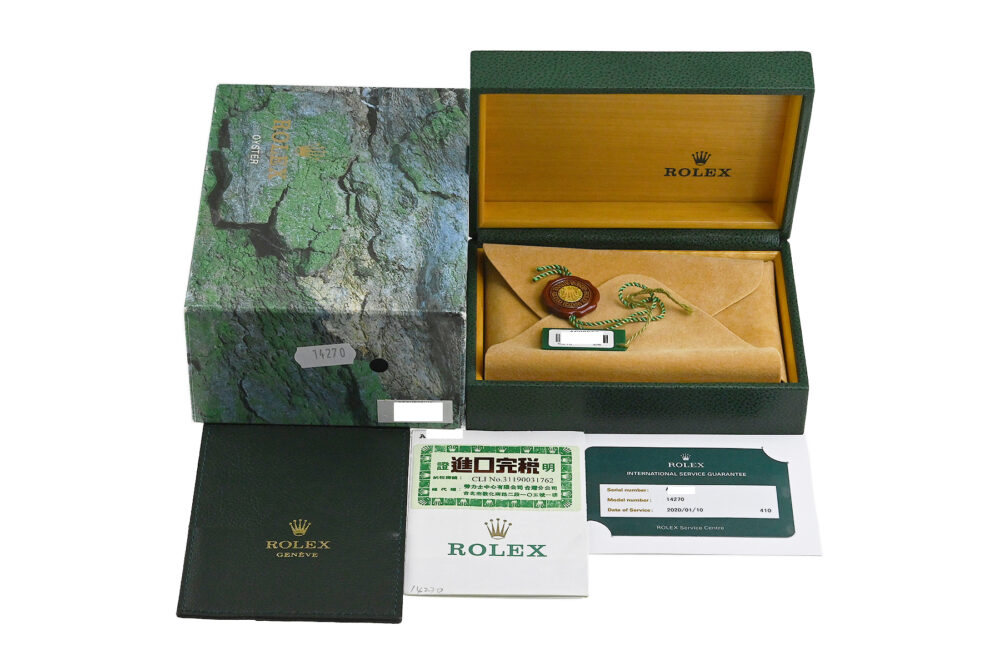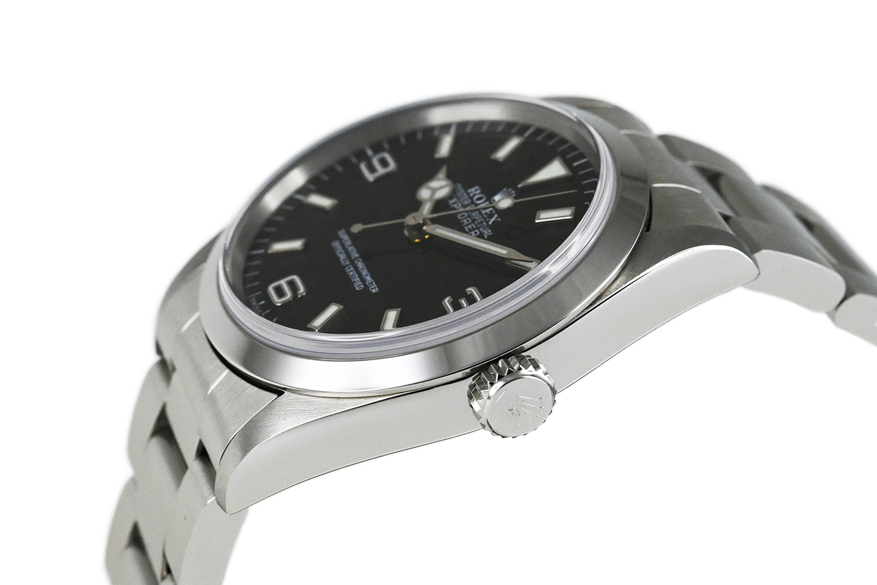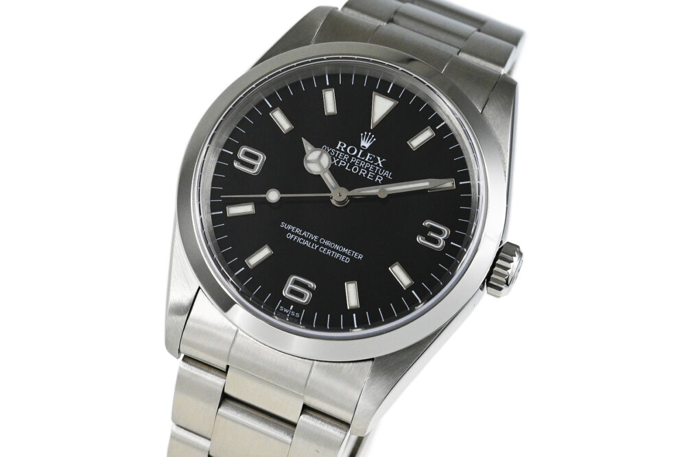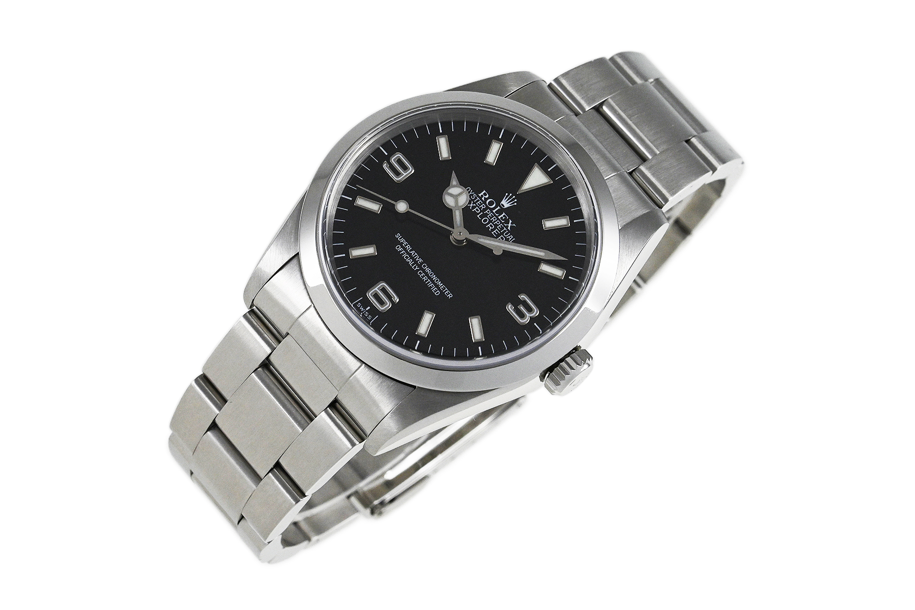 | コメント | 1953年デビューの「エクスプローラーI」、1990年~2000年まで製造された「Ref.14270」です。シンプルでスタイリッシュなデザインはどんなシーンにもマッチする人気モデルです。裏蓋など僅かな軽い小キズ、擦りキズはありますが目立つ様な深いキズはありません。長針に僅かな擦りキズがあります。2020年1月に正規修理サービスにてオーバーホールをしています。 |